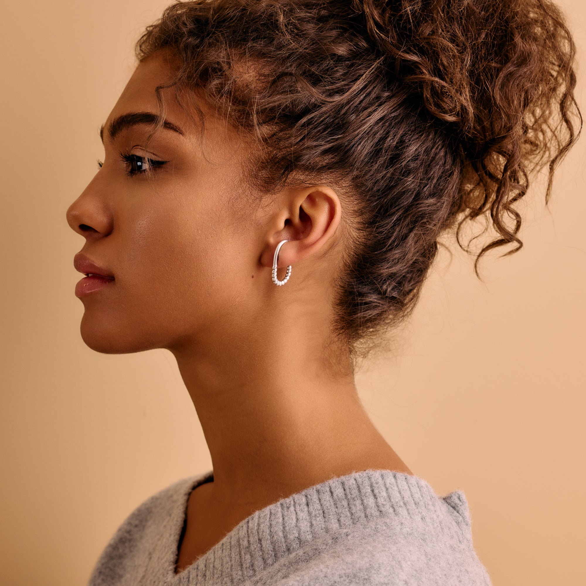Embrace the elegance of one of this season's most sought-after earring styles with our Silver Ear Lobe Hugger Stud Earring. This piece not only aligns with current trends but also serves as a timeless addition to your jewelry collection, providing lasting charm for years to come. Versatile and sophisticated, these earrings transition effortlessly from day to night, enhancing a variety of outfits and adding a touch of refinement.