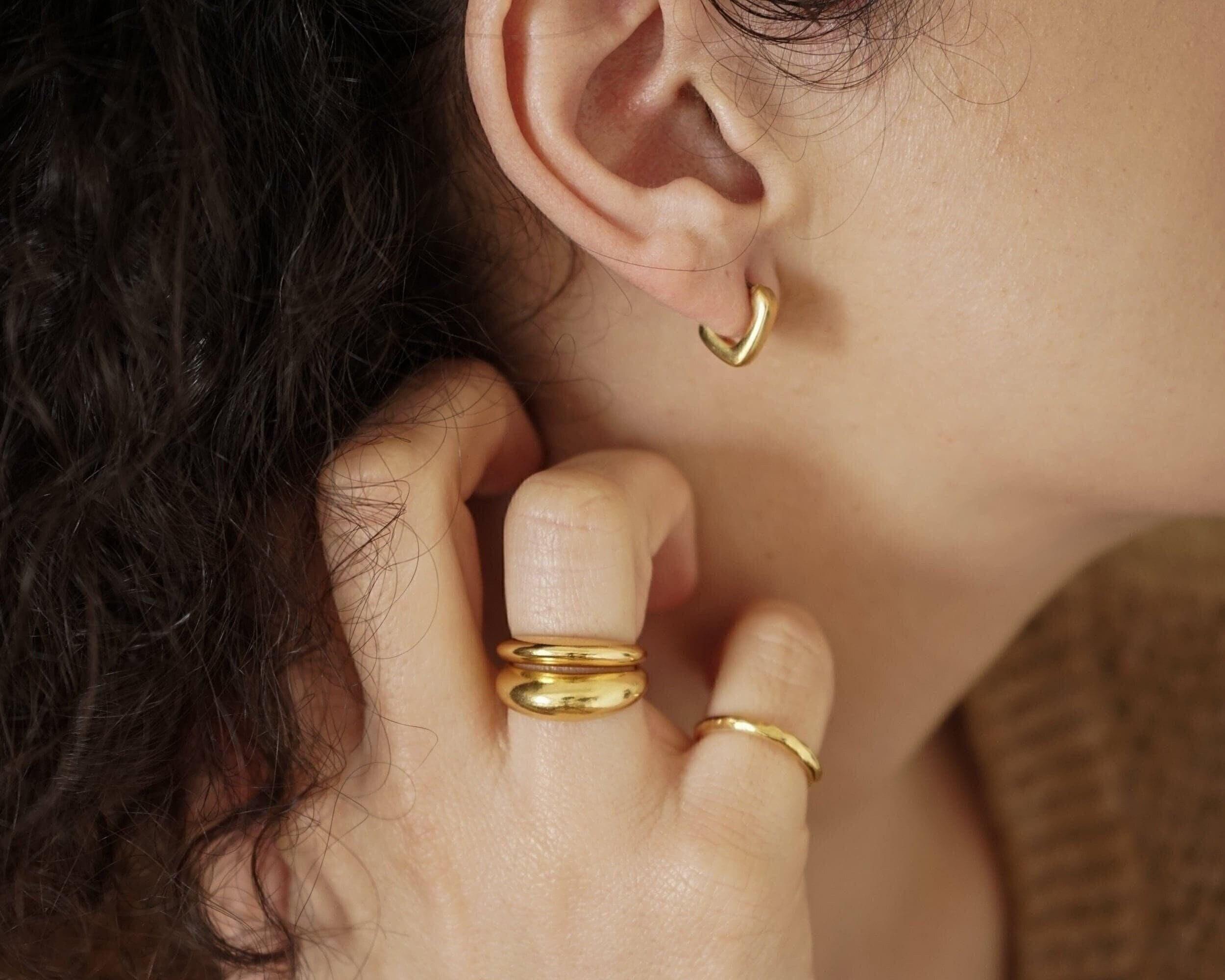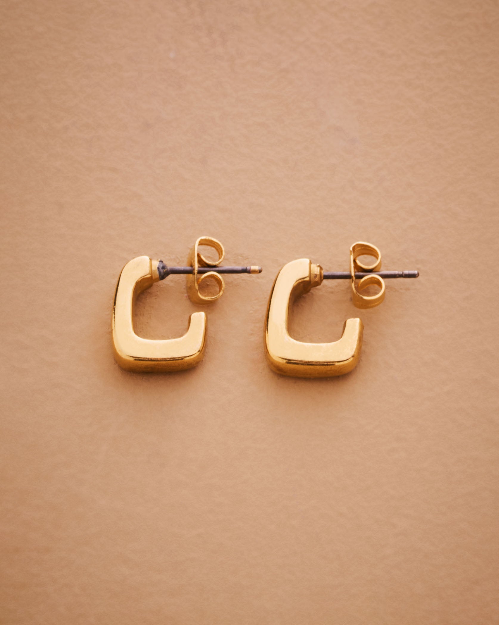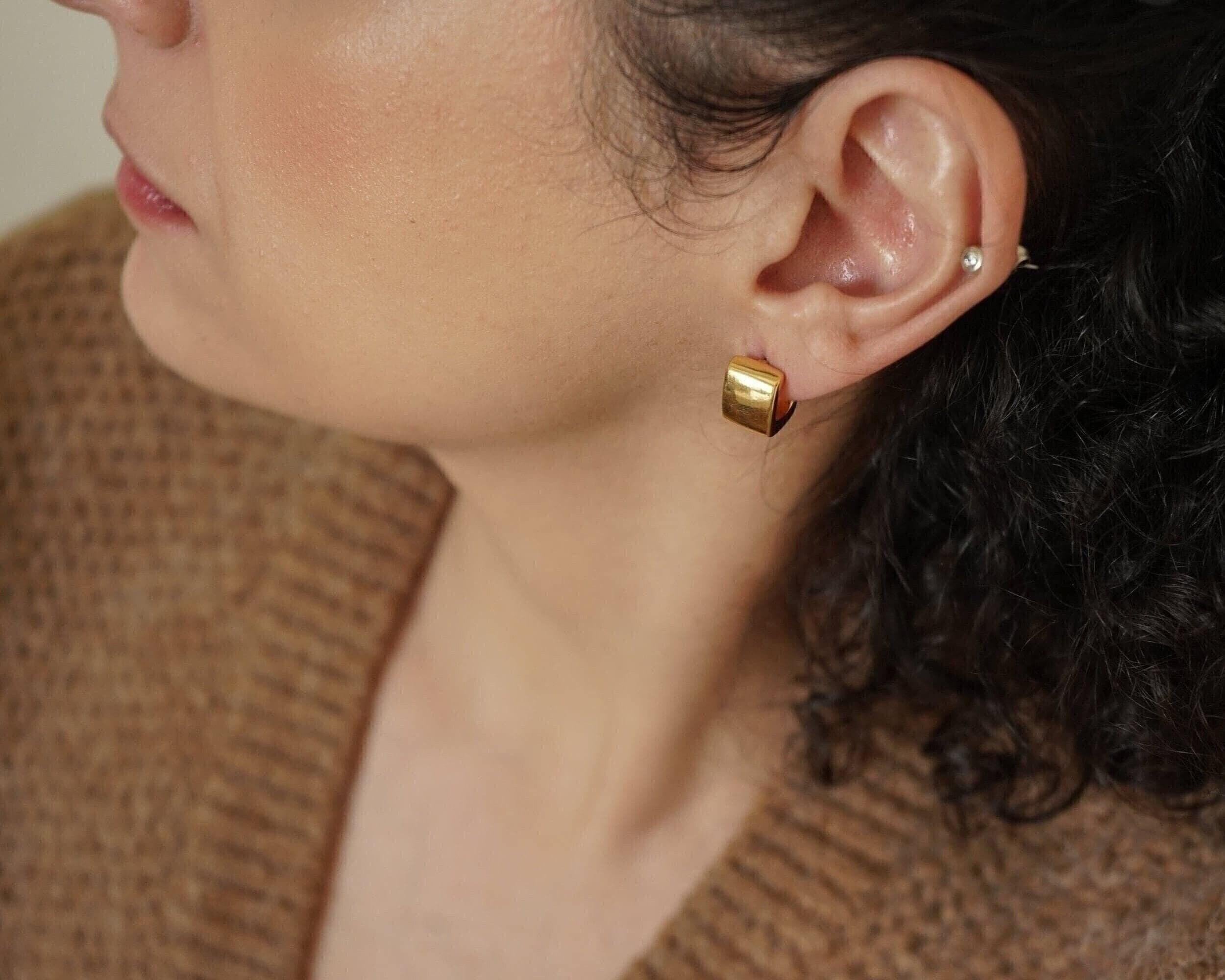 These are lovely timeless gold plated hoops earrings that you can wear alone for a classy look or stack them if you have multiple piercings and love a more contemporary style.This elegant pair can be worn from day to night with a lot of different styles of outfits, elevating every single one.They are easy, very light and effortless to wear, they will not drag the earlobe down, unique yet versatile.