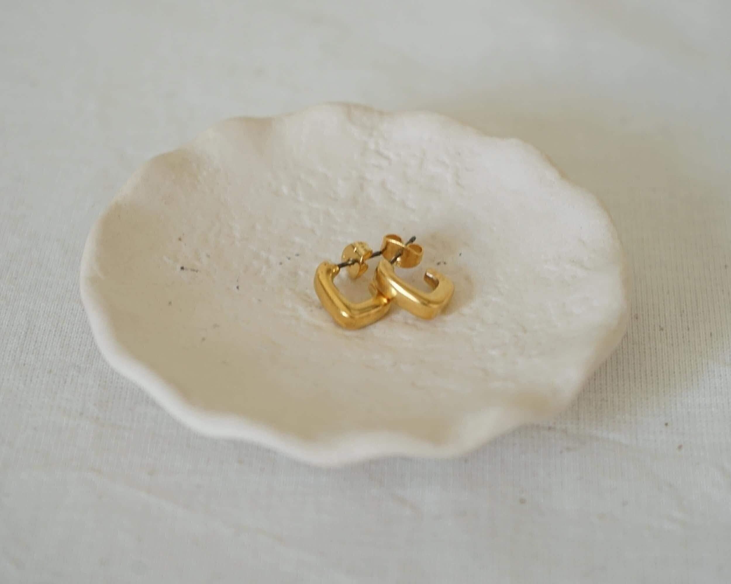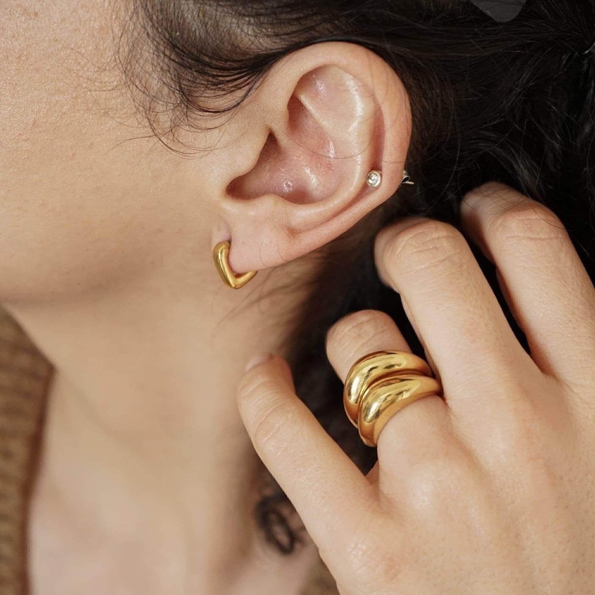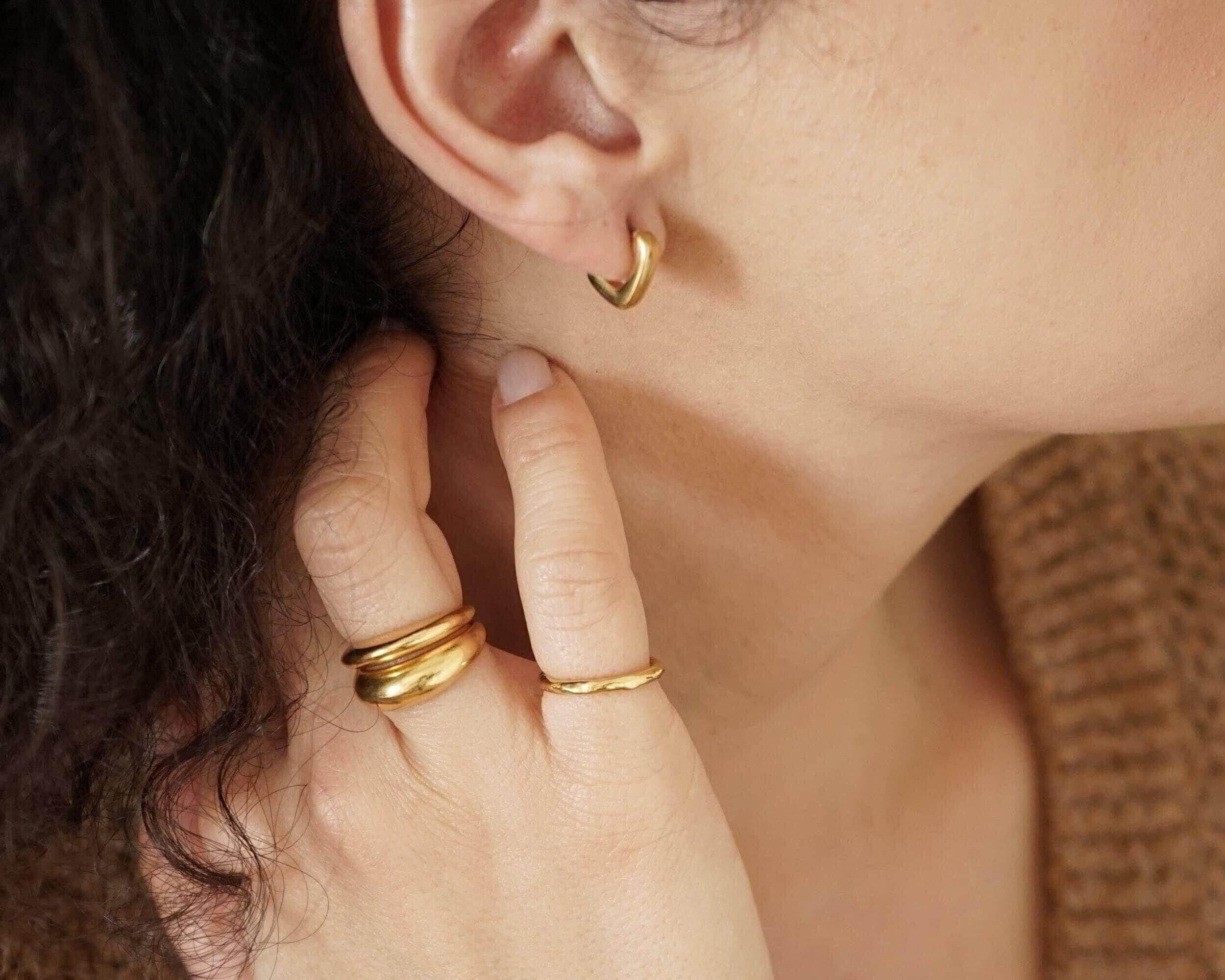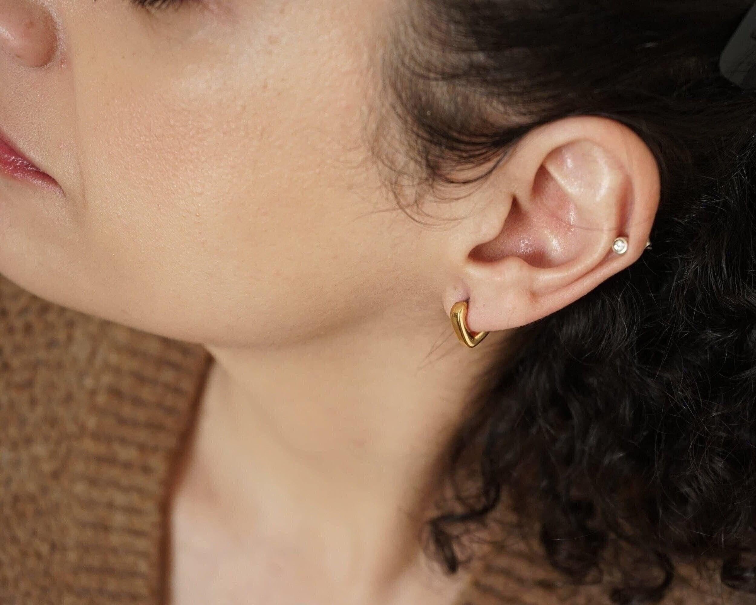 These are lovely timeless gold plated hoops earrings that you can wear alone for a classy look or stack them if you have multiple piercings and love a more contemporary style.This elegant pair can be worn from day to night with a lot of different styles of outfits, elevating every single one.They are easy, very light and effortless to wear, they will not drag the earlobe down, unique yet versatile.