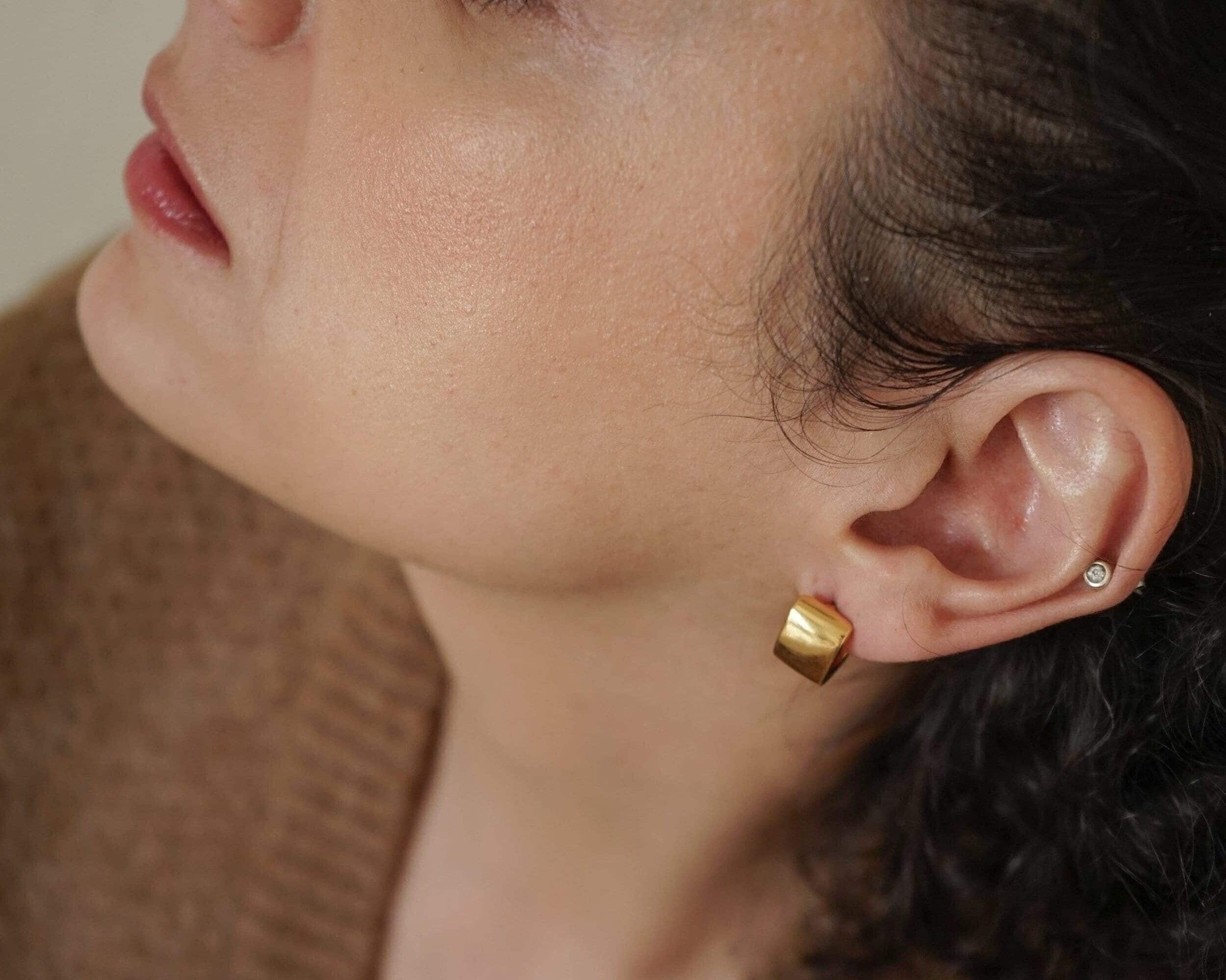 The thick square earring hoop is 0.4x0.5 in. (10.2x12.7mm).The thin square earring hoop is 0.14x0.48 in. (3.6x12.2mm).