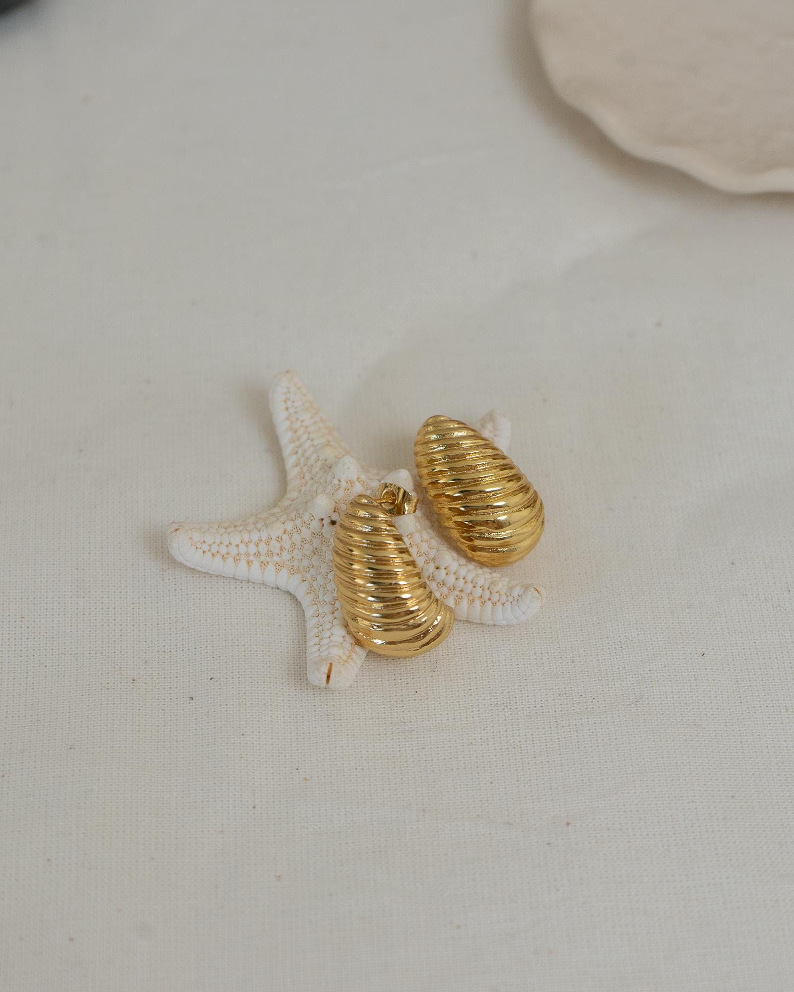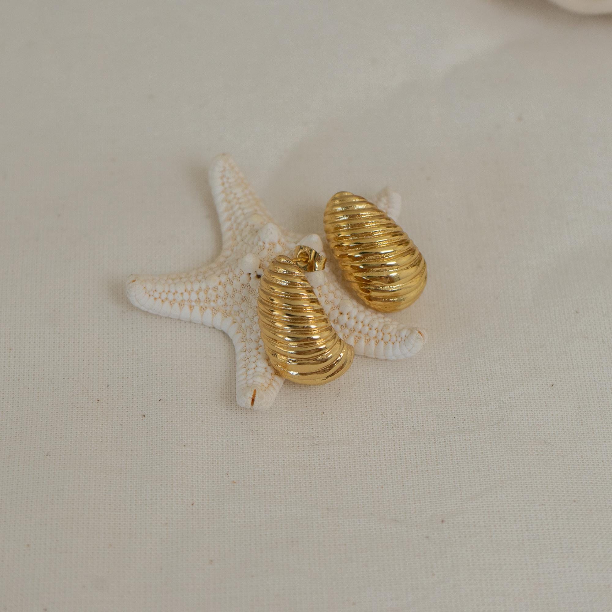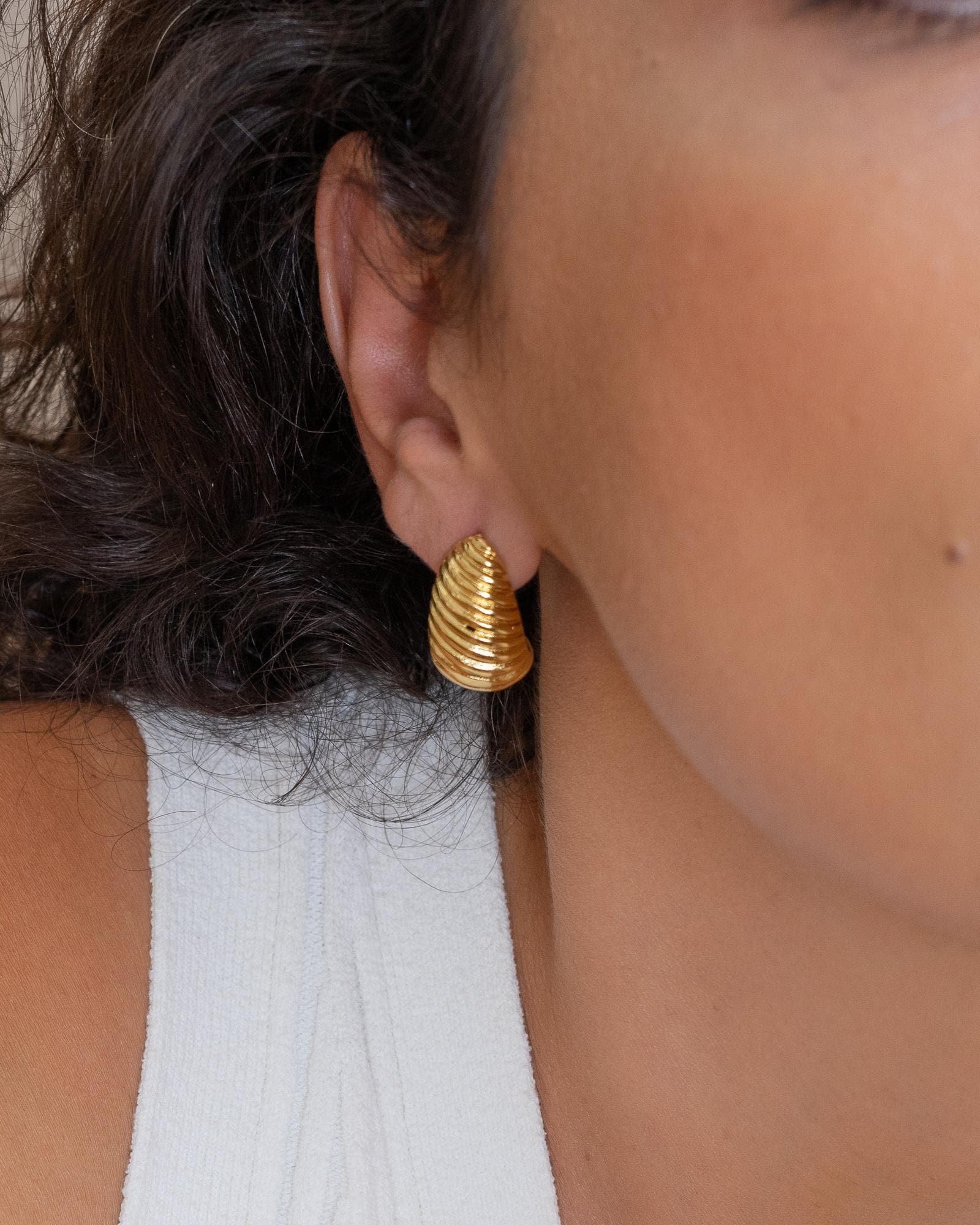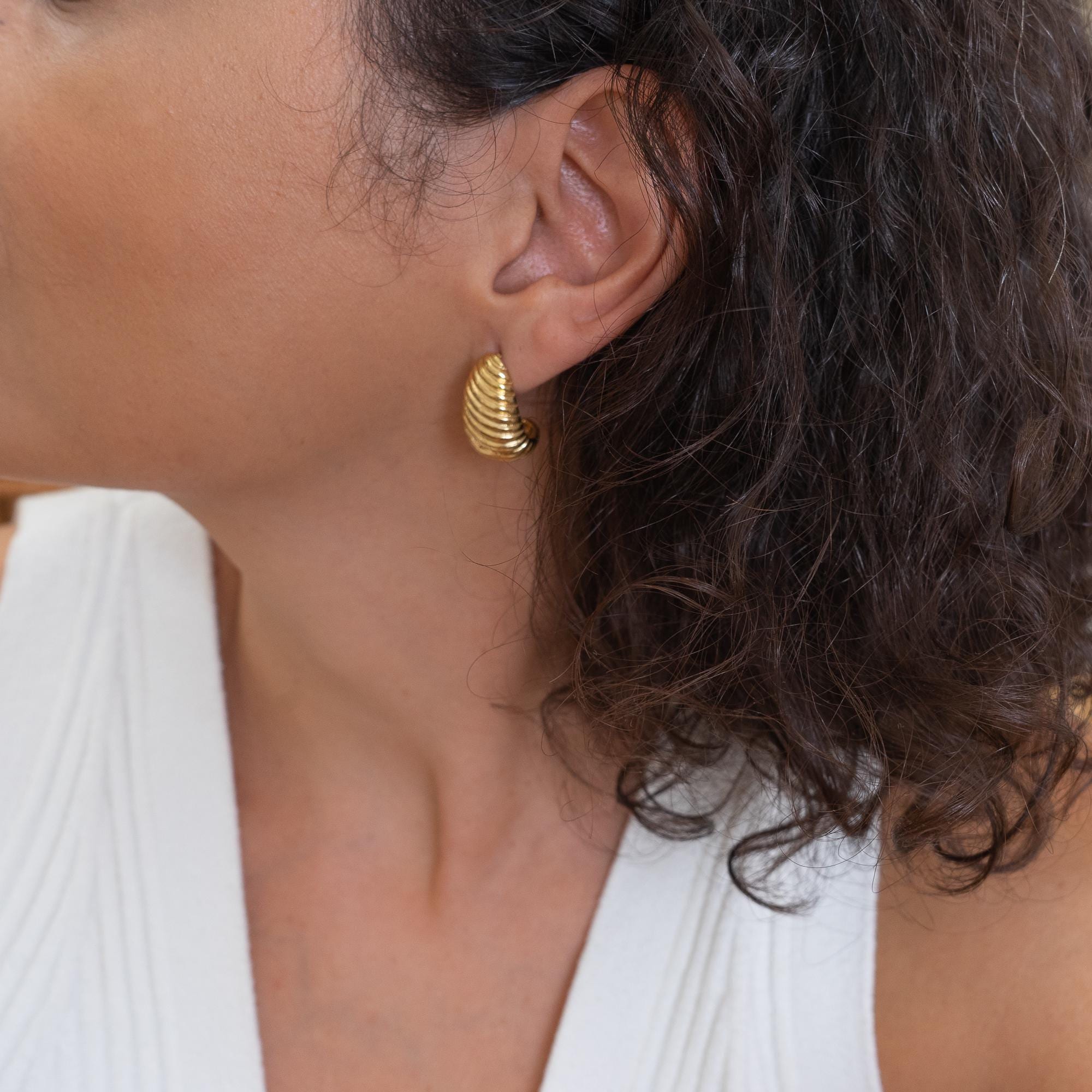Elevate your accessory game with these striking striped gold dome earrings, a must-have for this season. Designed with a bold twist, these earring hoops bring a touch of luxury to your everyday style. Their unique striped pattern adds an eye-catching detail that makes them a standout piece in any jewelry collection.