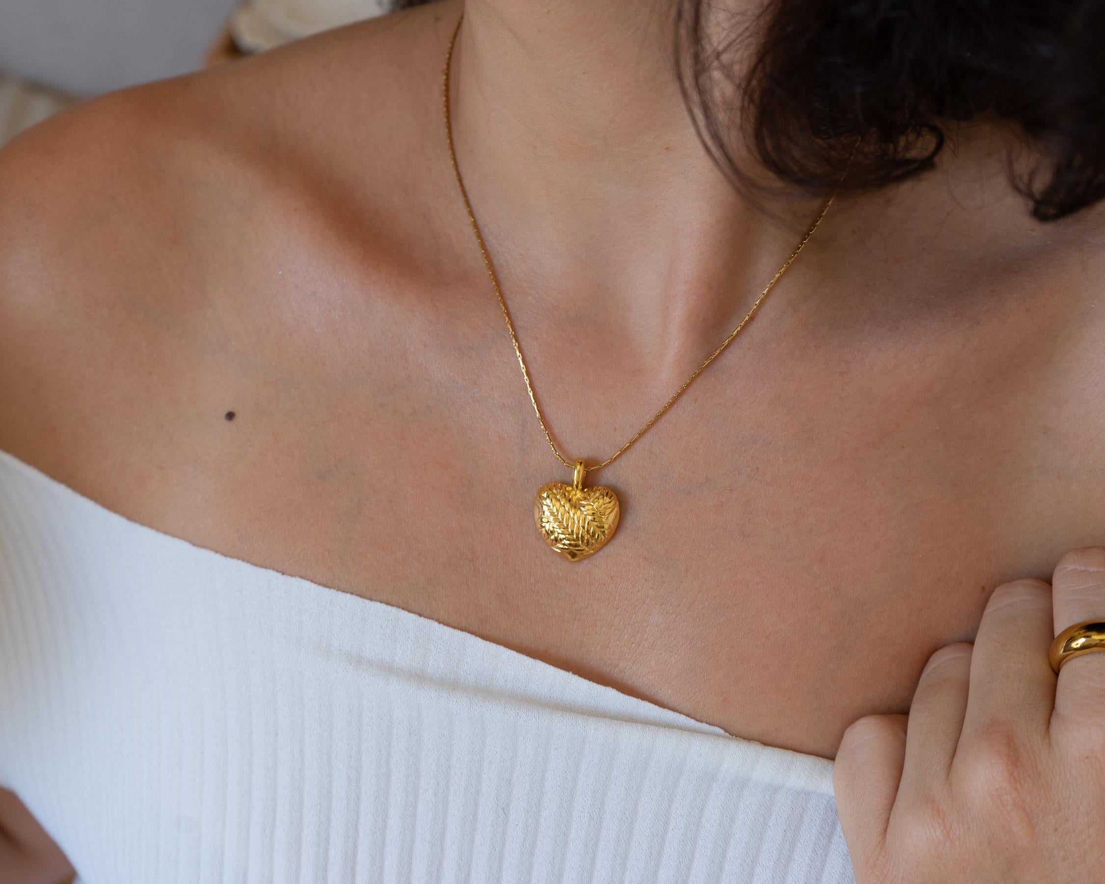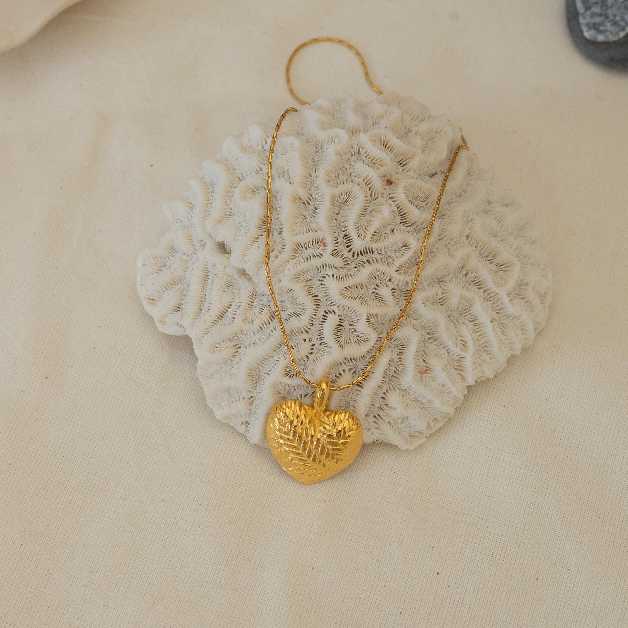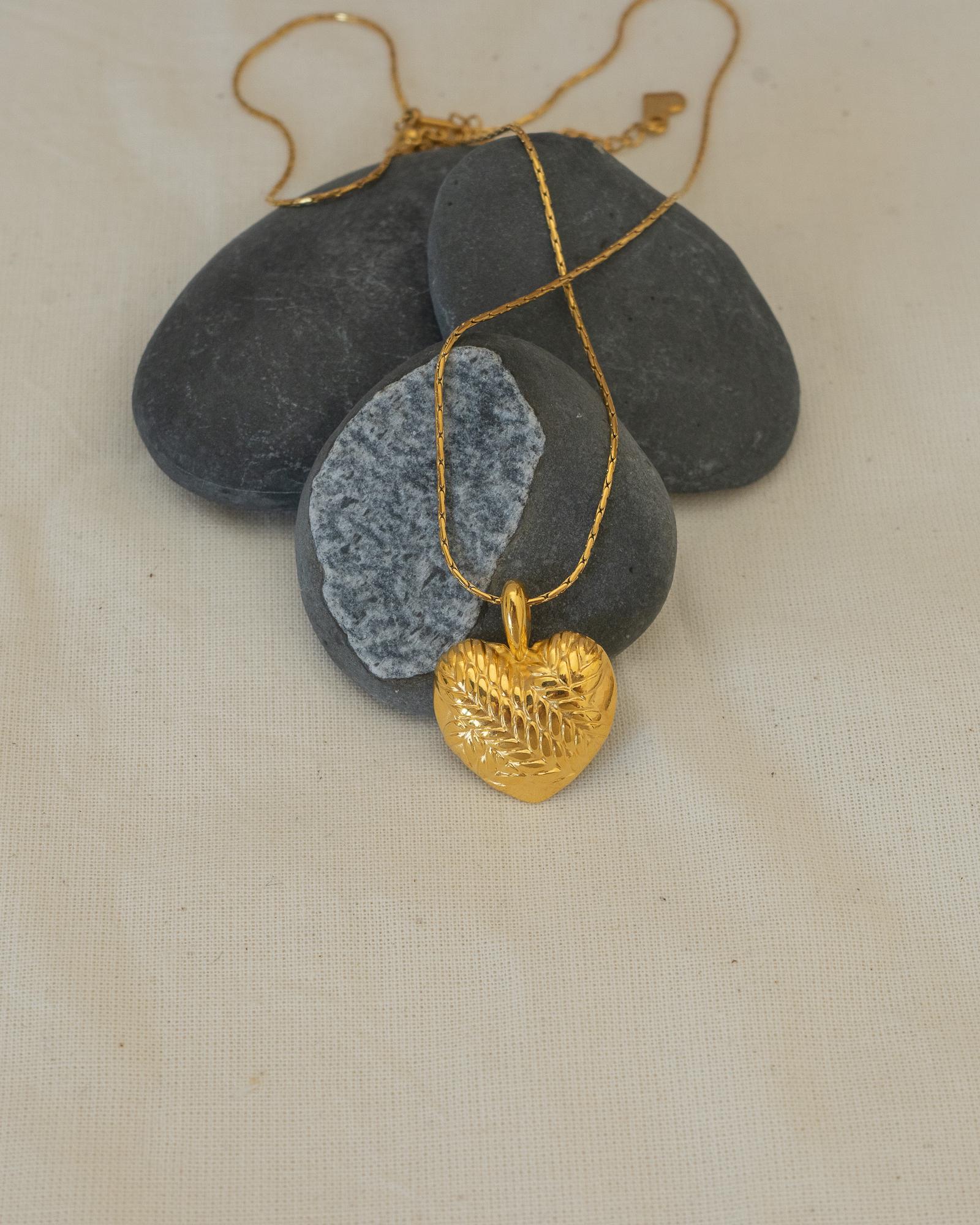 Introducing a stunning gold heart necklace featuring a beautifully crafted round pendant on a durable stainless steel chain. This enchanting piece adds a touch of elegance to any feminine look, making it a versatile accessory for everyday wear or special occasions.