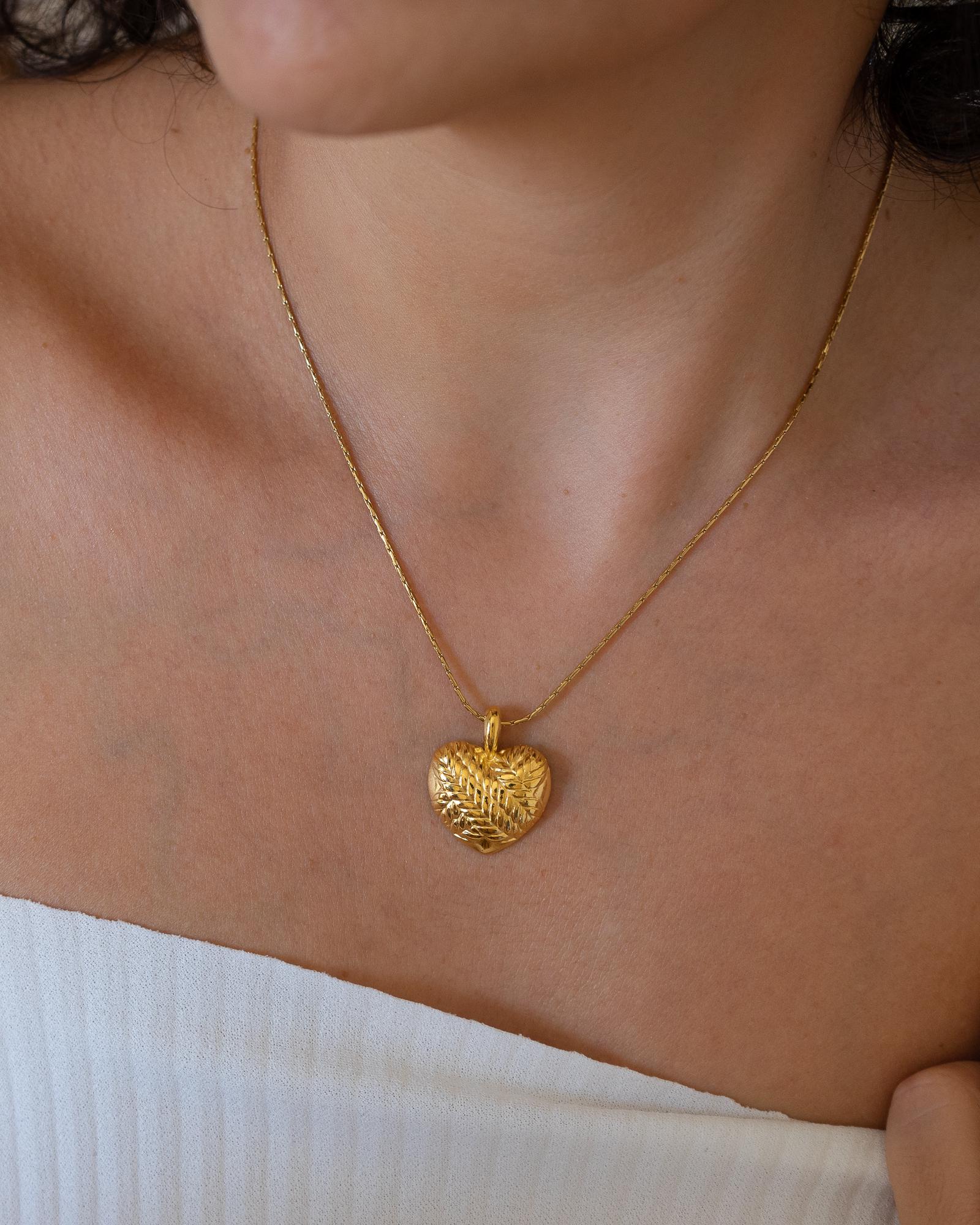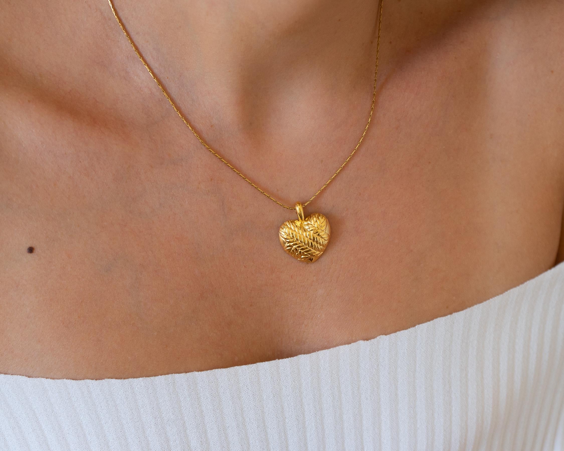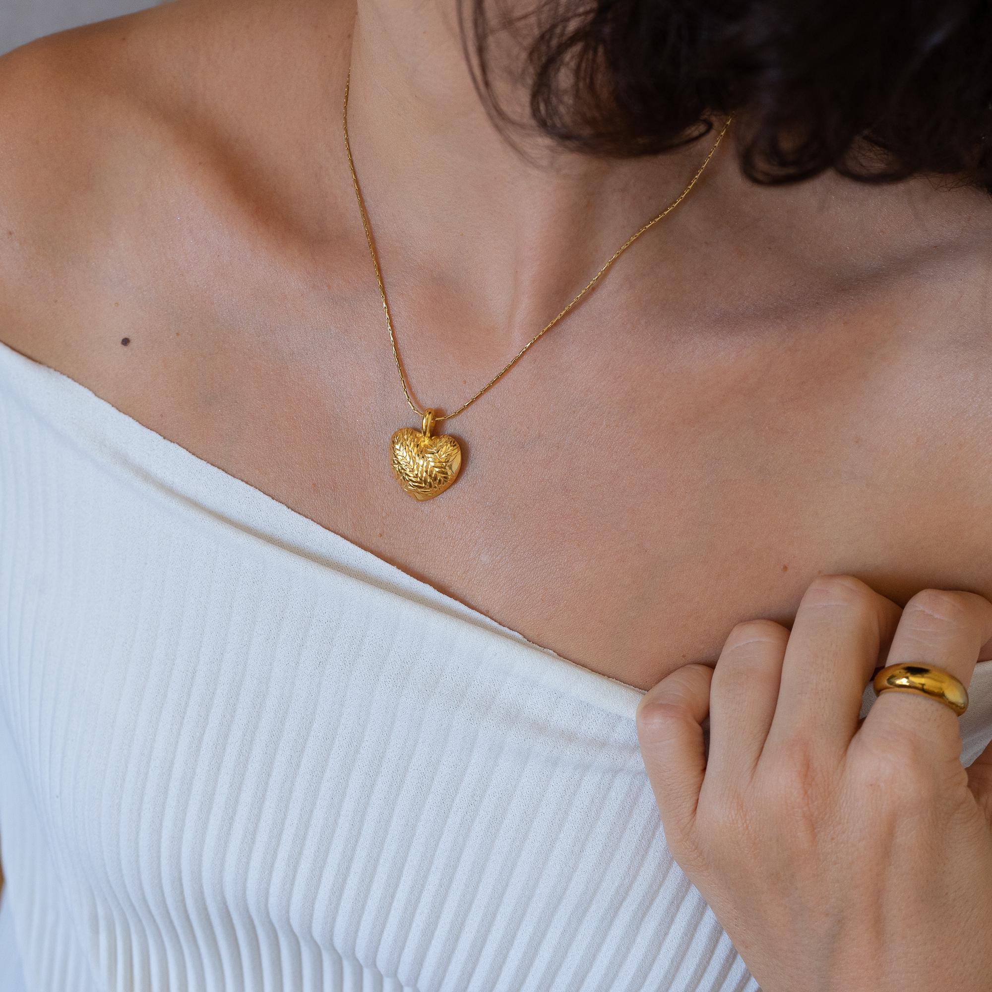 Introducing a stunning gold heart necklace featuring a beautifully crafted round pendant on a durable stainless steel chain. This enchanting piece adds a touch of elegance to any feminine look, making it a versatile accessory for everyday wear or special occasions.