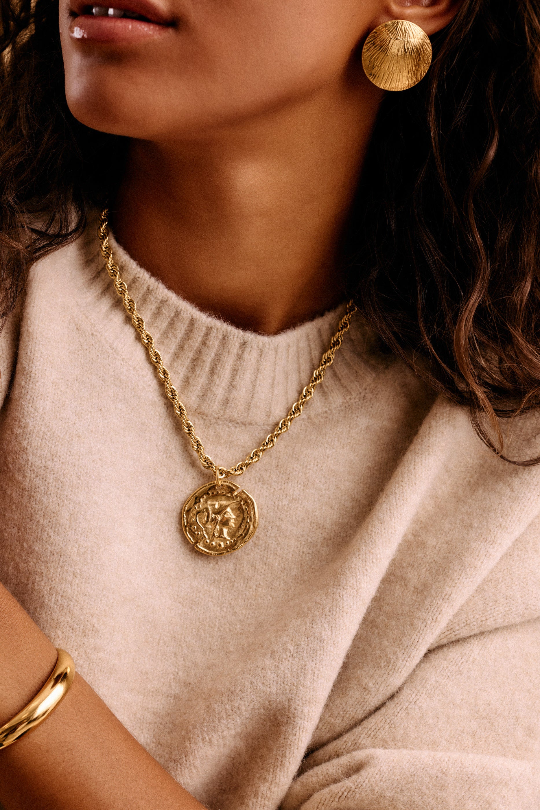 Gold Athena Goddess Necklace with Stainless Steel Rope Chain