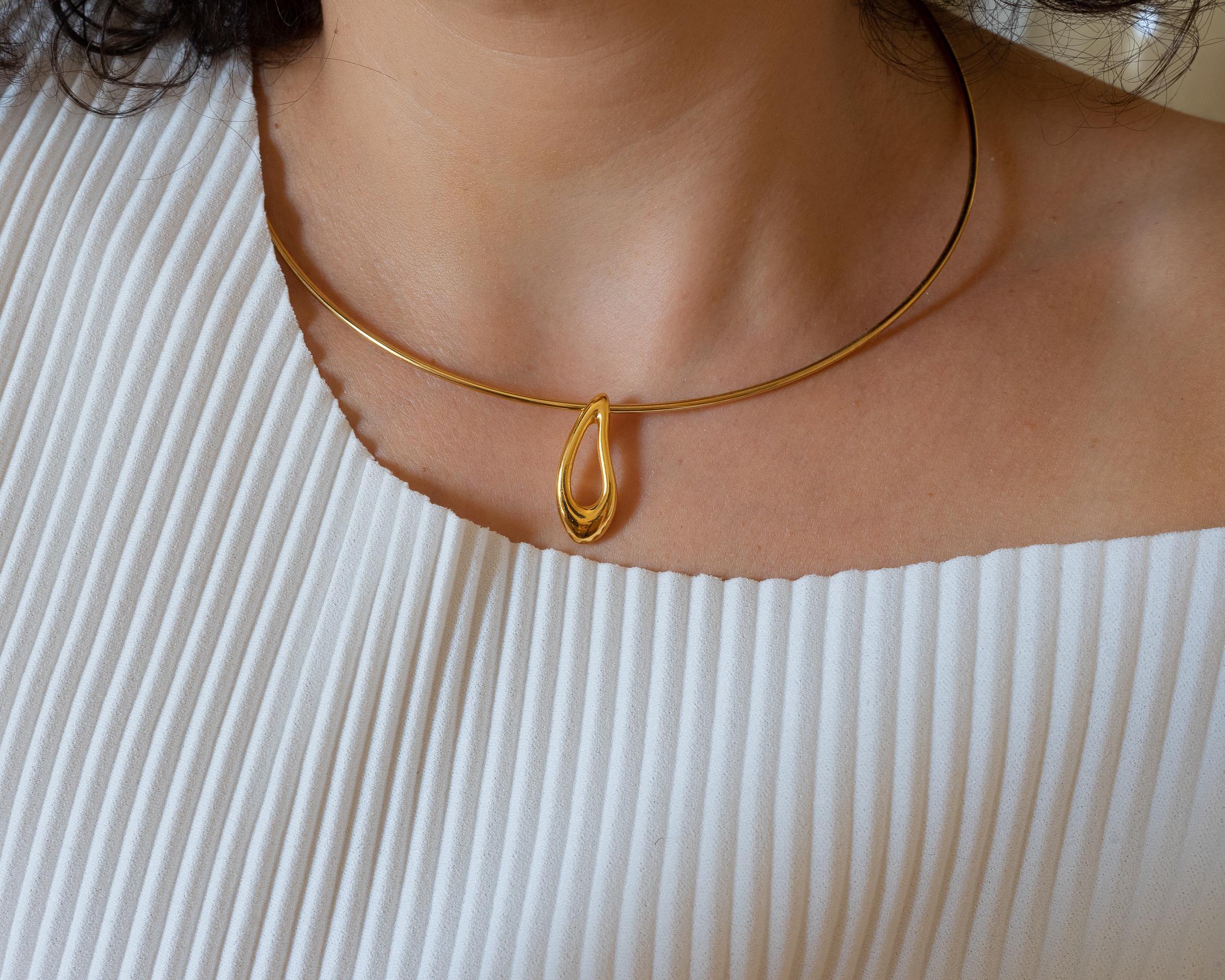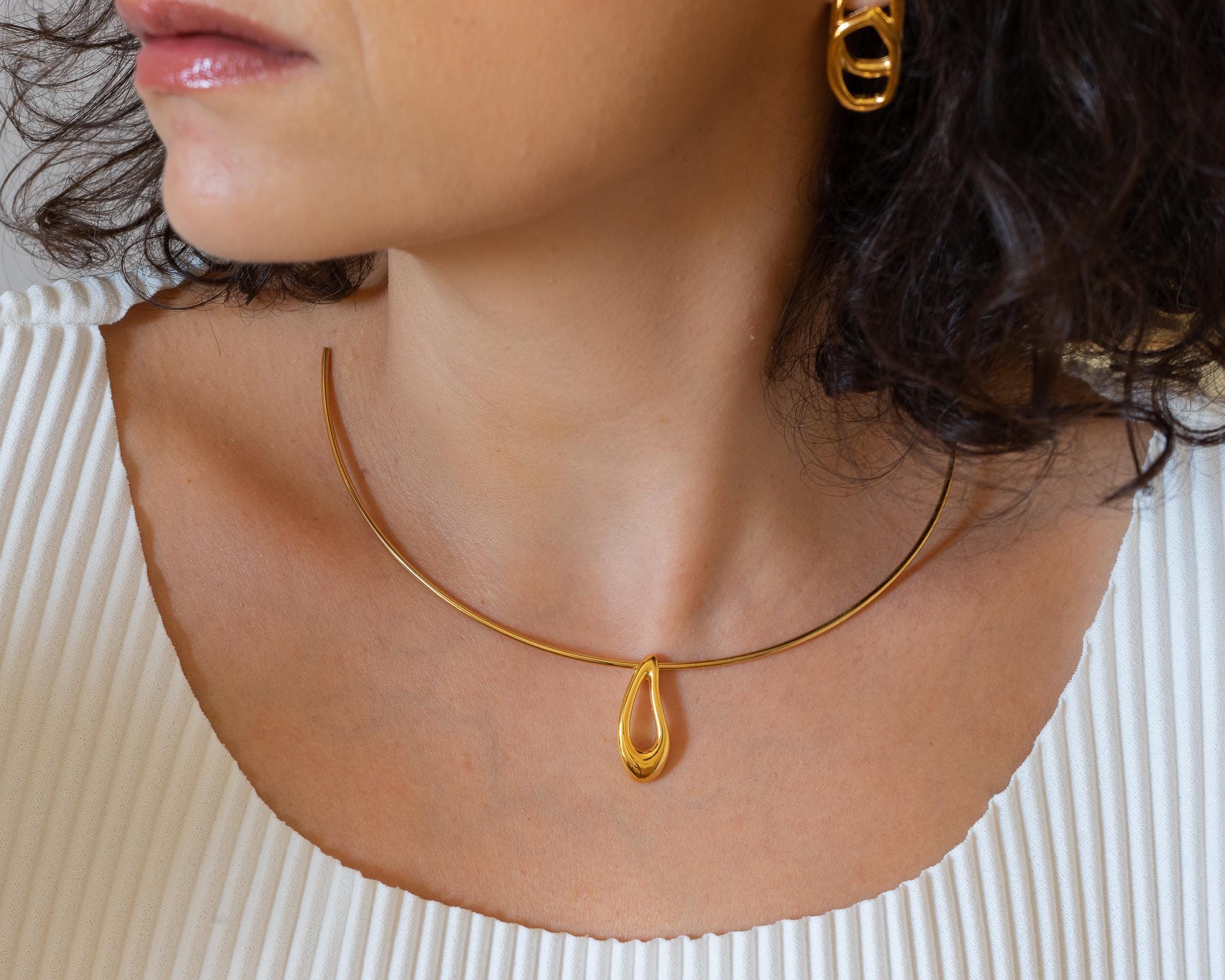 Embrace the essence of individuality with our stunning Gold Collar Necklace, where elegance meets artistry. This one-of-a-kind statement piece features a luxurious stainless steel collar, beautifully complemented by an extraordinary organic-shaped pendant that tells a story of its own. Each time you wear this necklace, you not only adorn yourself with a strikingly rare ethnic style, but you also celebrate the spirit of uniqueness that resides within you. Let this necklace be a beacon of inspiration, reminding you to express your authentic self and shine brightly in every moment. Ideal for those who seek to elevate their style and make a lasting impression, this necklace is more than an accessory; it’s a testament to your journey.