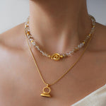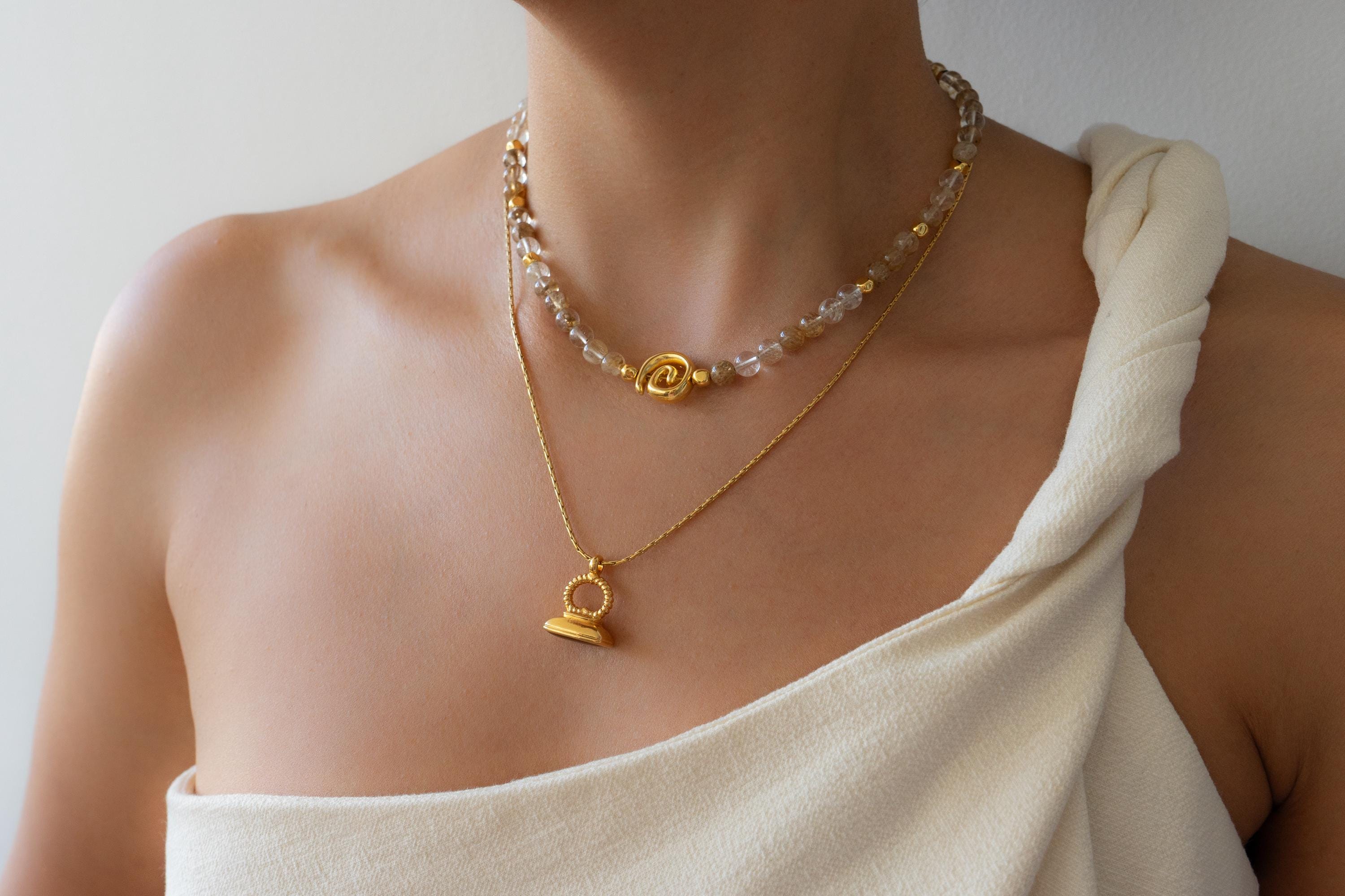 Finished with a stainless steel adjustable chain, this necklace is easy to style alone or layered with minimal chains. Its neutral palette and organic form make it a timeless addition to an everyday jewelry collection focused on balance, versatility, and quiet detail.