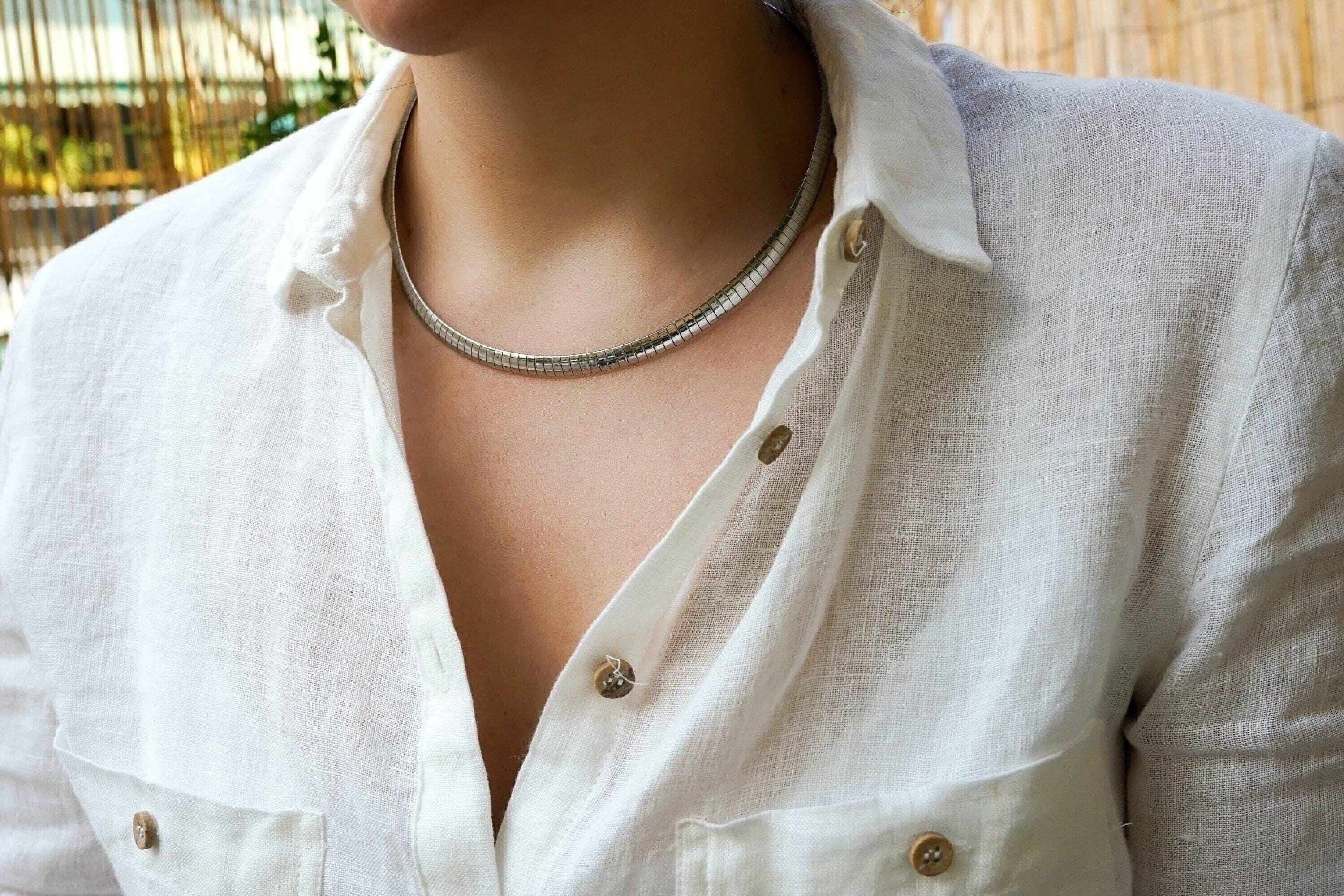Discover the essential addition to your jewelry collection with this elegant flat snake chain choker. A classic and refined piece, this delicate chain can be worn solo for a minimalist look or layered with your favorite necklaces for an on-trend aesthetic. Crafted from high-quality stainless steel, this jewelry is not only strong and durable but also rust-resistant, making it an affordable choice for everyday wear.