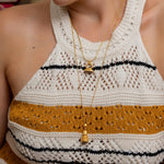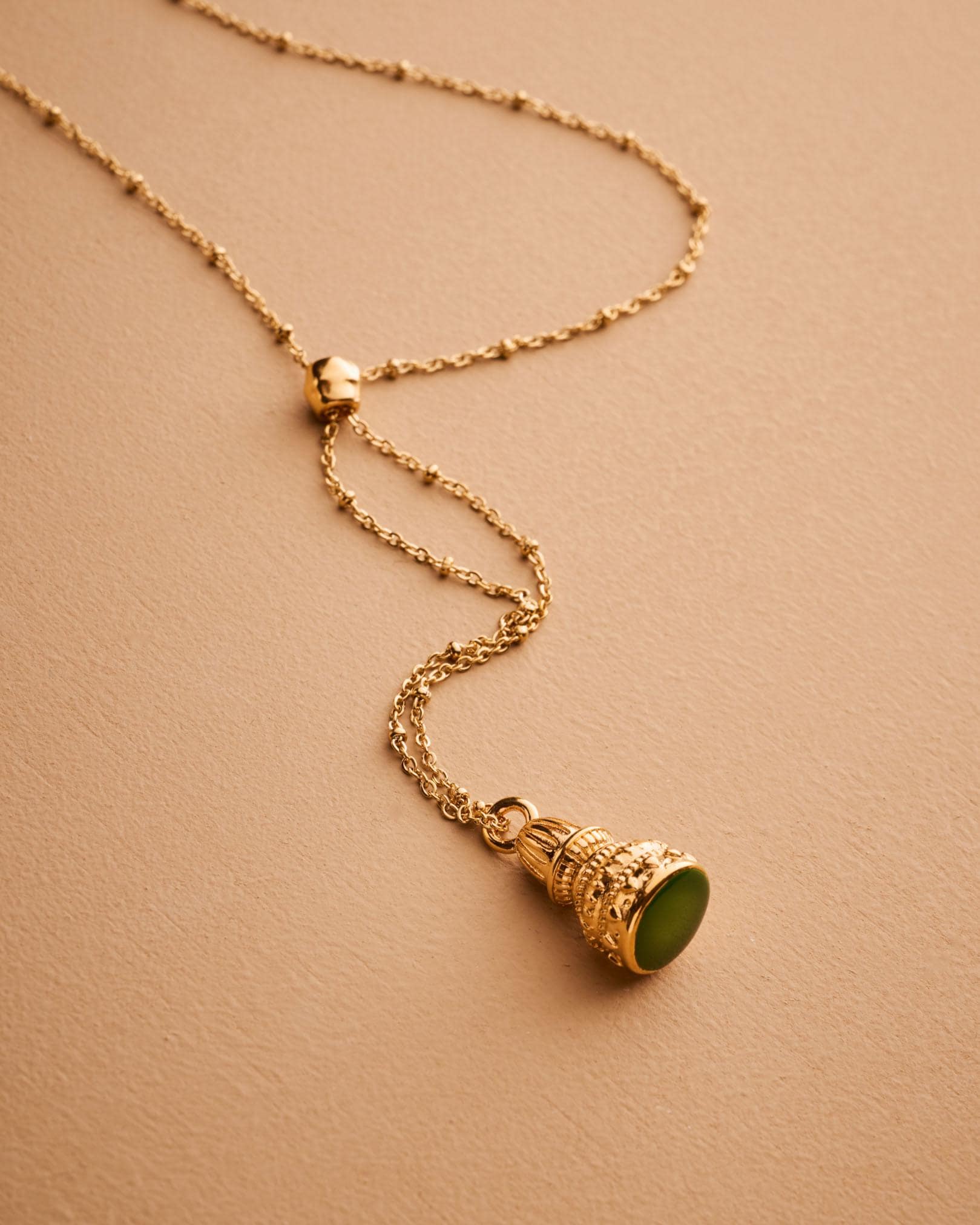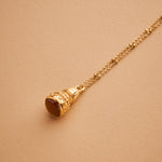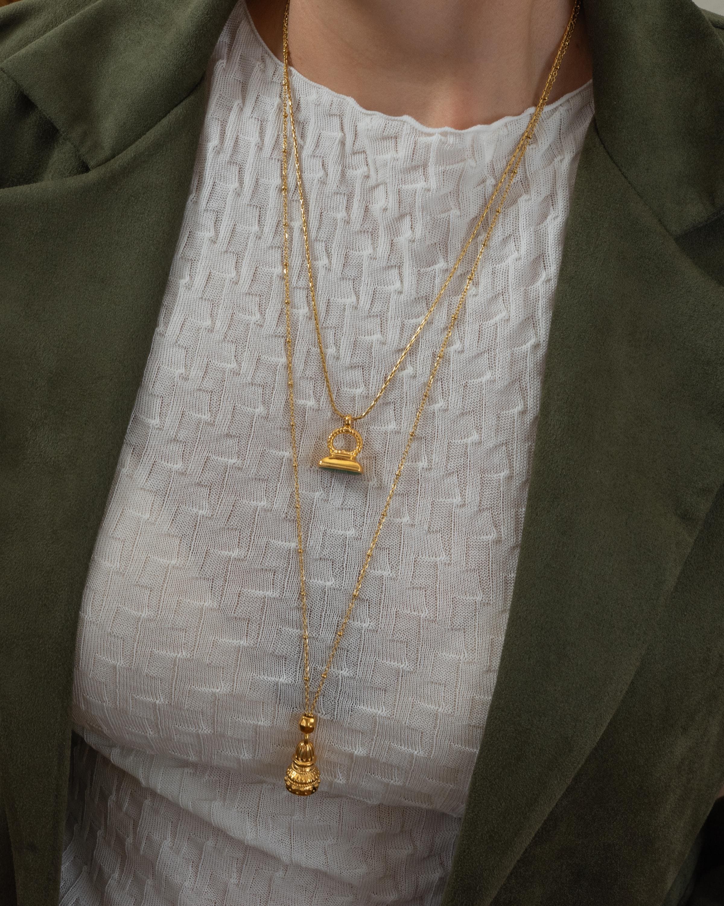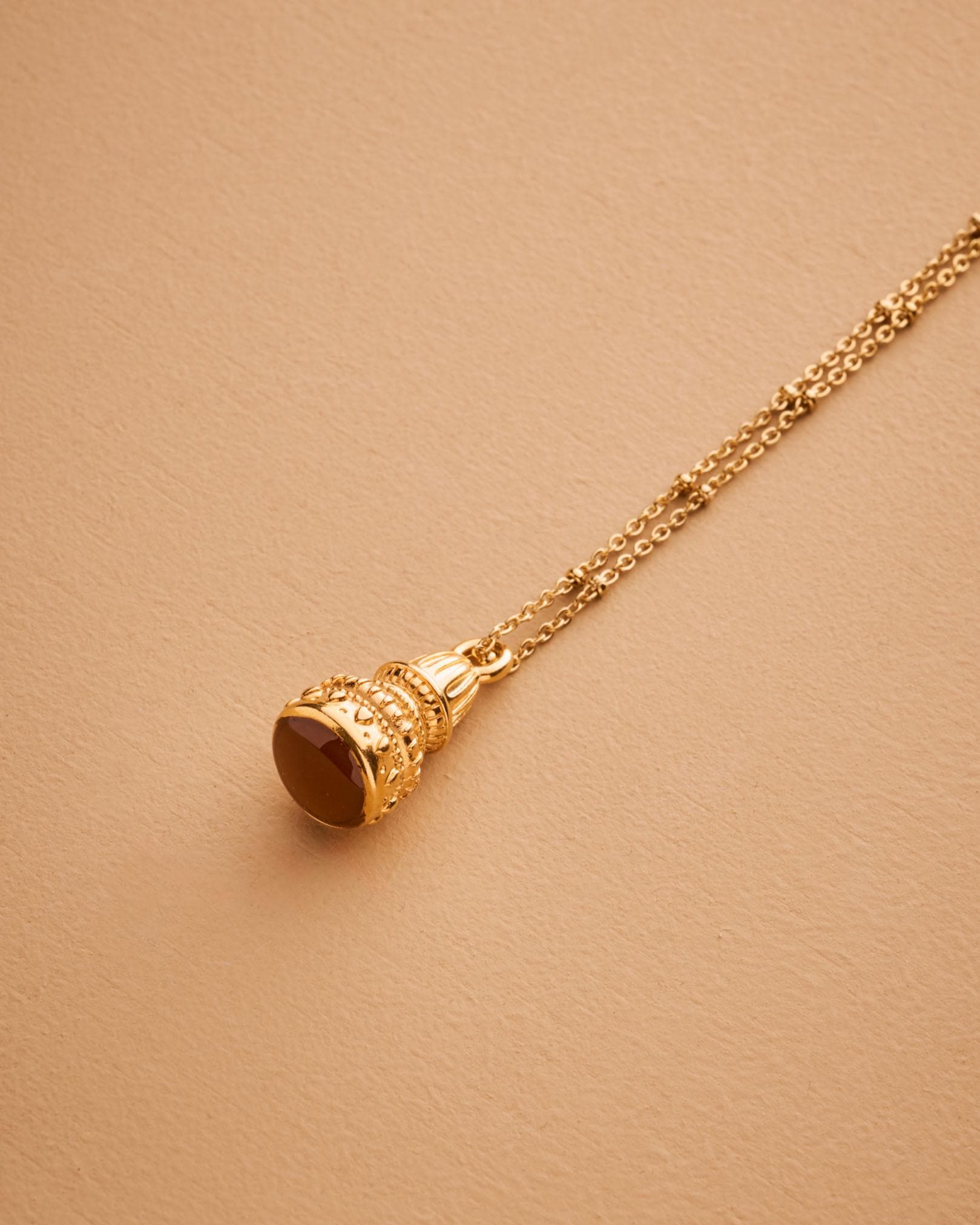 Add a touch of boho-chic to your jewelry collection with this gold-plated enamel pendulum necklace. Inspired by the timeless symbolism of pendulums, this statement piece features a detailed gold pendant and a vibrant enamel stone in your choice of green, brown, or orange. Its long silhouette and adjustable chain make it perfect for layering or wearing solo. The bold enamel, spiritual charm, and quality gold-plated materials make this necklace a must-have for anyone who loves meaningful and artistic accessories.