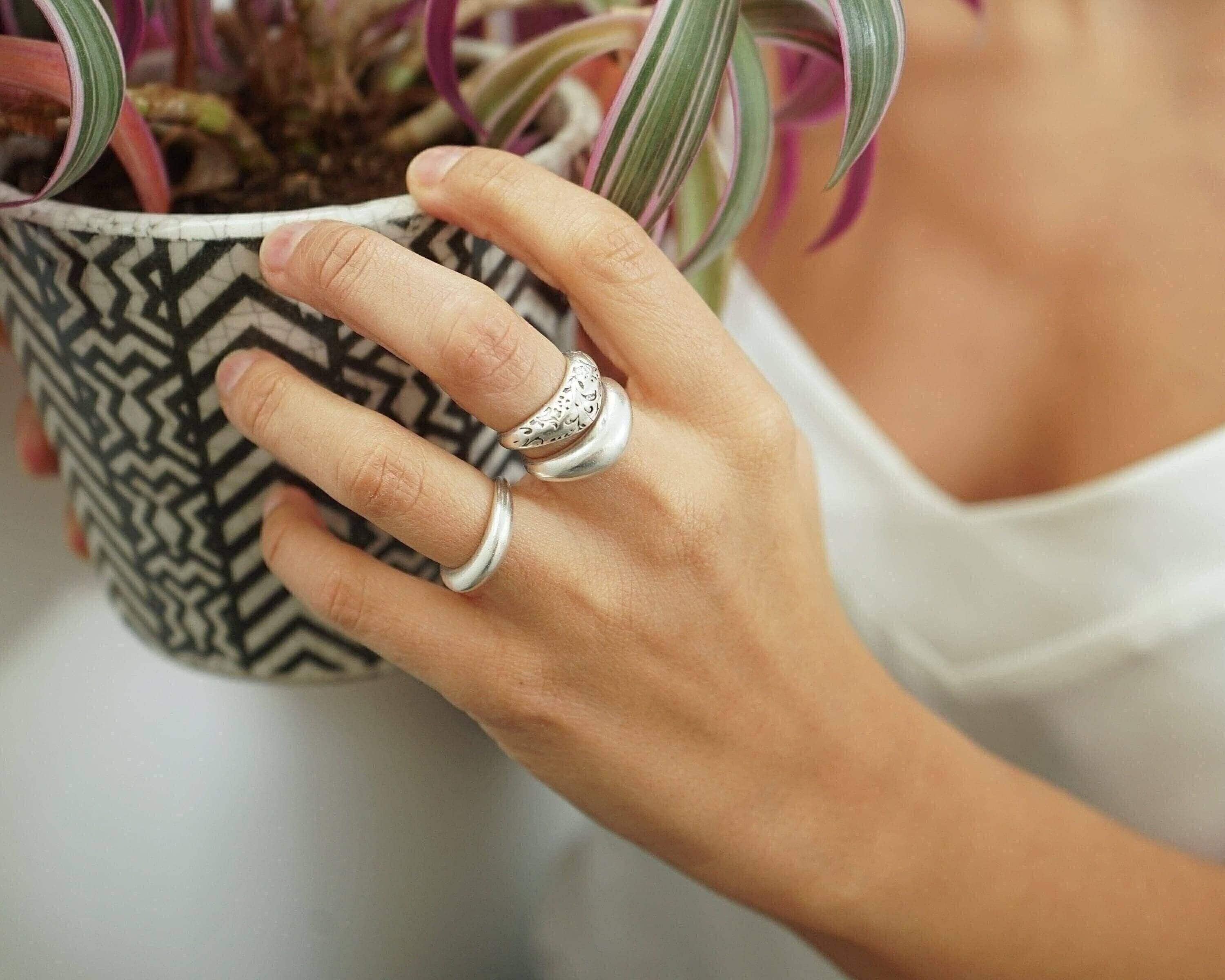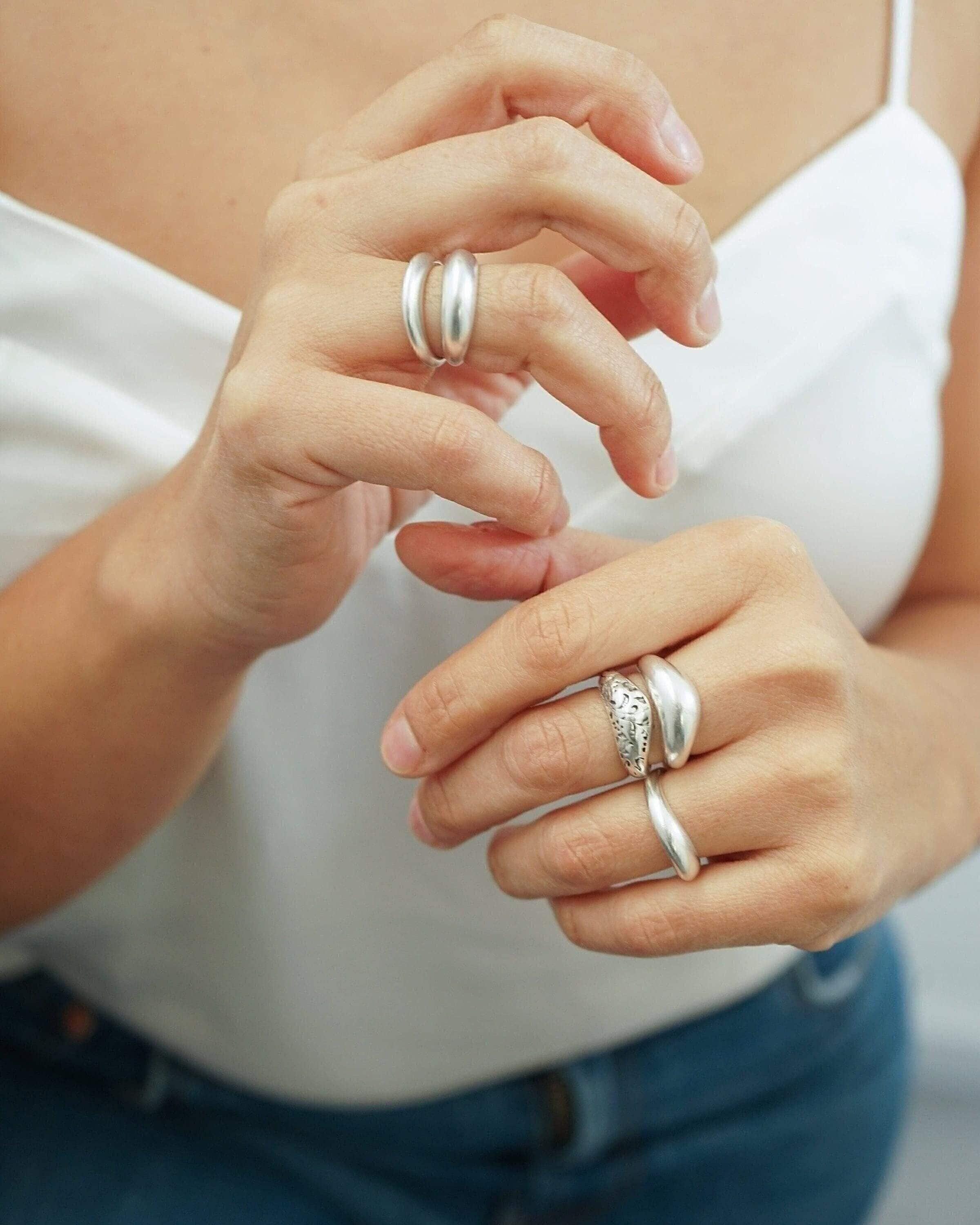 Crafted with an eye-catching irregular shape, this ring functions as a striking statement piece that you'll cherish season after season. The minimalistic, flowing curves and organic form are inspired by the beauty of nature and the human body, offering a contemporary yet timeless aesthetic.