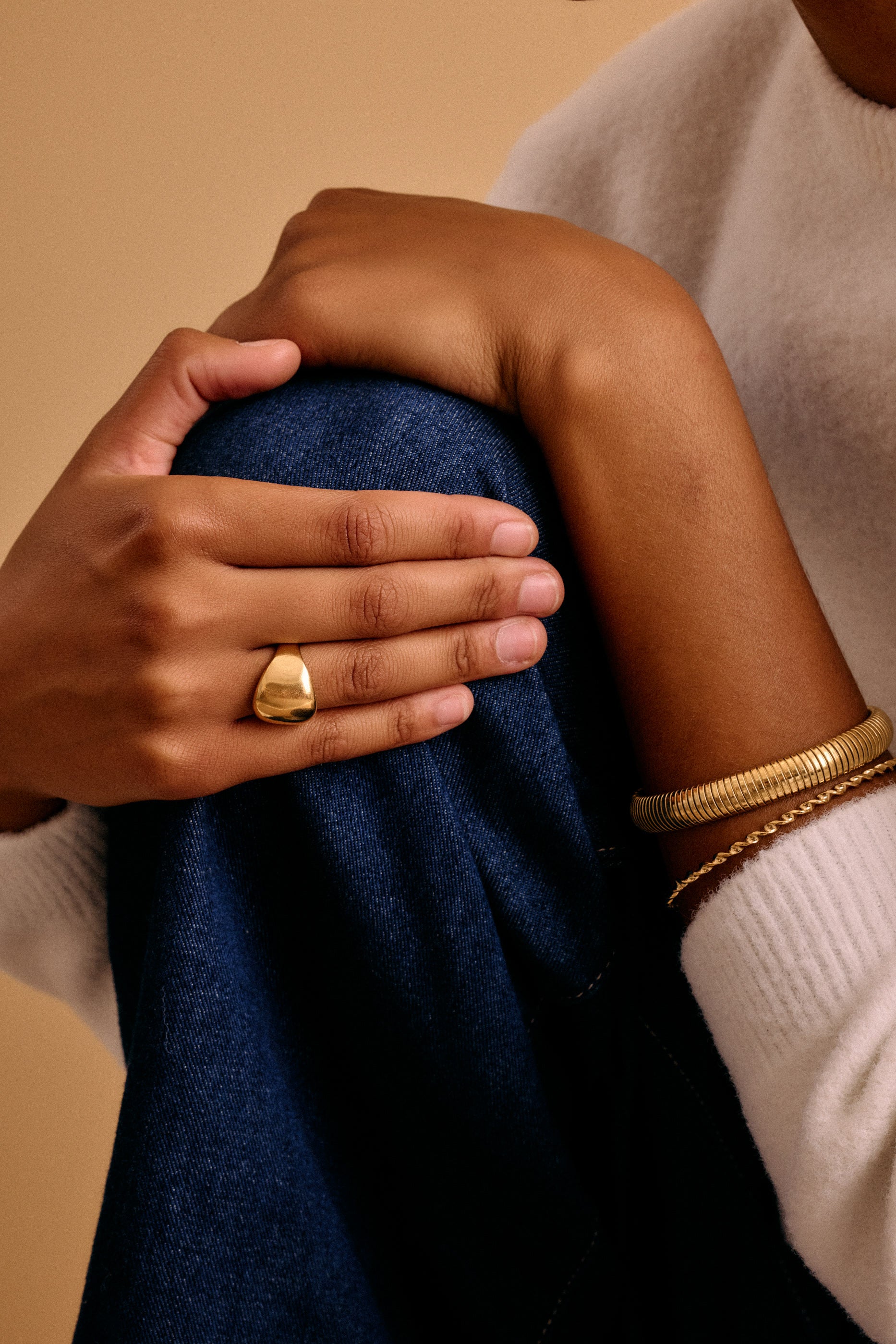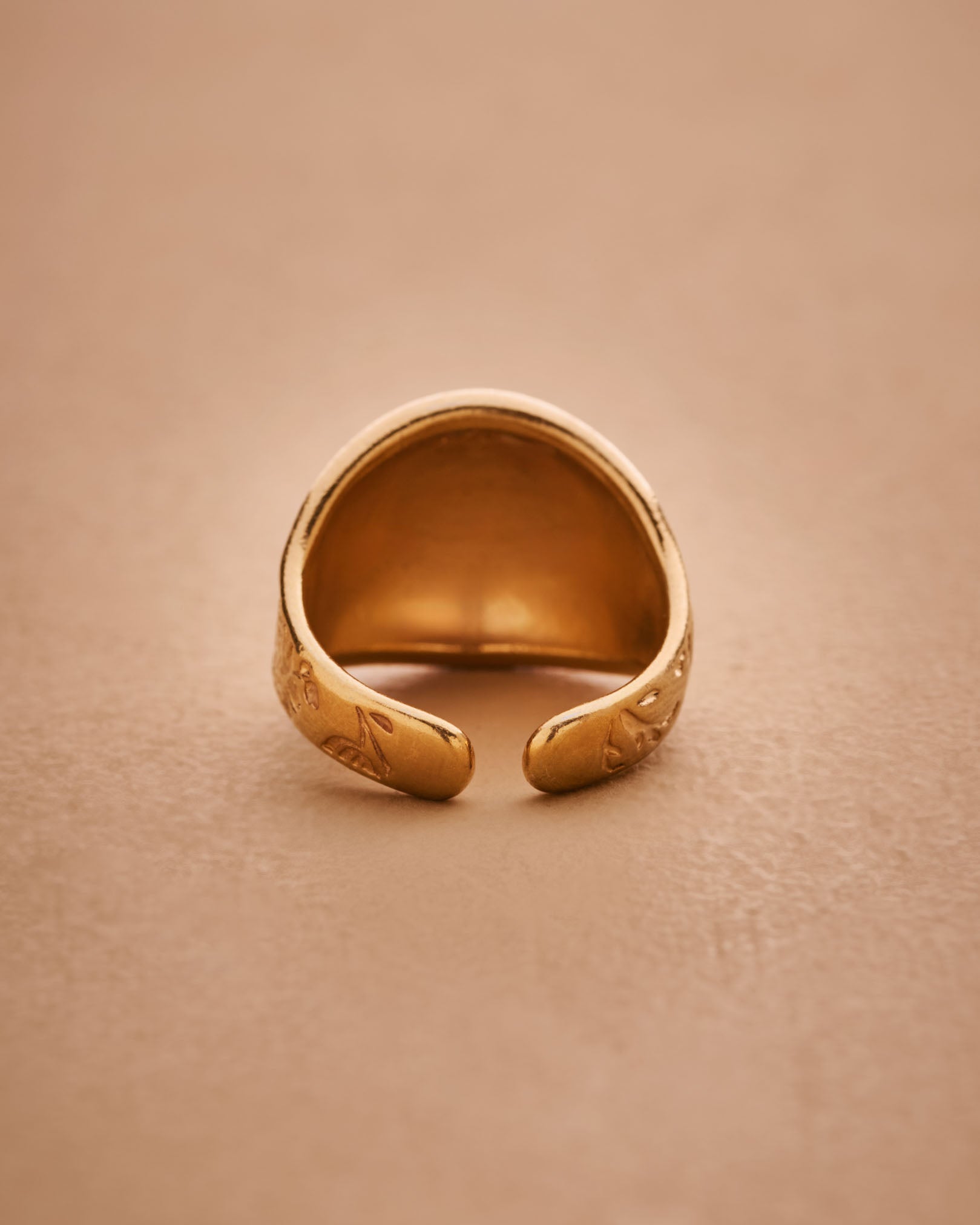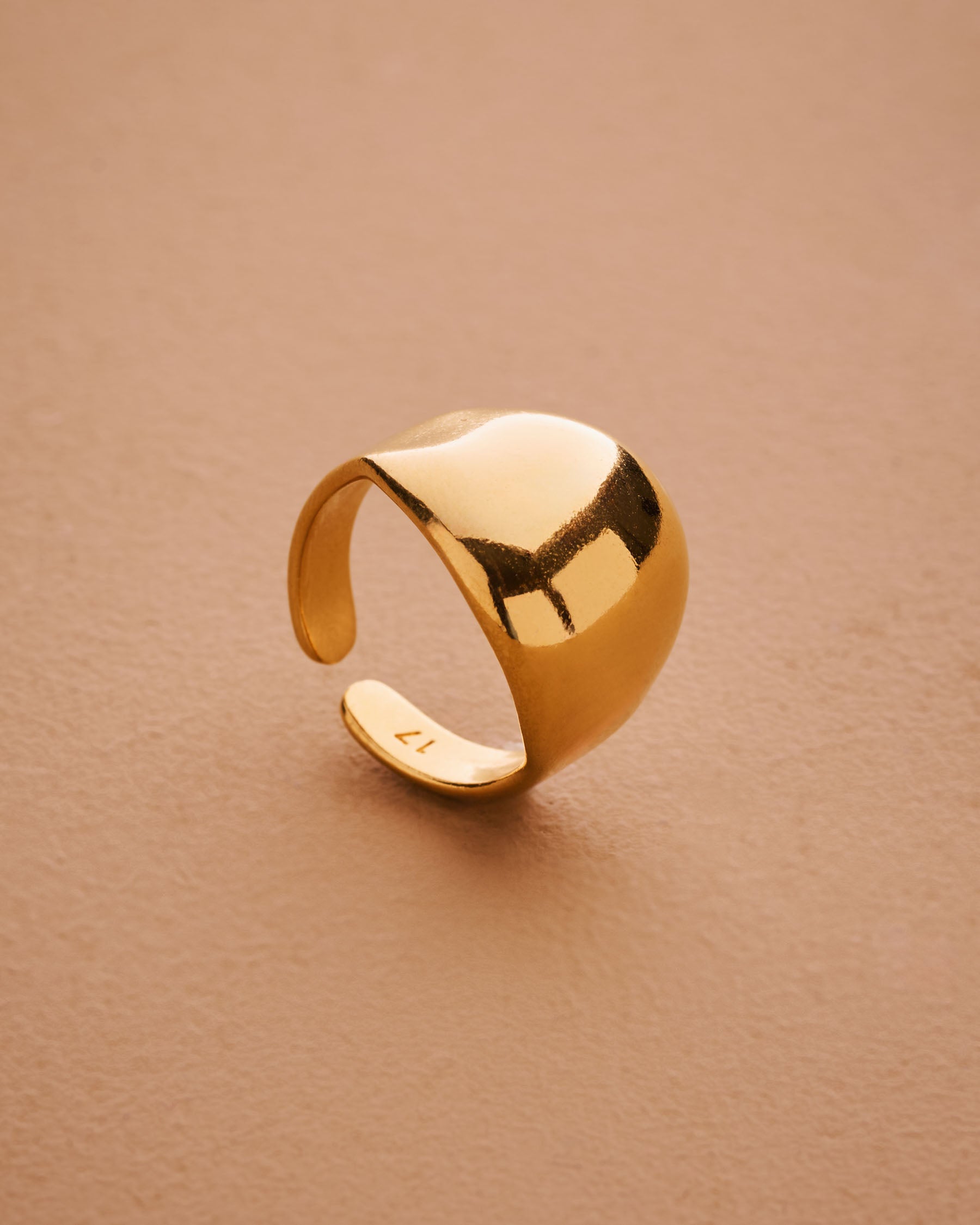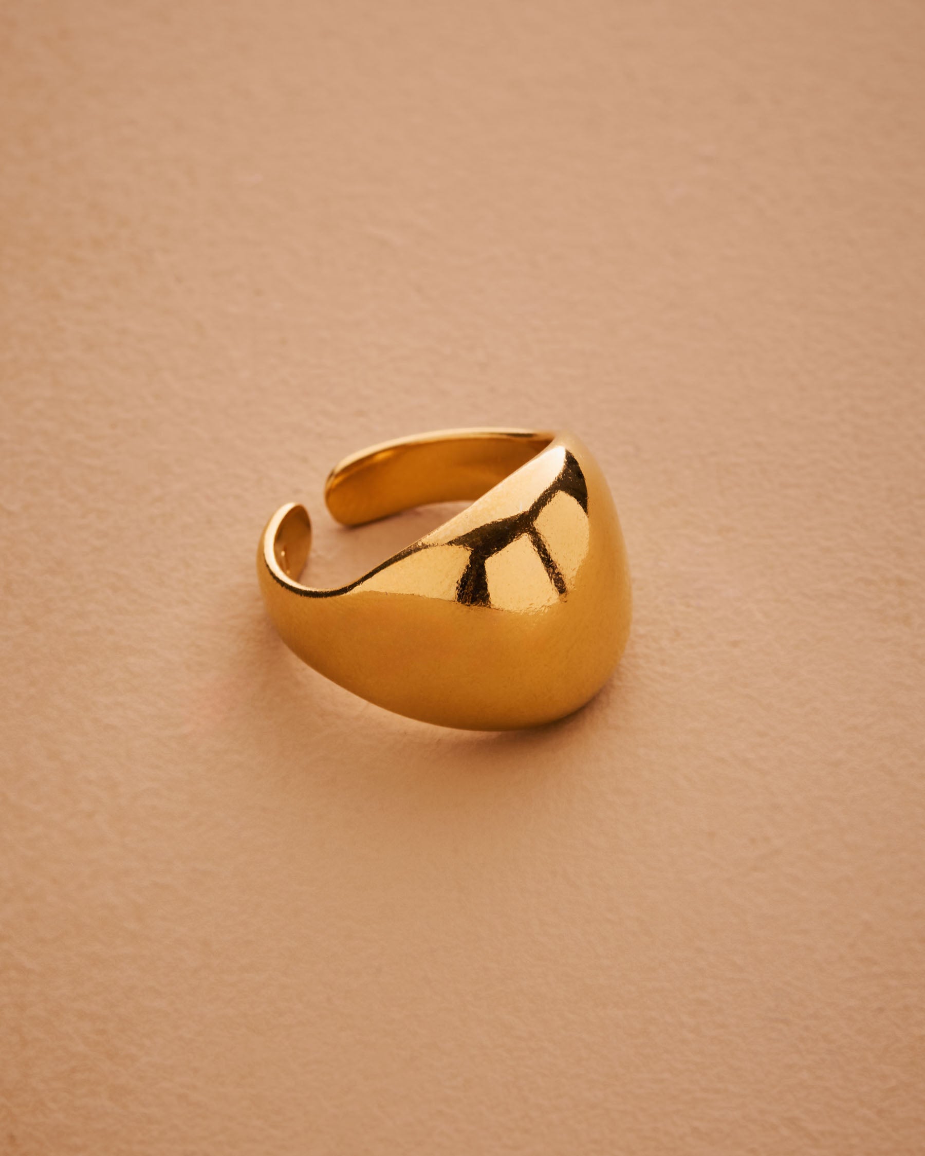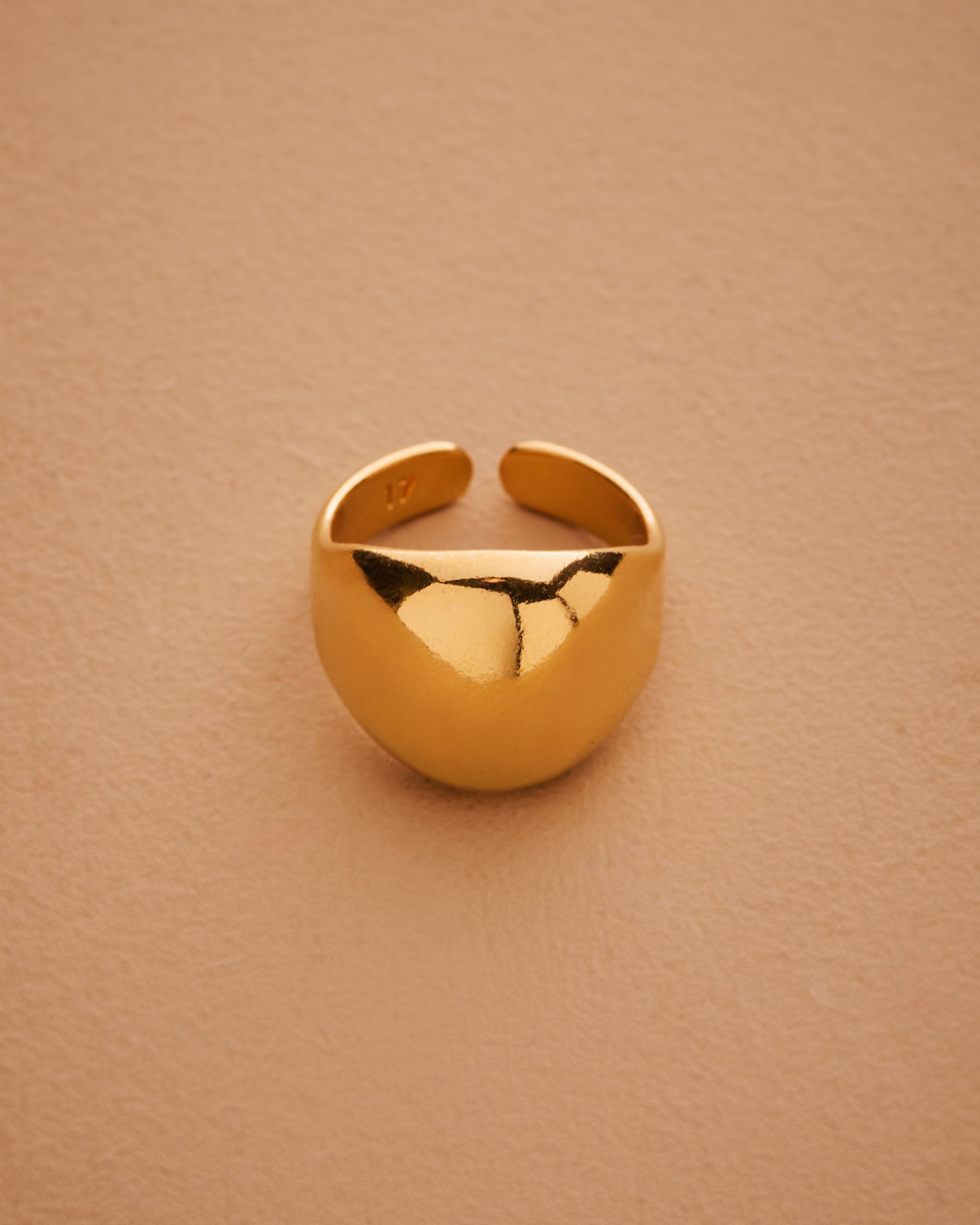 Discover our exquisite 24k gold plated dome ring, featuring two distinct designs: bold and floral. This unique and dainty piece can be elegantly worn on its own or stacked with other rings, making it perfect for those who enjoy layering their jewelry. Its unconventional, irregular shape serves as a striking statement piece that you’ll cherish for years to come. When paired with our other floral rings, it creates a fashionable ensemble that is ideal for the new season.
