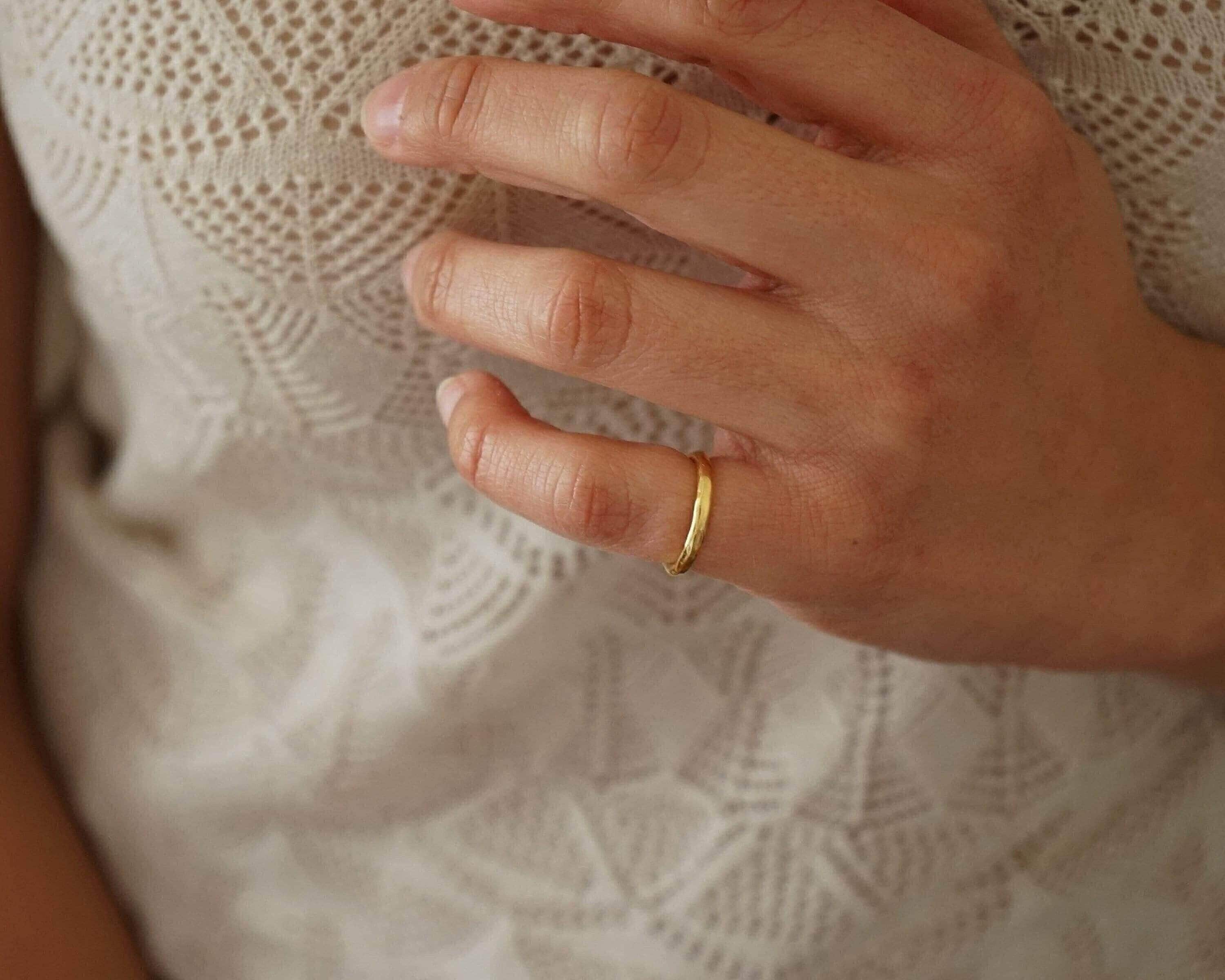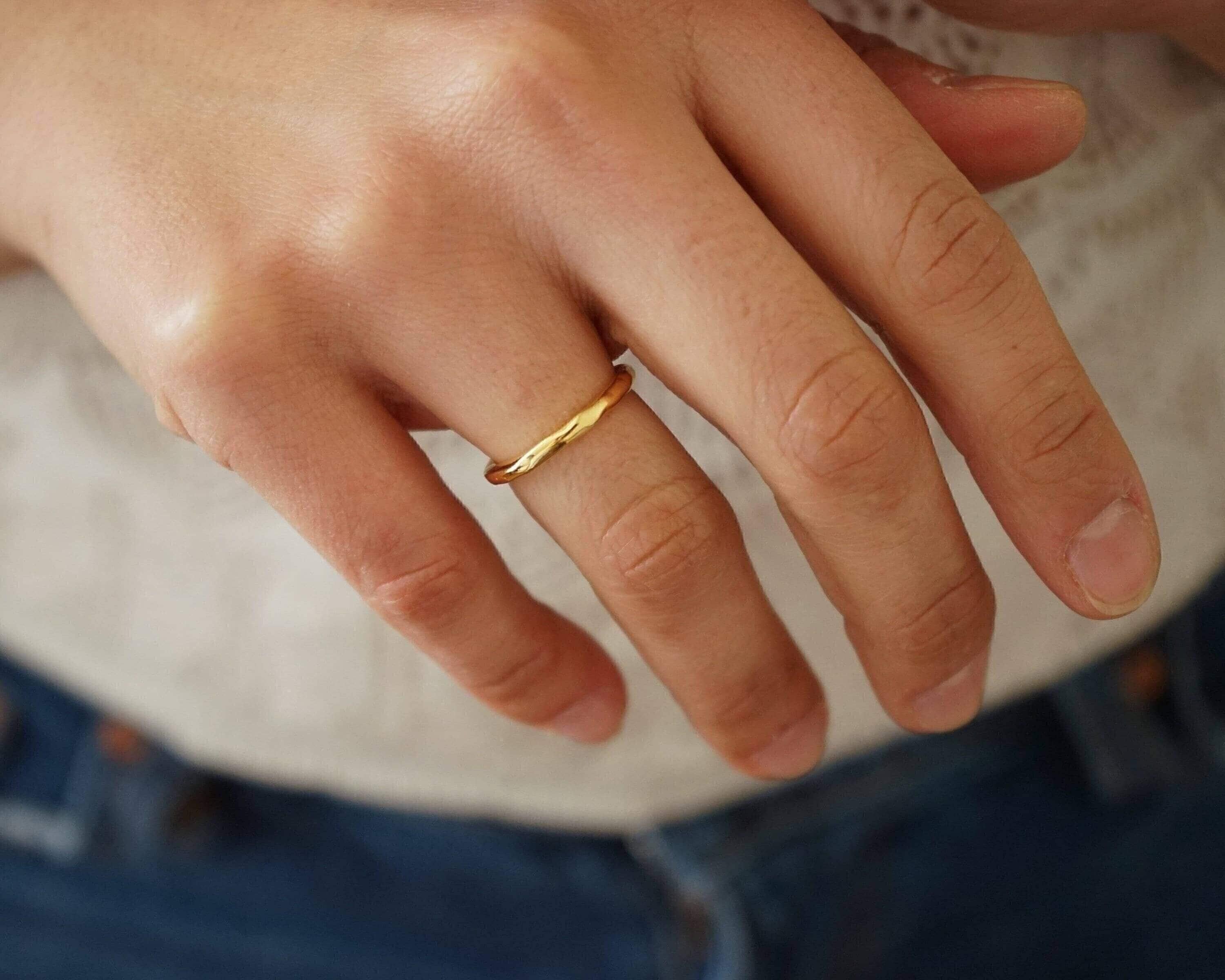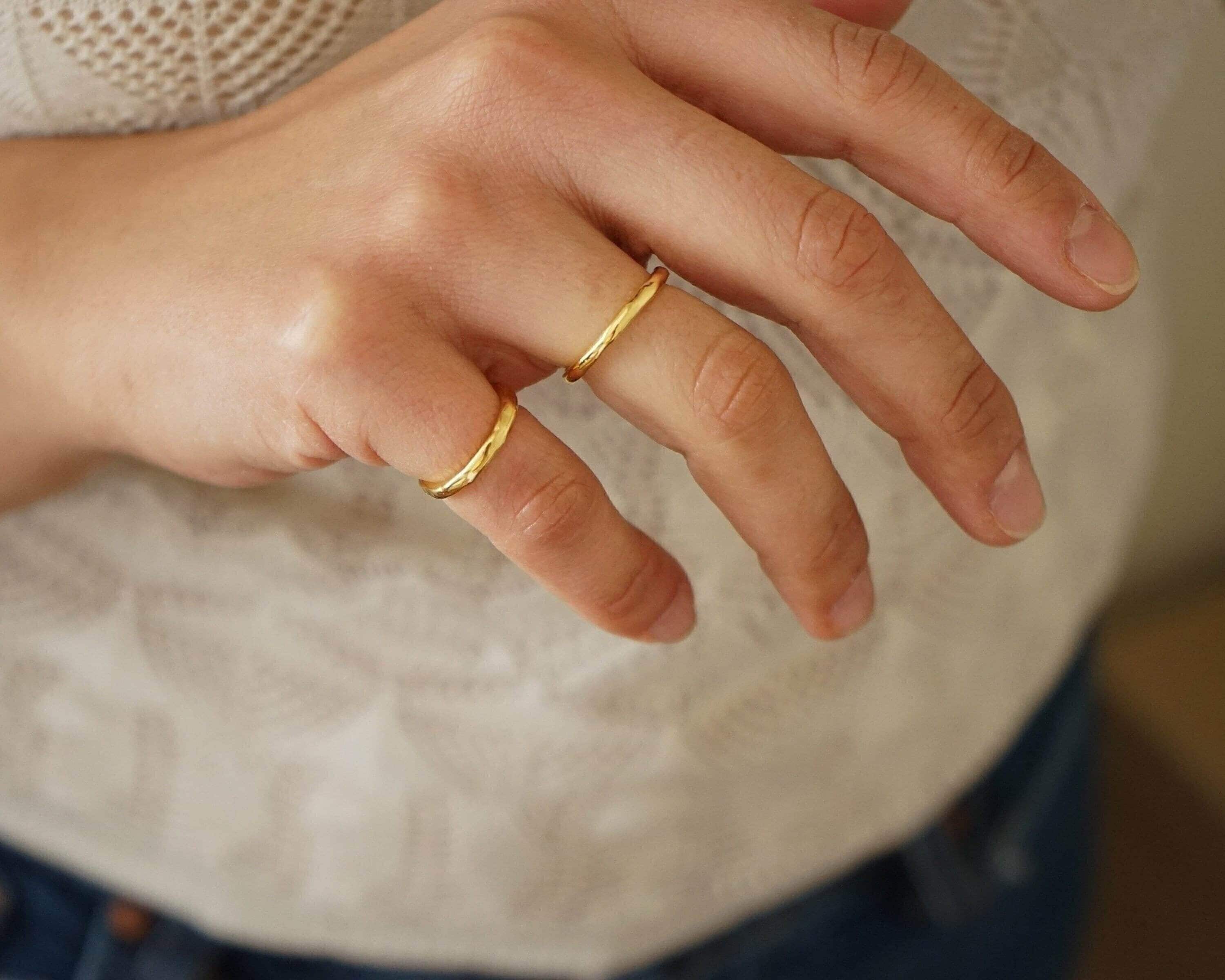 Experience the refined simplicity of our minimalist hammered band ring, thoughtfully designed to be worn as a pinky ring or a versatile finger ring. This delicately crafted piece is an ideal addition to any jewelry collection, thanks to its unique hammered texture that catches the light, offering a subtle shine to enhance a variety of outfits.