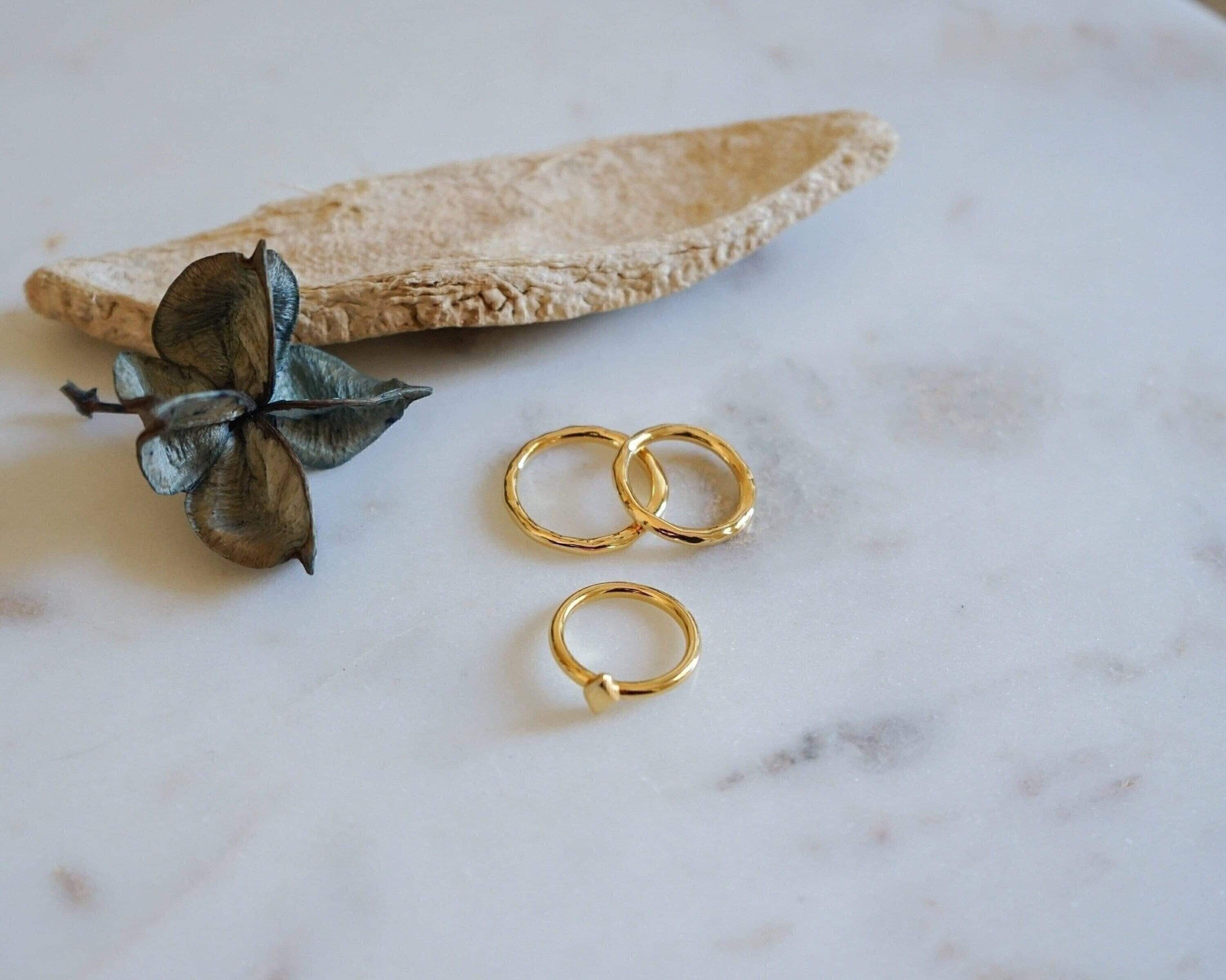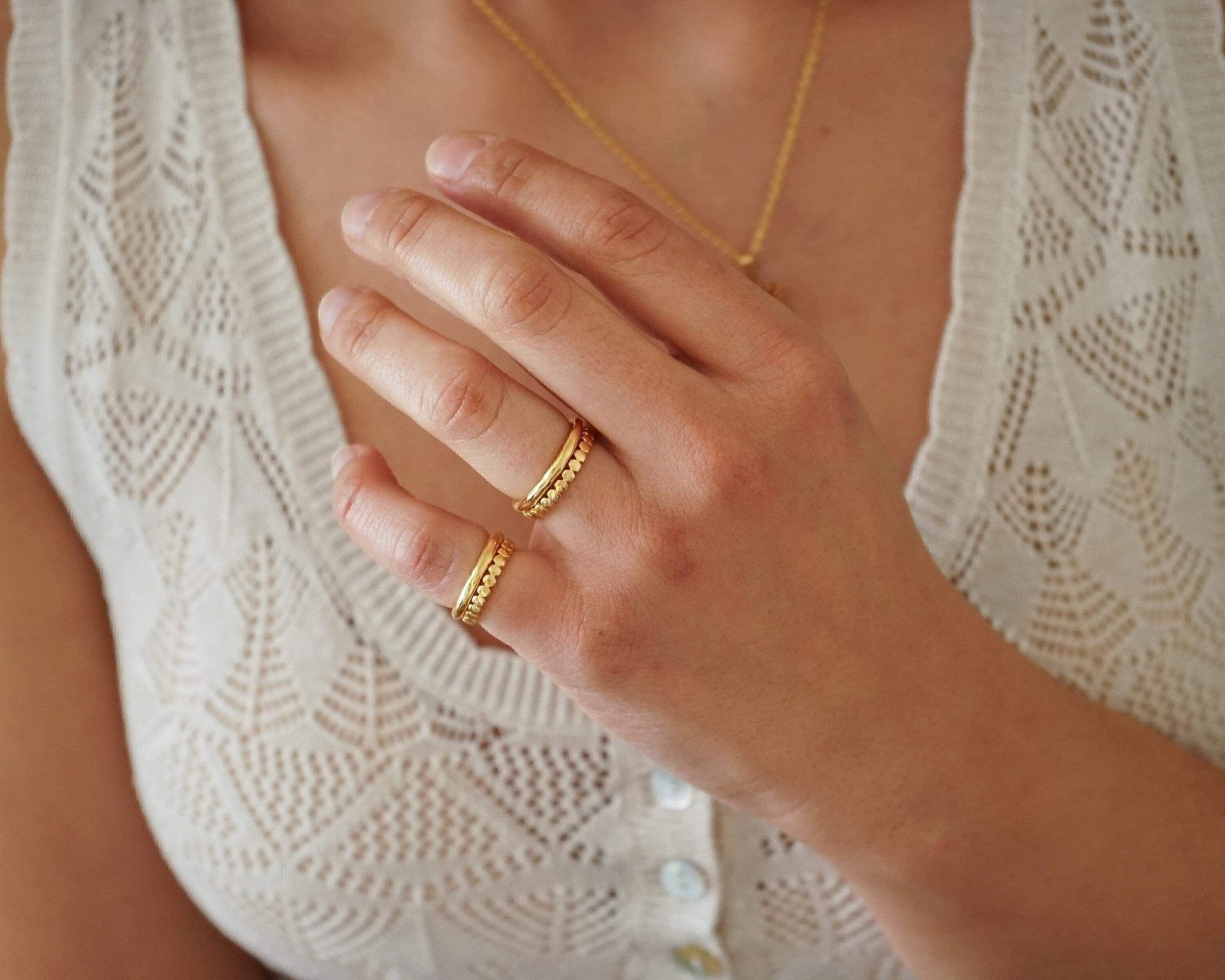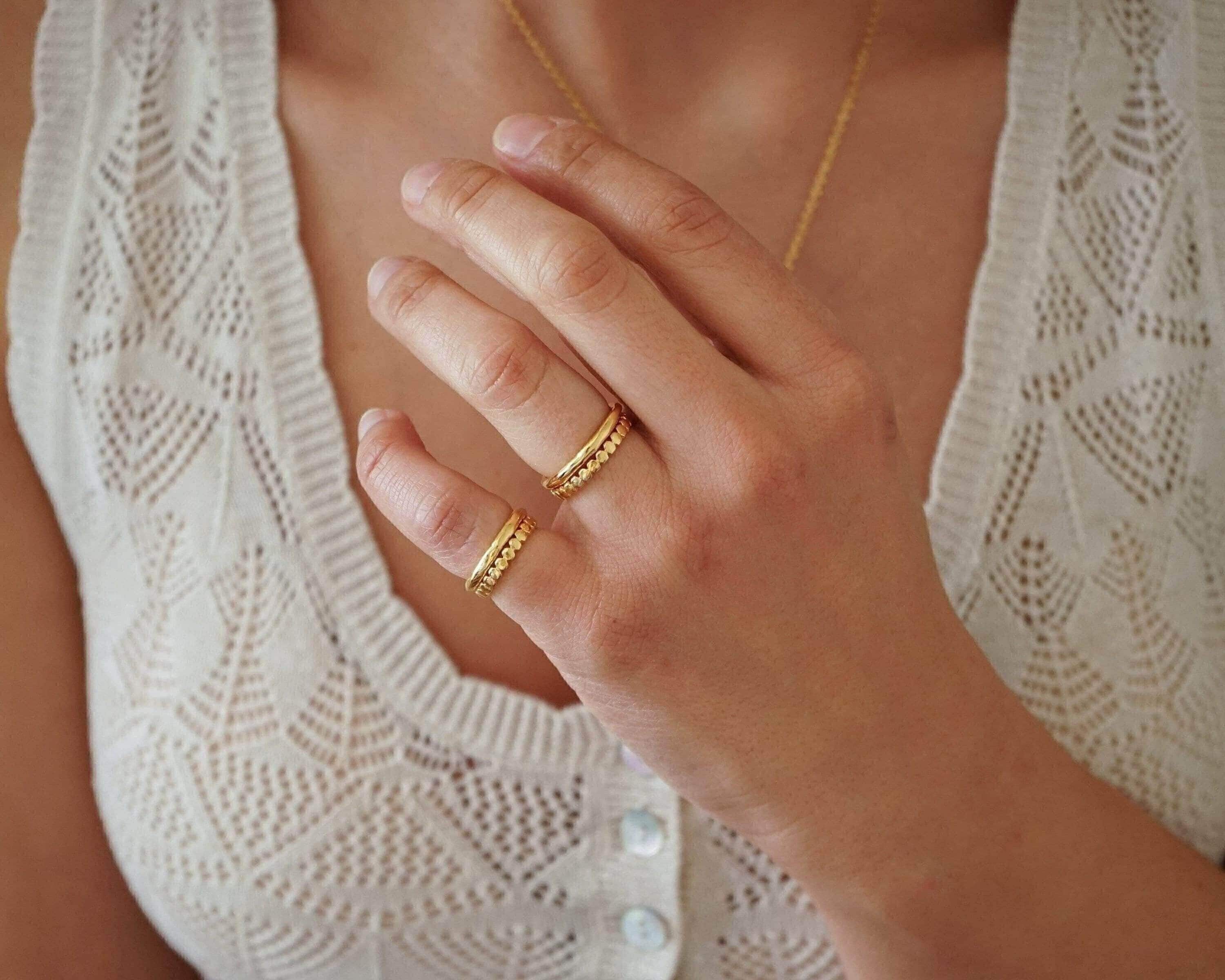 Experience the refined simplicity of our minimalist hammered band ring, thoughtfully designed to be worn as a pinky ring or a versatile finger ring. This delicately crafted piece is an ideal addition to any jewelry collection, thanks to its unique hammered texture that catches the light, offering a subtle shine to enhance a variety of outfits.