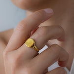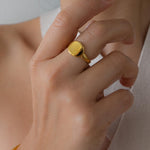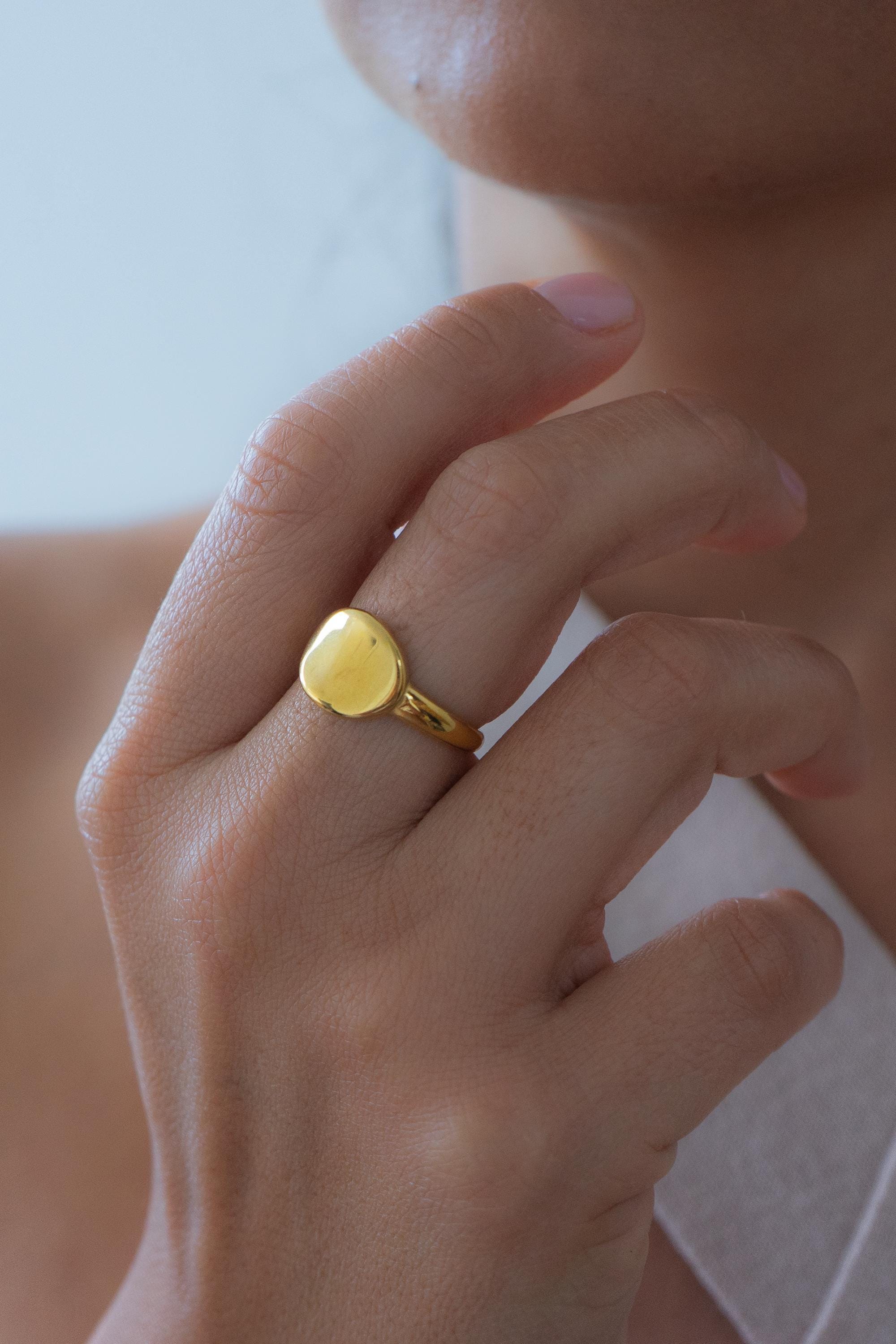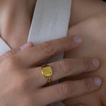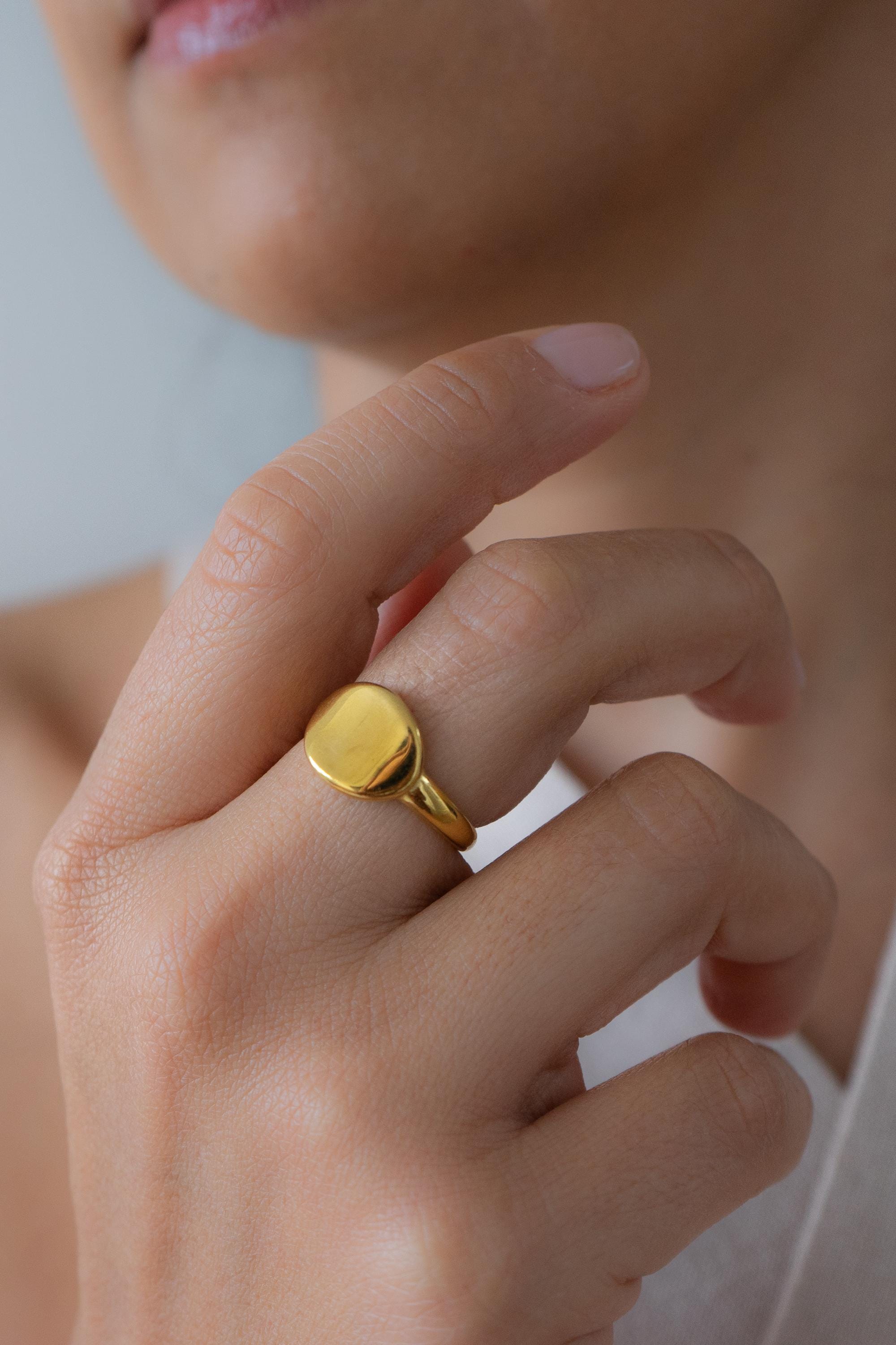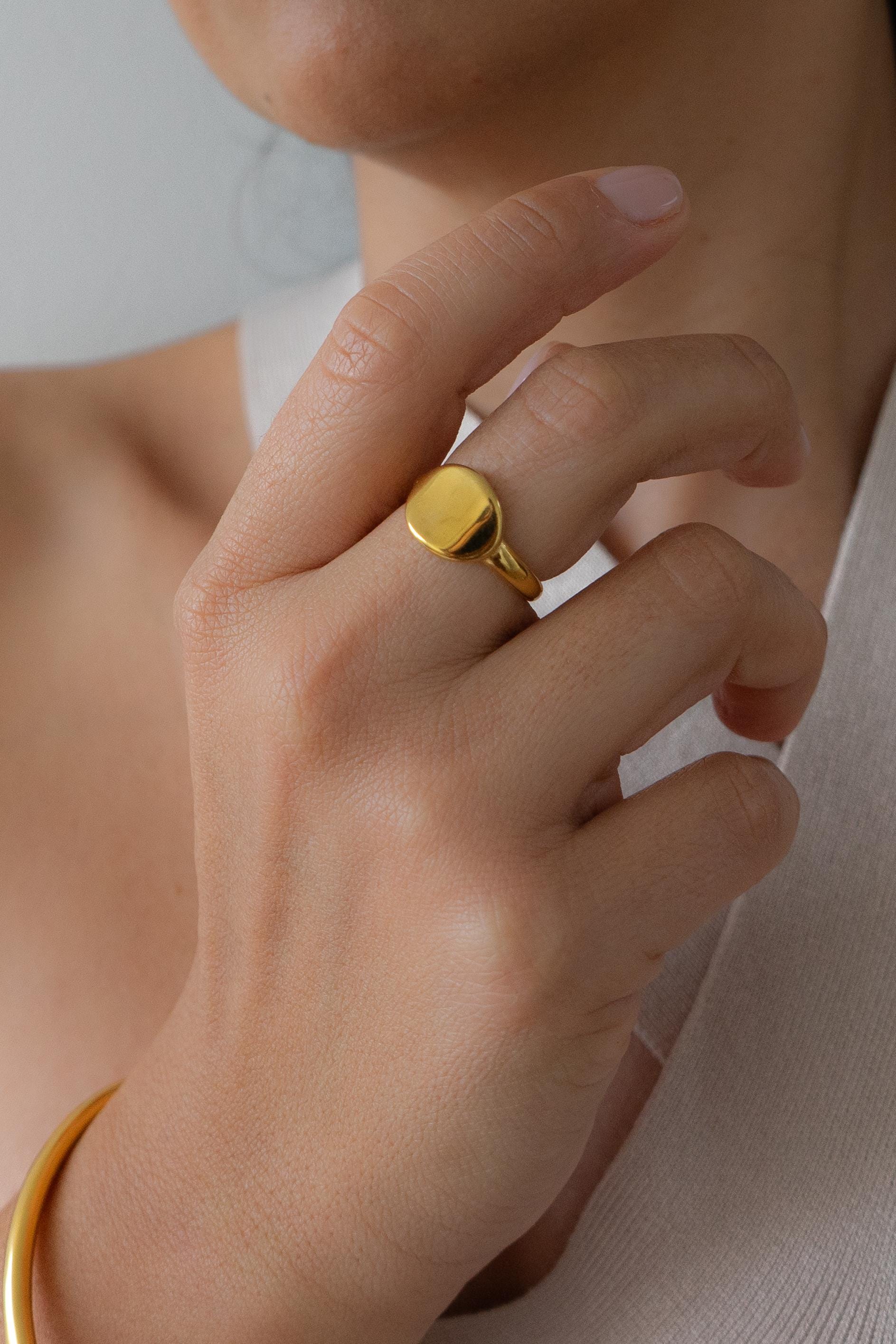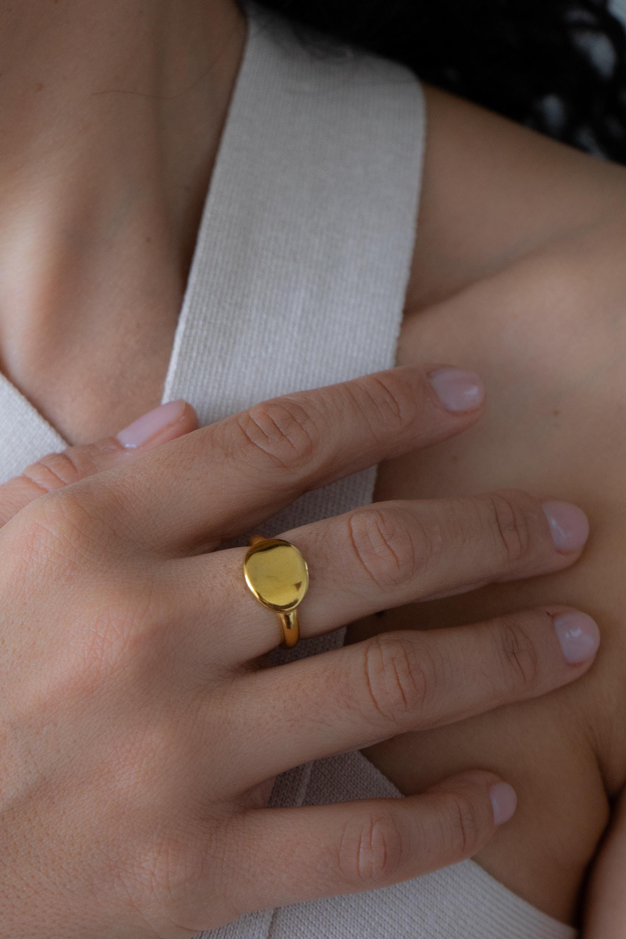 This minimalist gold signet ring features a softly rounded oval face and a clean, polished finish — understated, feminine, and timeless.