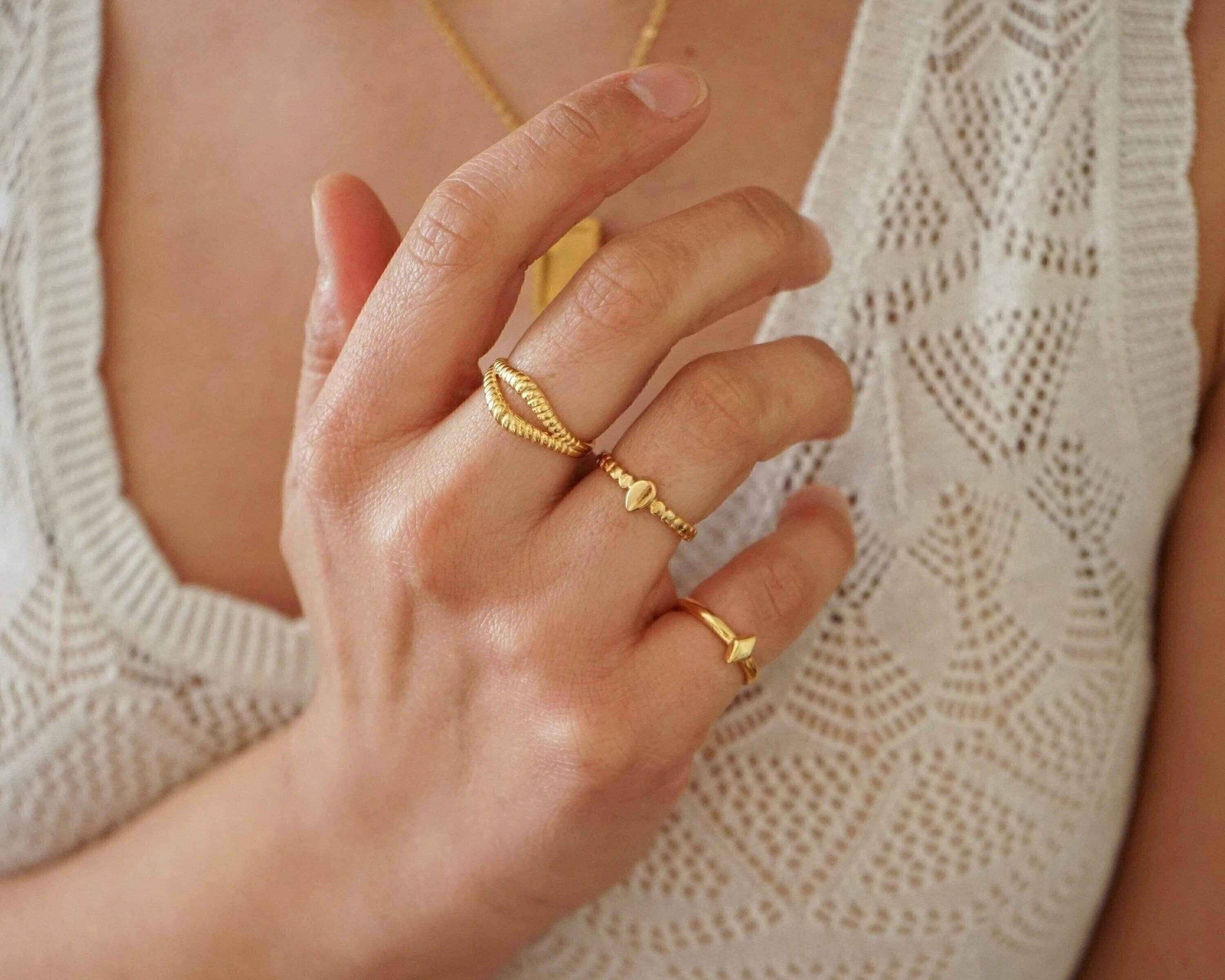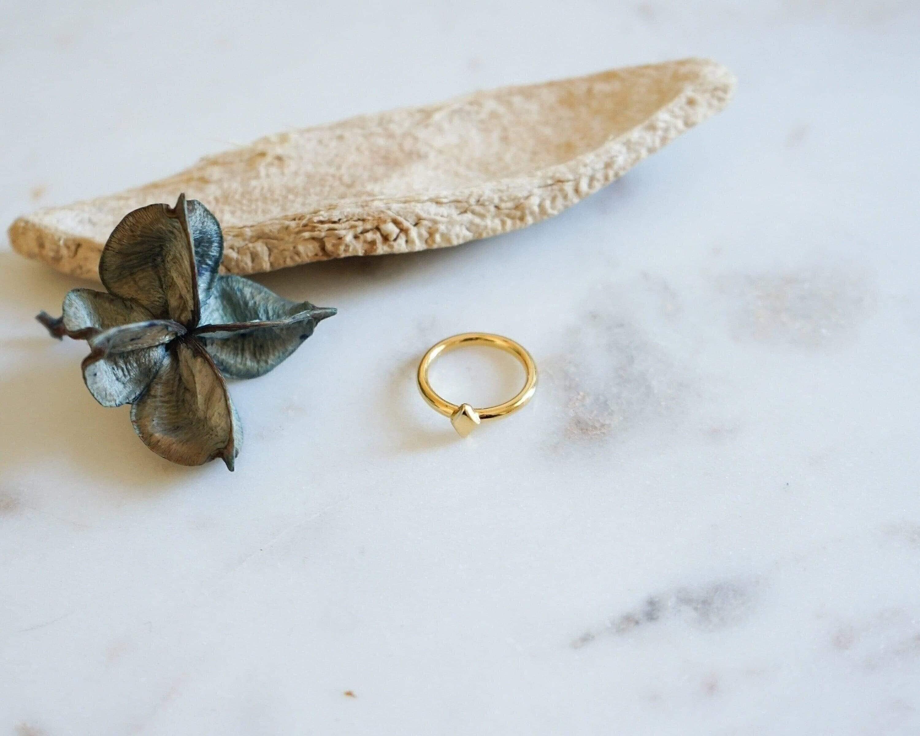Discover the elegance of our Tiny Thin Gold Rhombus Band Pinky Ring, a beautifully crafted piece that combines simplicity with chic style. Set on a delicate thin band, this ring features a unique rhombus design, making it a perfect addition to your jewelry collection. It pairs wonderfully with our thin hammered band rings, allowing for versatile styling options. Elevate your outfits effortlessly, whether wearing it as a pinky ring or a midi ring.