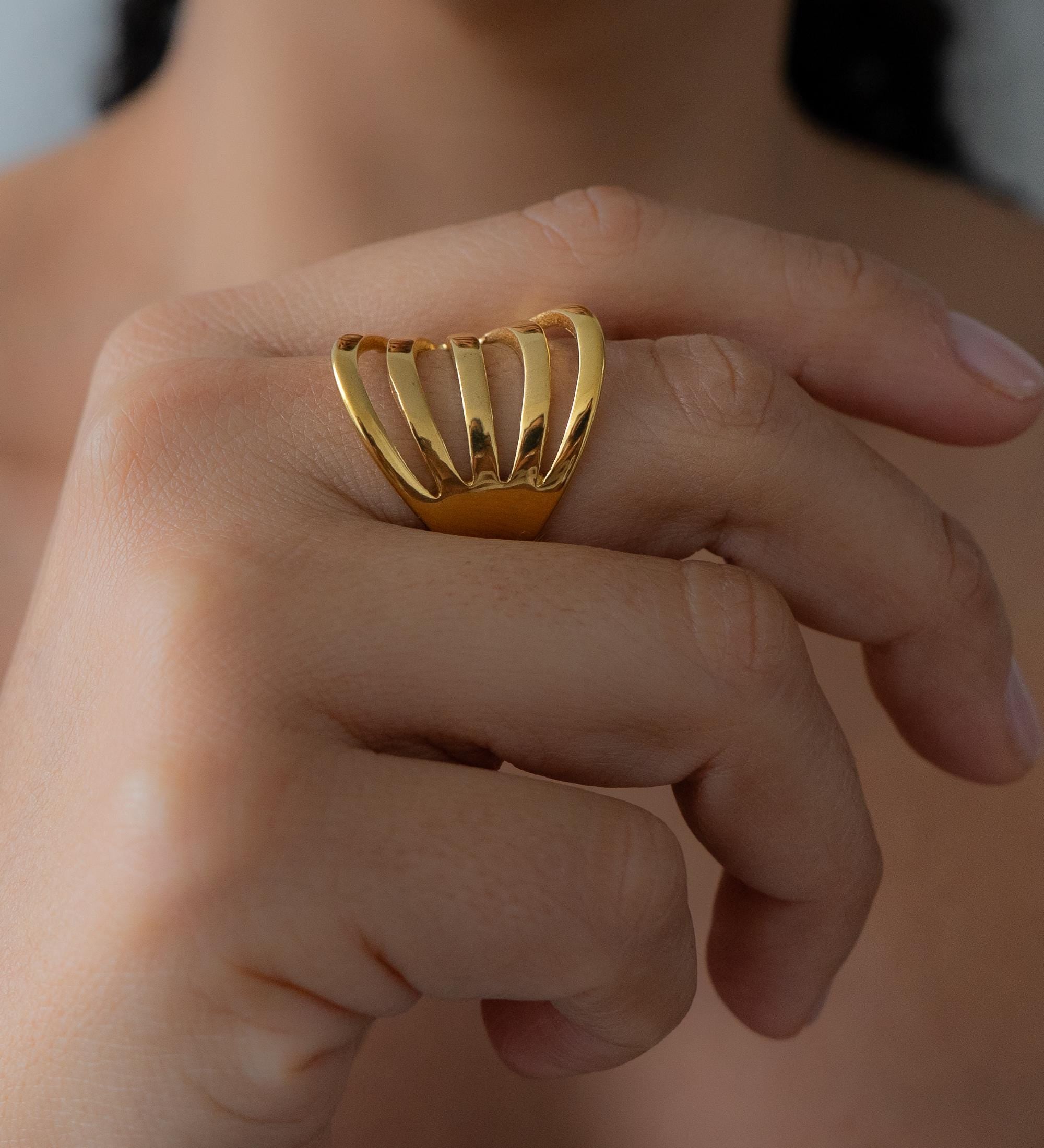 Gold Black/Turquoise/Burgundy Rising Sun Ring
