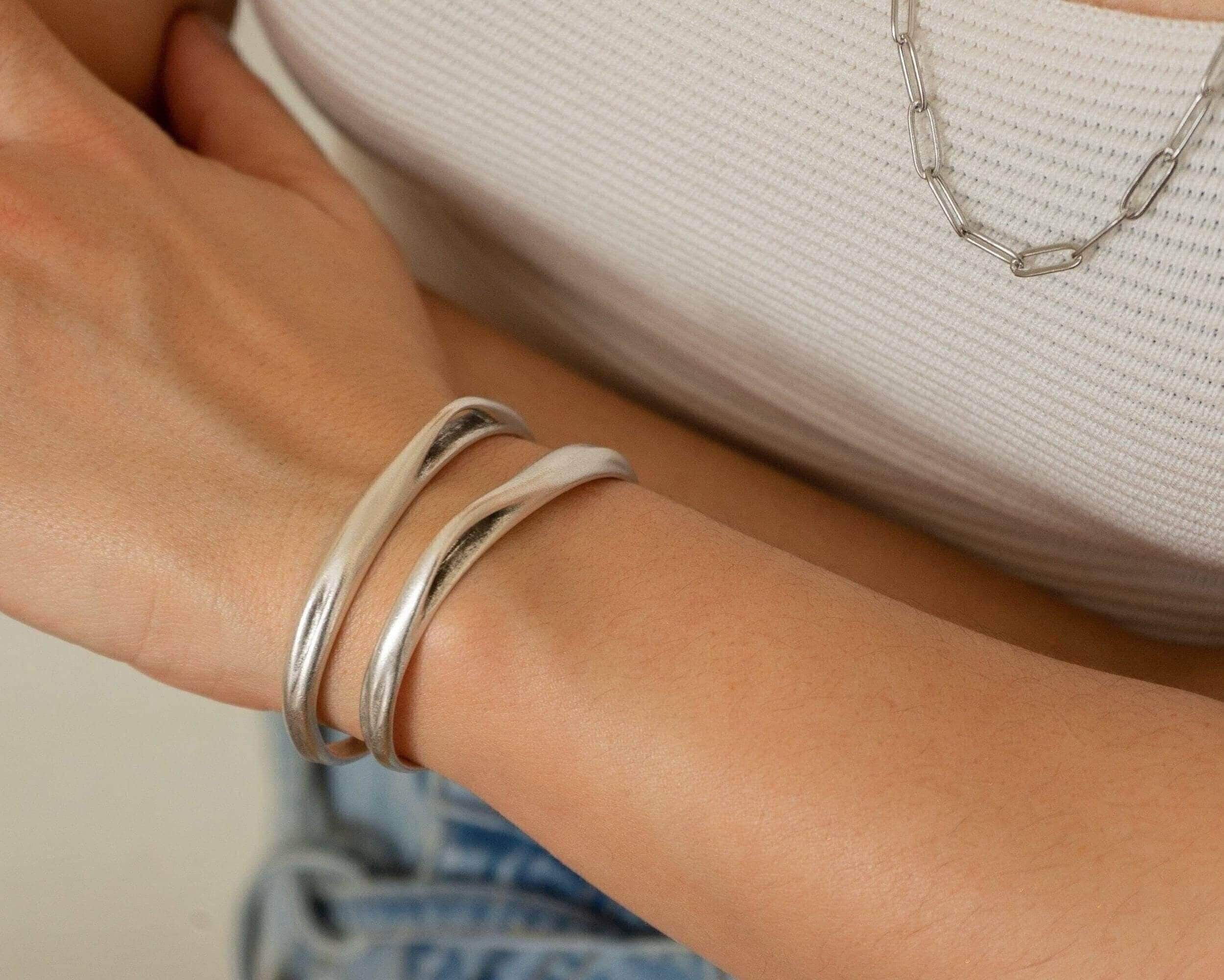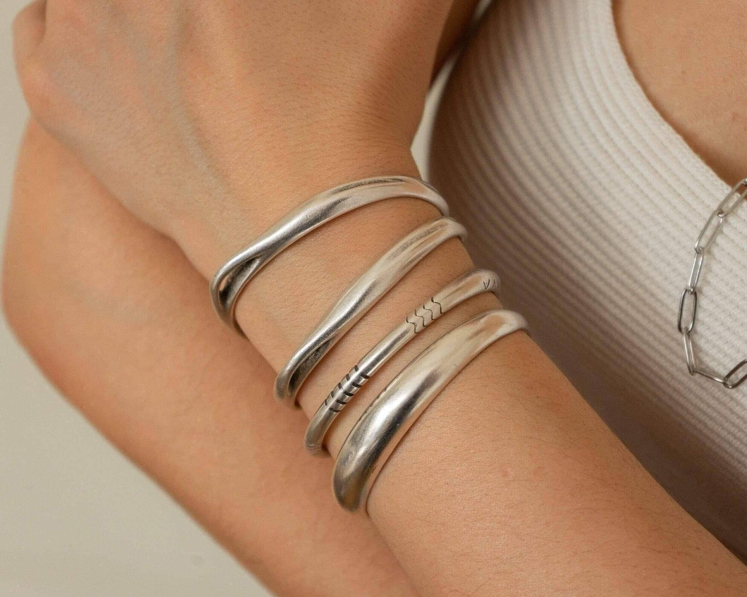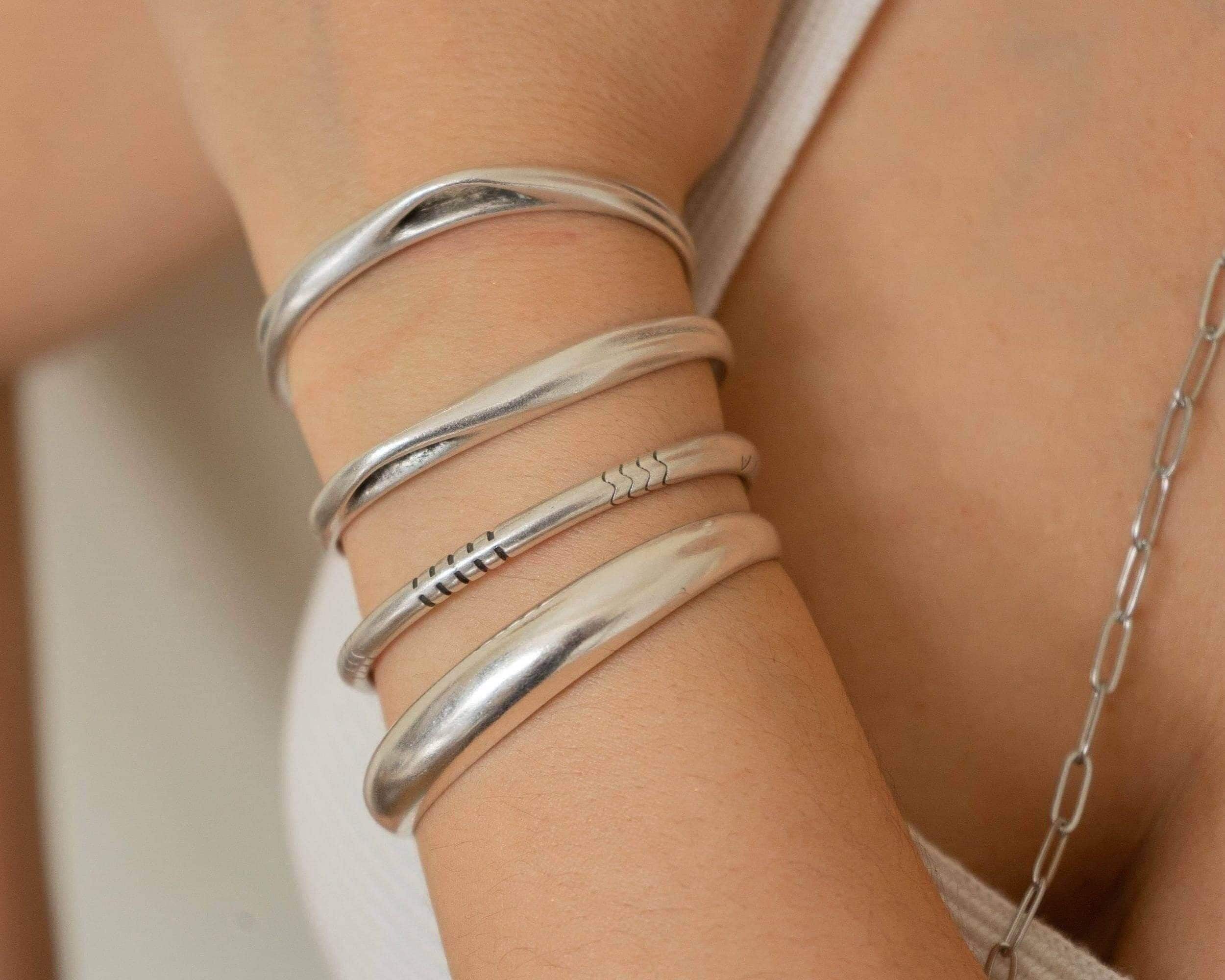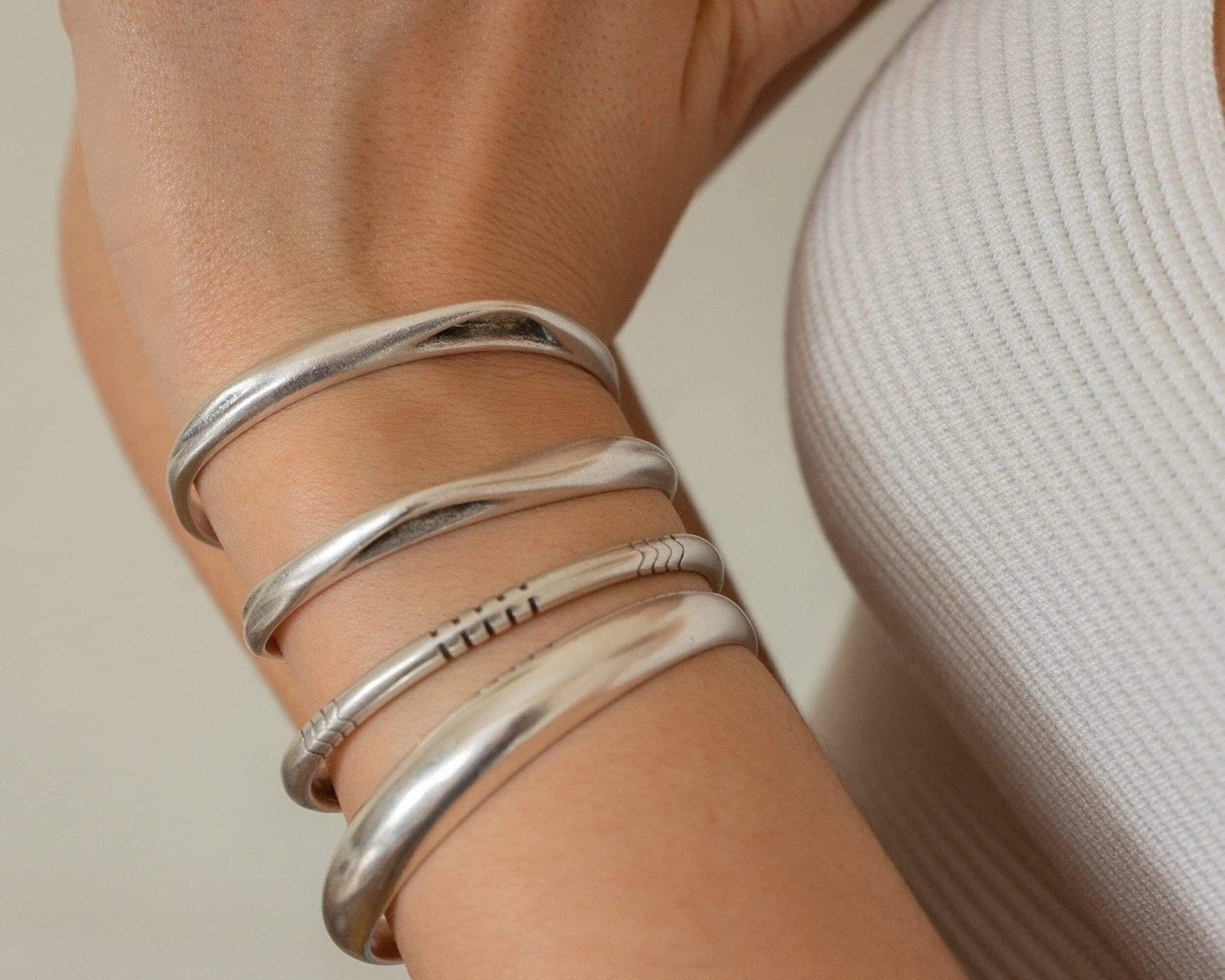Silver Cuff Bracelet - Bold Organic Stacking Boho Minimalist Statement for Women