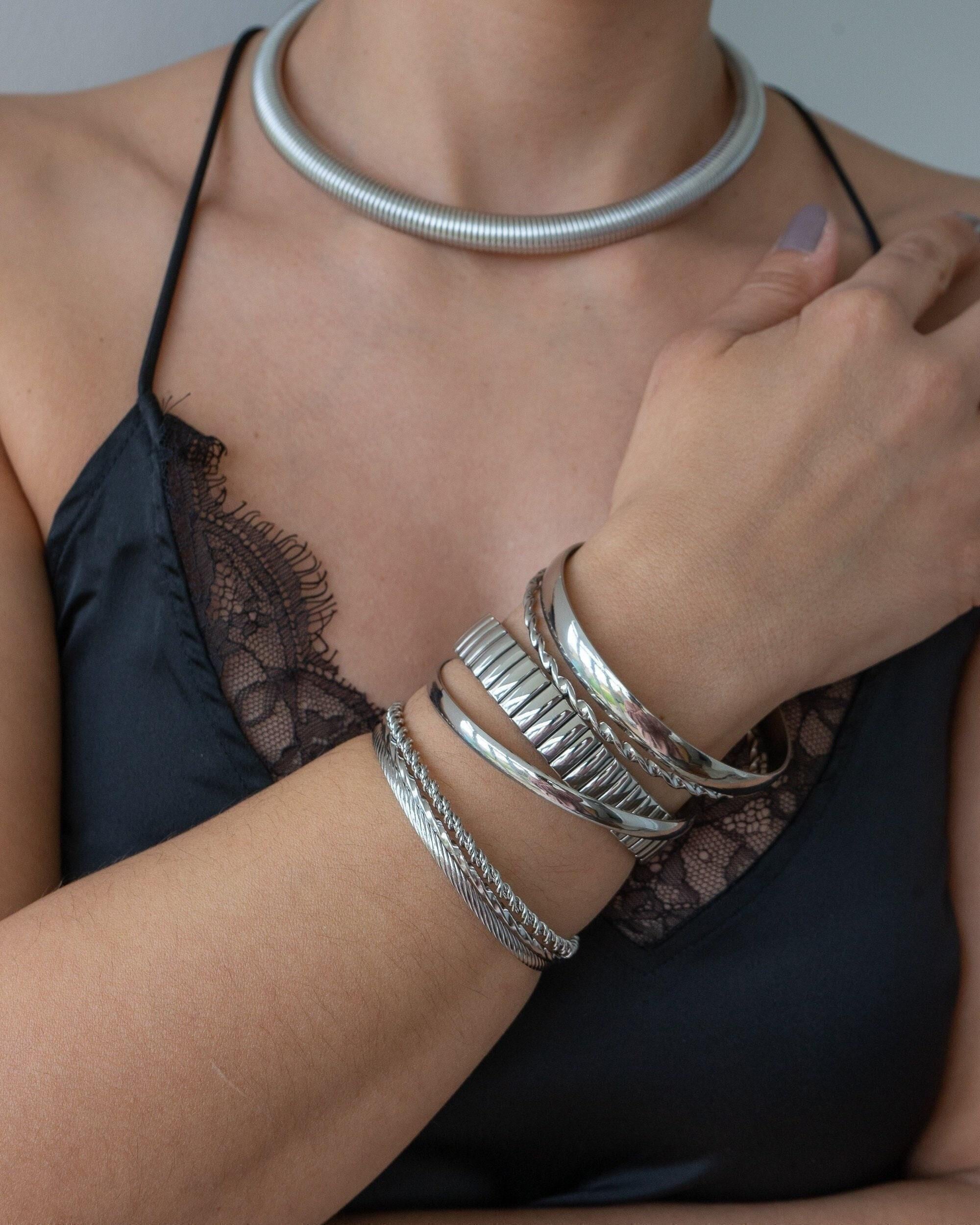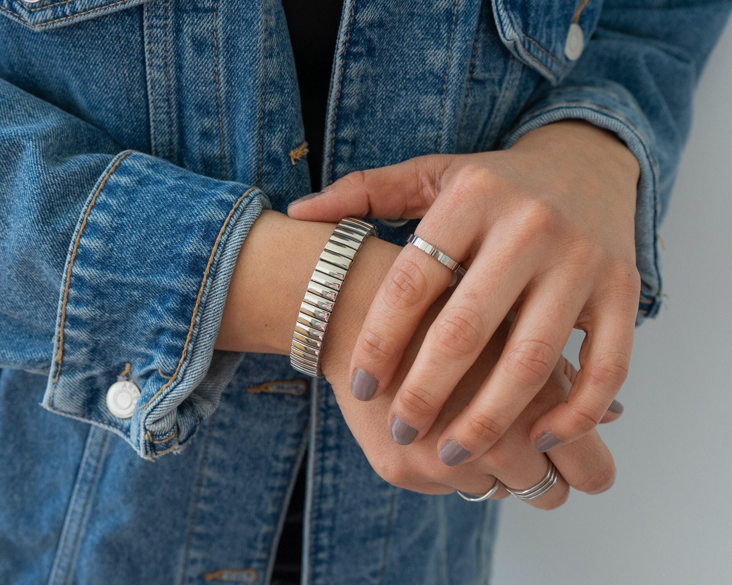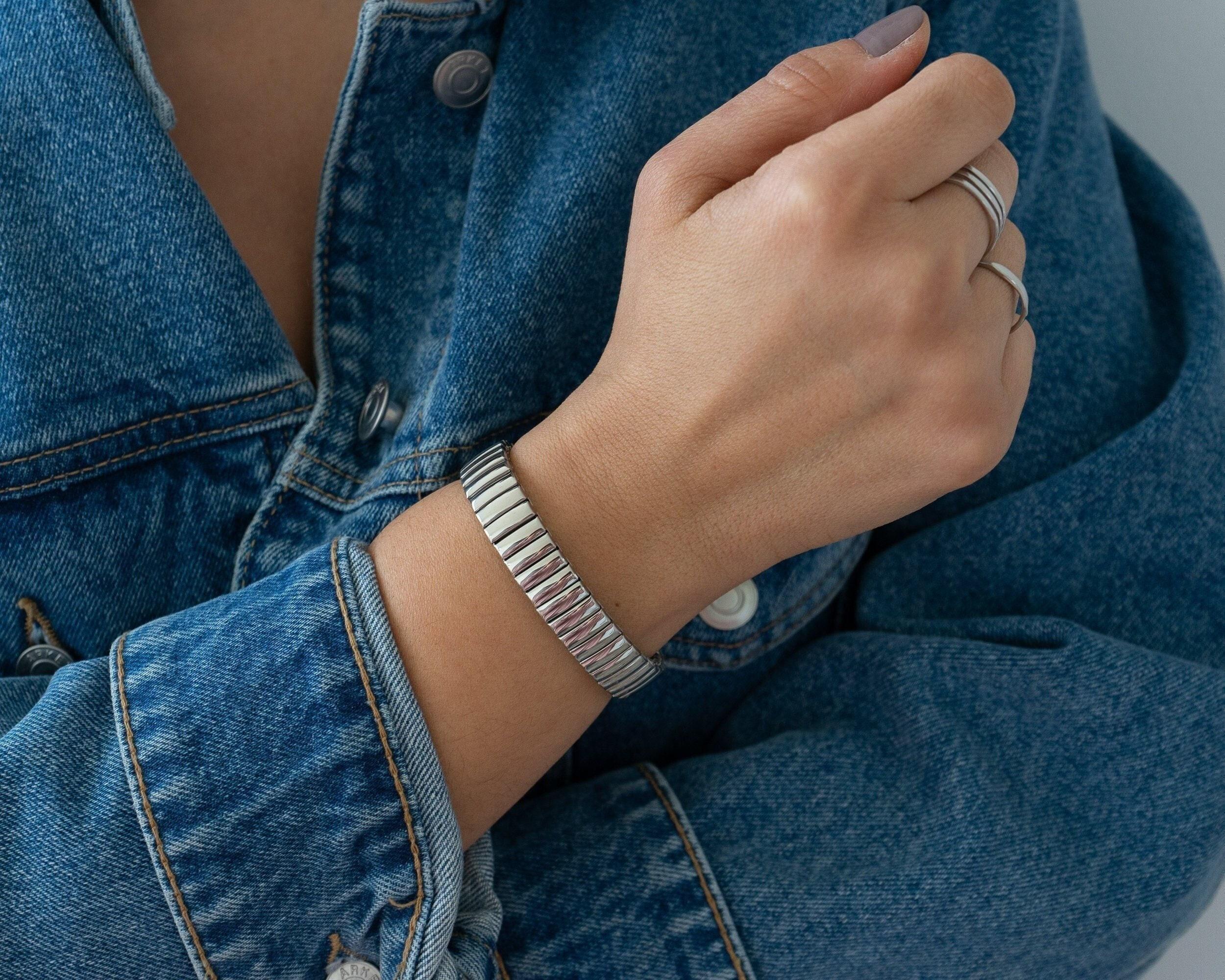 This stretchable wristband bracelet is made of high-quality stainless steel, ensuring both durability and resistance to tarnishing. Its sleek design makes a statement on its own, and it can be easily paired with other pieces from our collection. Whether stacked or worn separately, it is sure to become a favorite in your wardrobe. Plus, its waterproof feature adds convenience to its already impressive qualities.