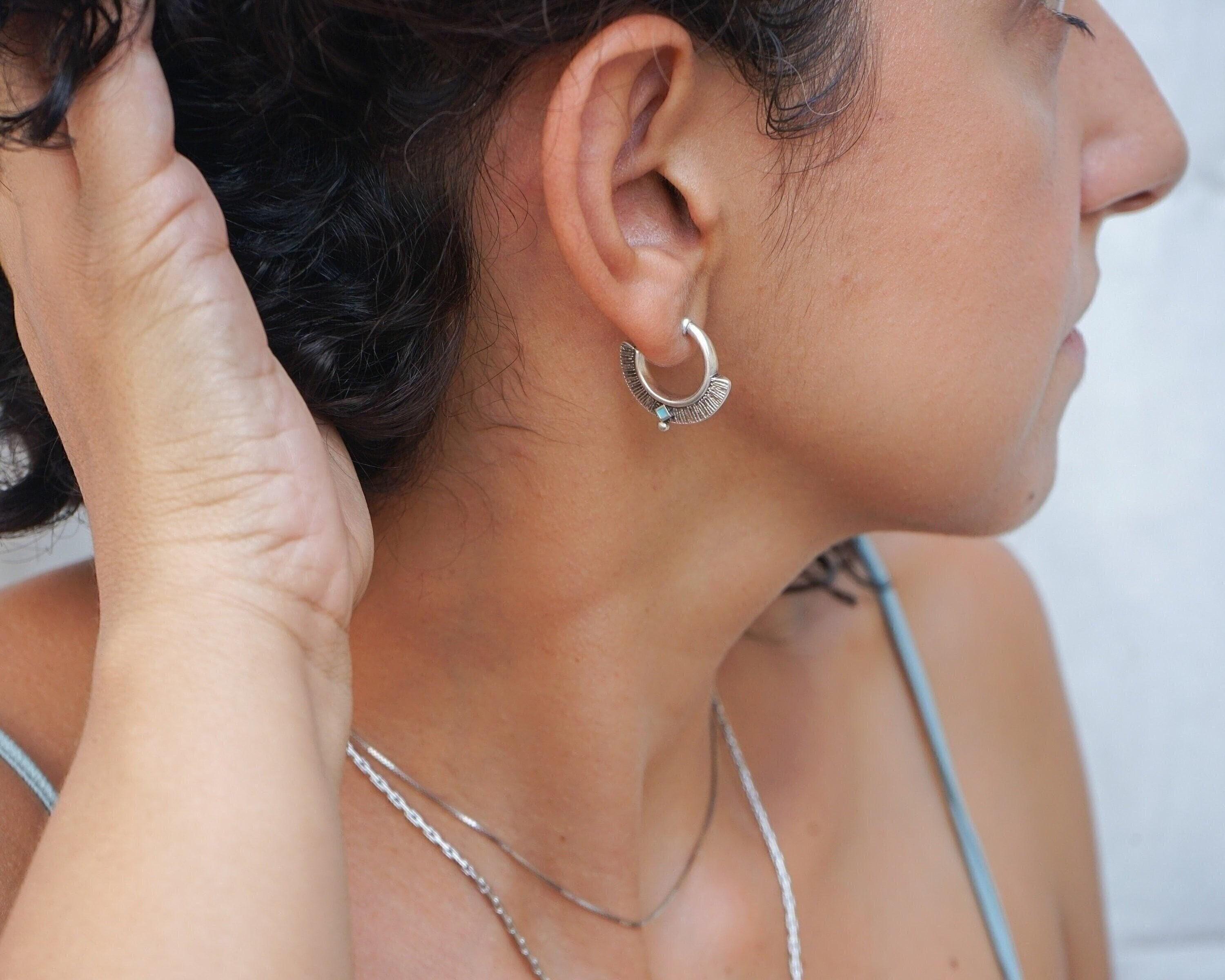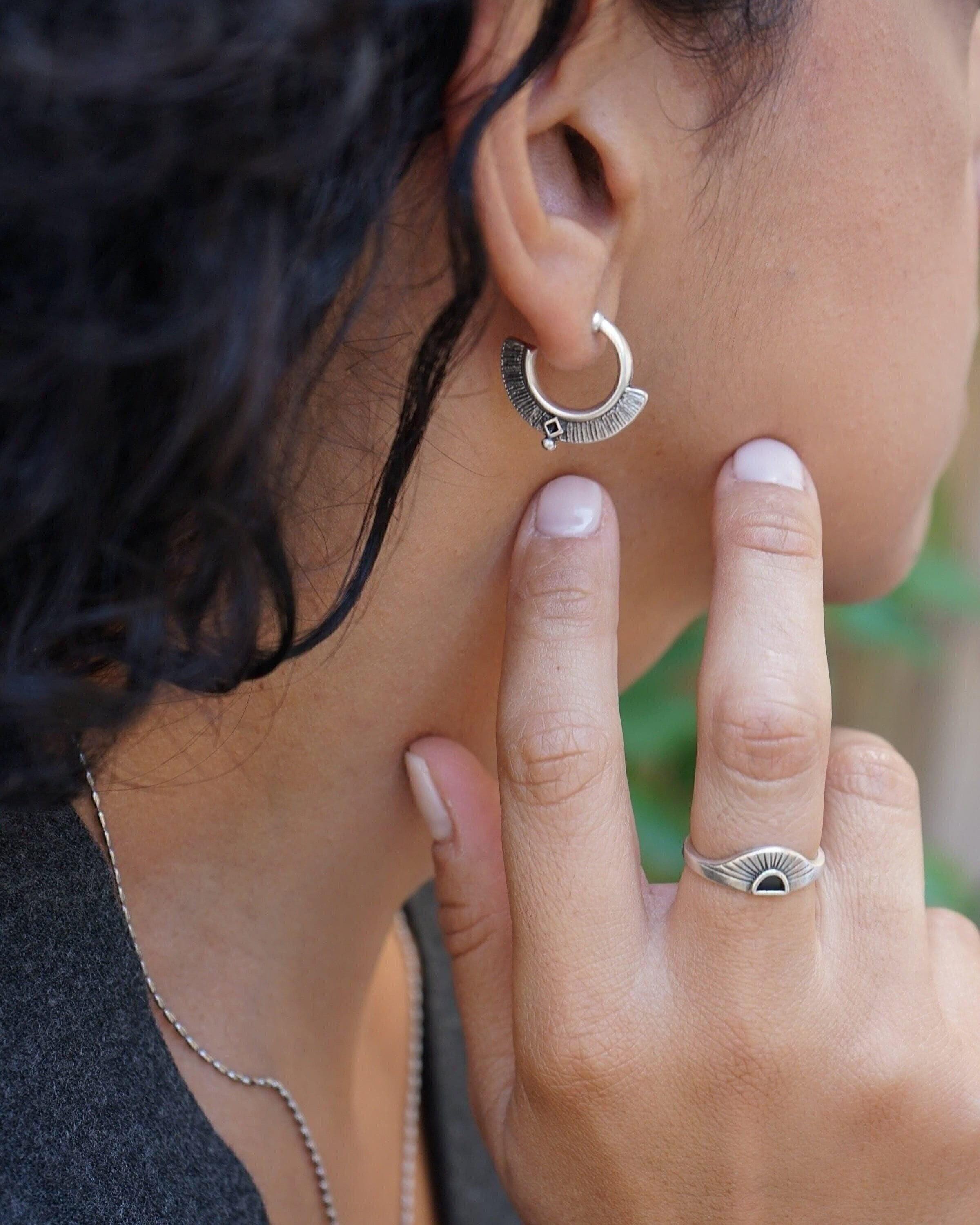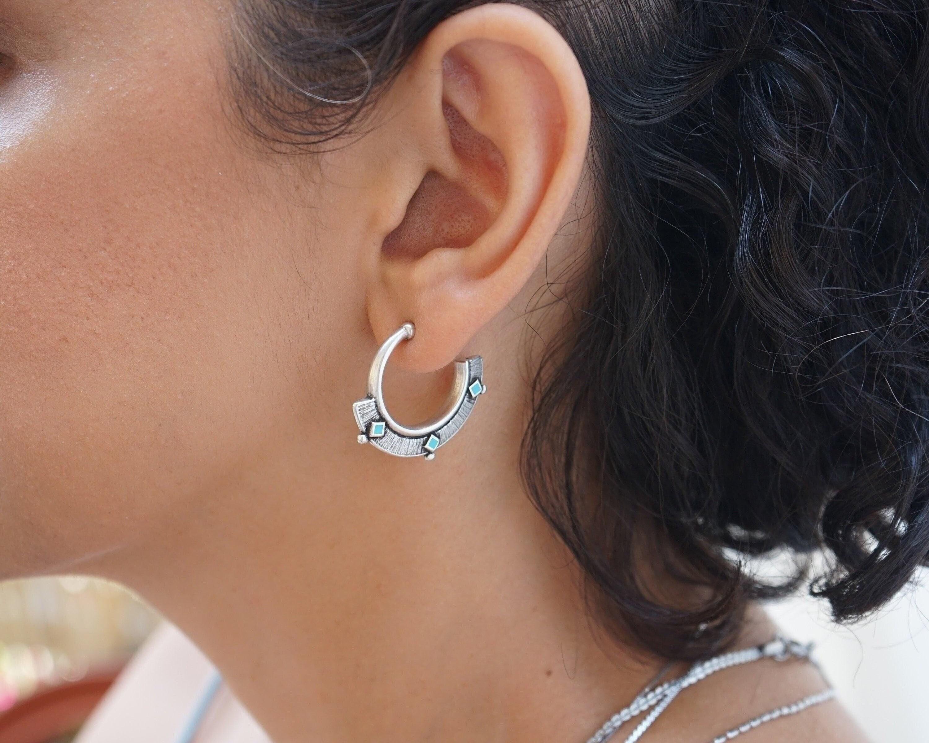 Ethnic Hoops with Black or Turquoise Enamel Triangles