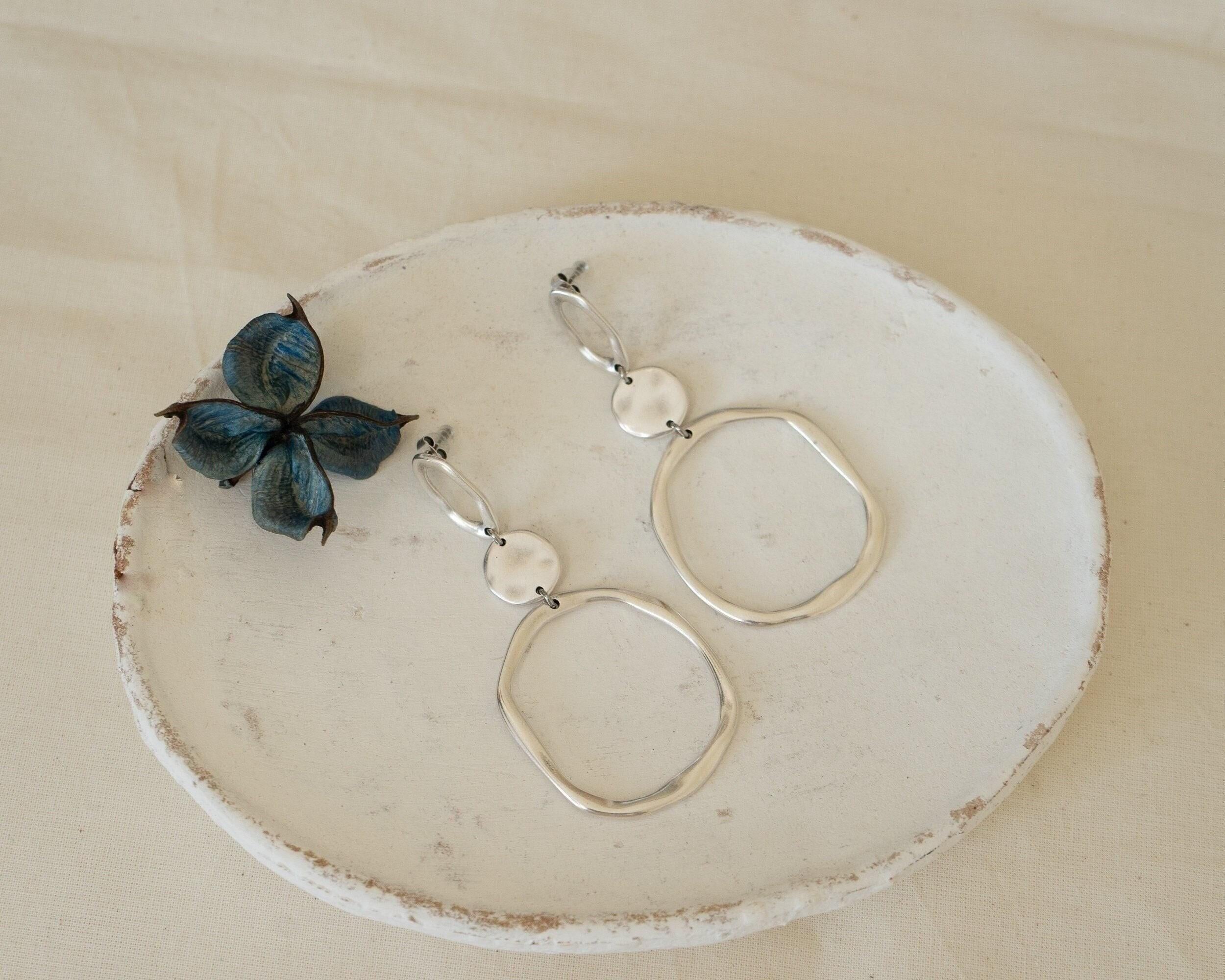 Discover these elegant large silver geometric circle dangle earrings, designed to elevate your style with their modern and sophisticated aesthetic. The striking circular design offers a contemporary look that effortlessly complements a variety of outfits, making them a versatile addition to your accessory collection.