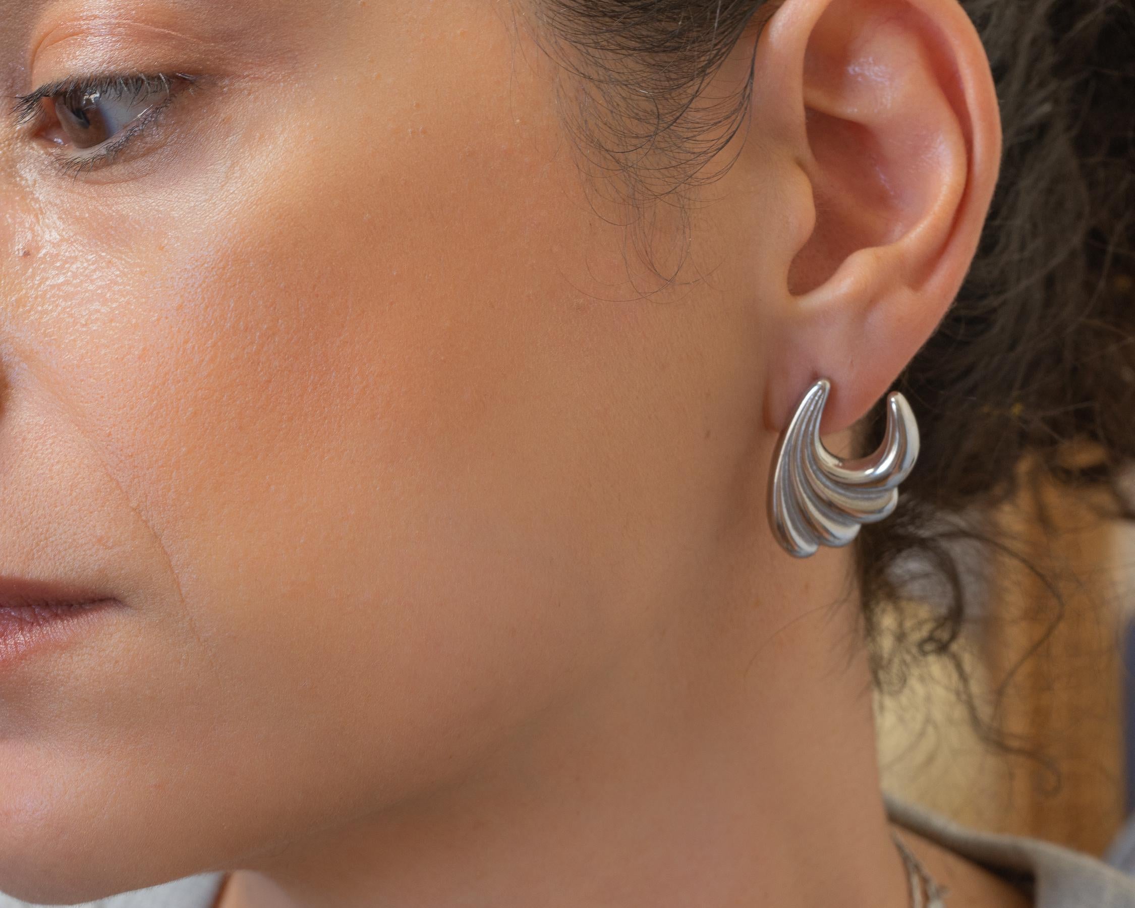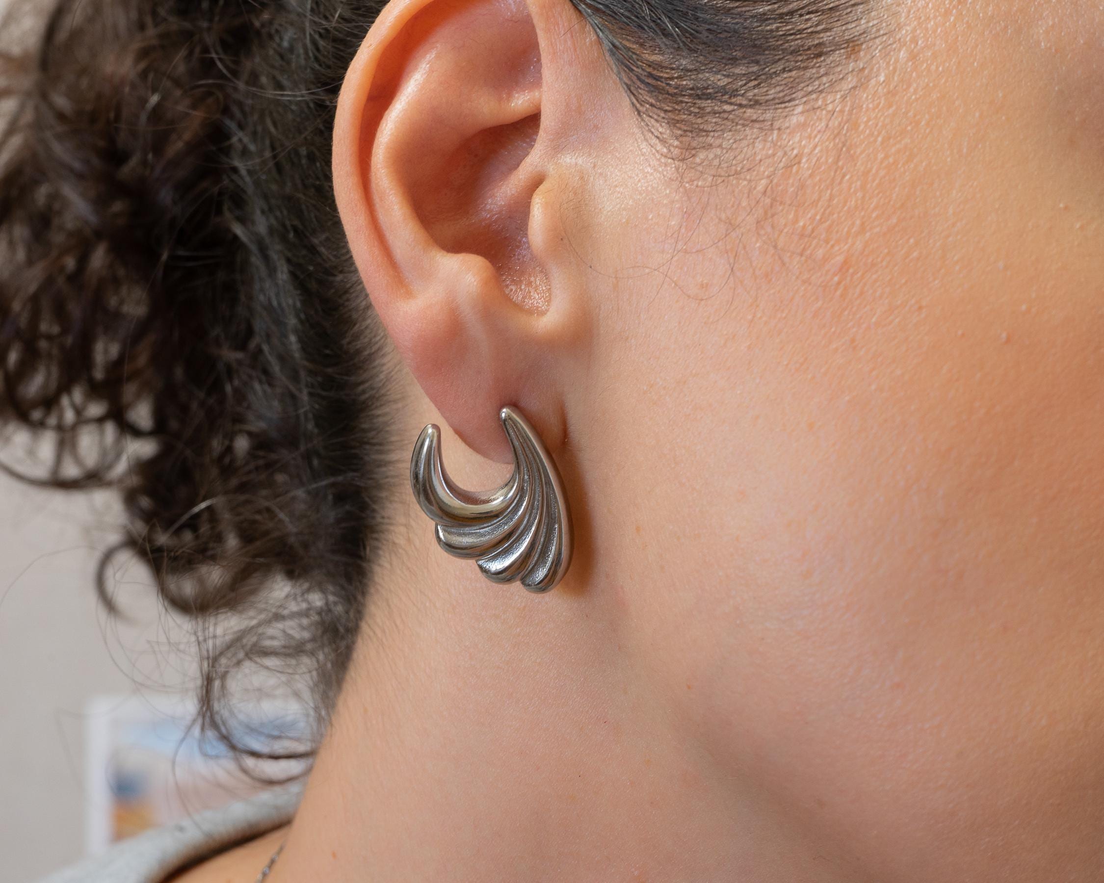 Introducing our Large Silver Wavy Earrings, the perfect addition to your jewelry collection. These statement earrings are designed to elevate both your everyday and special occasion outfits with their unique wavy shape. Crafted from durable stainless steel, they are thick and sturdy, ensuring they maintain their form without bending.