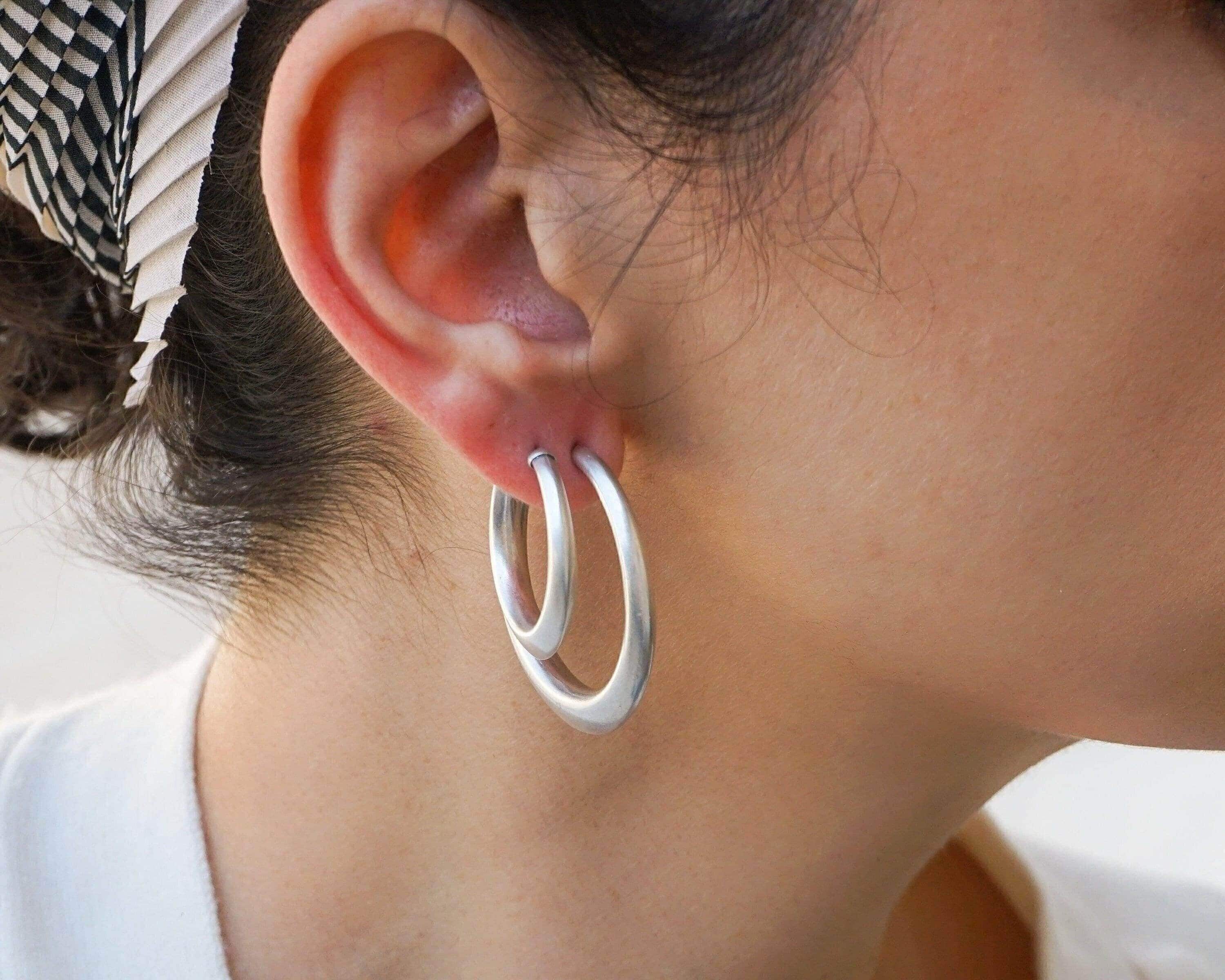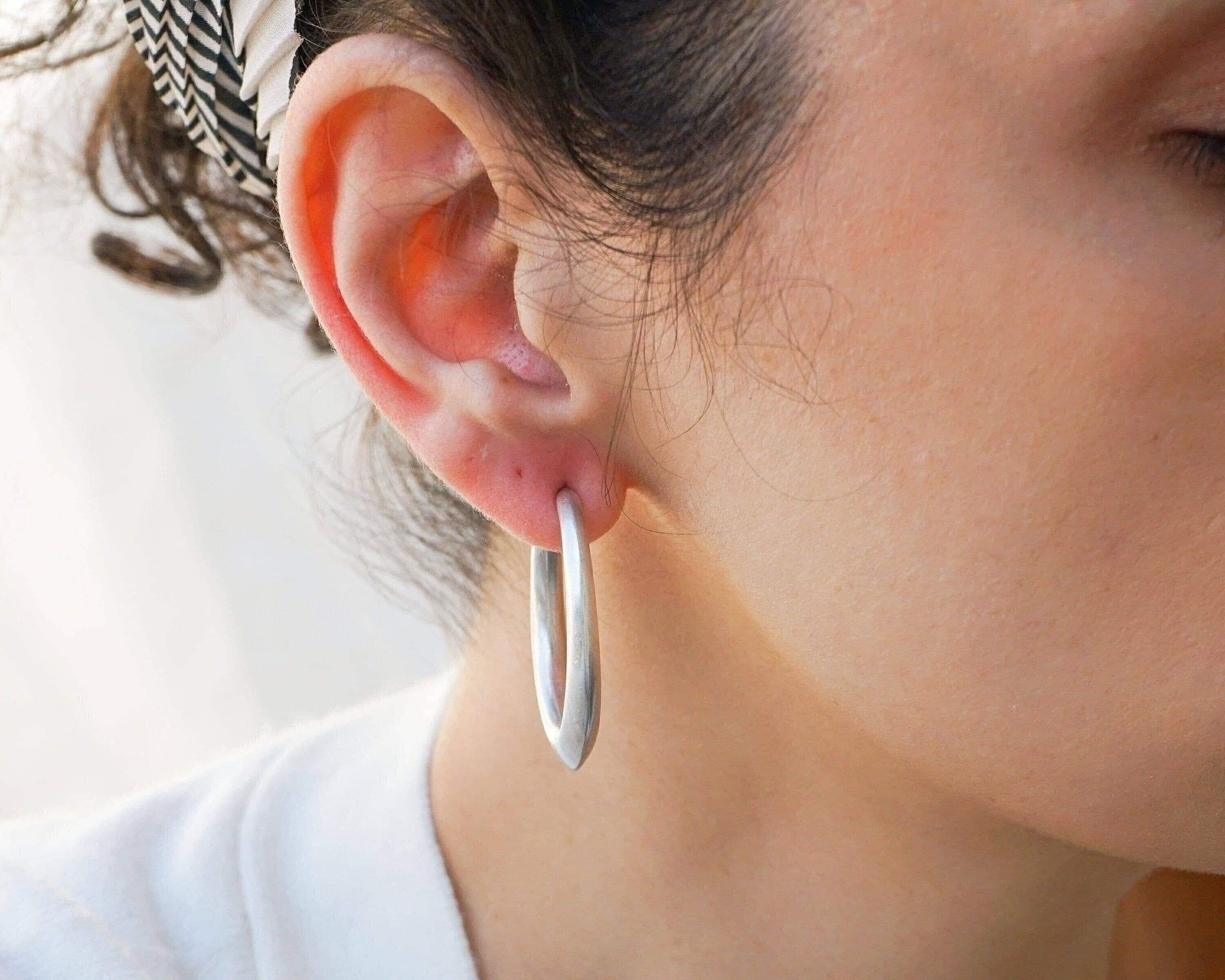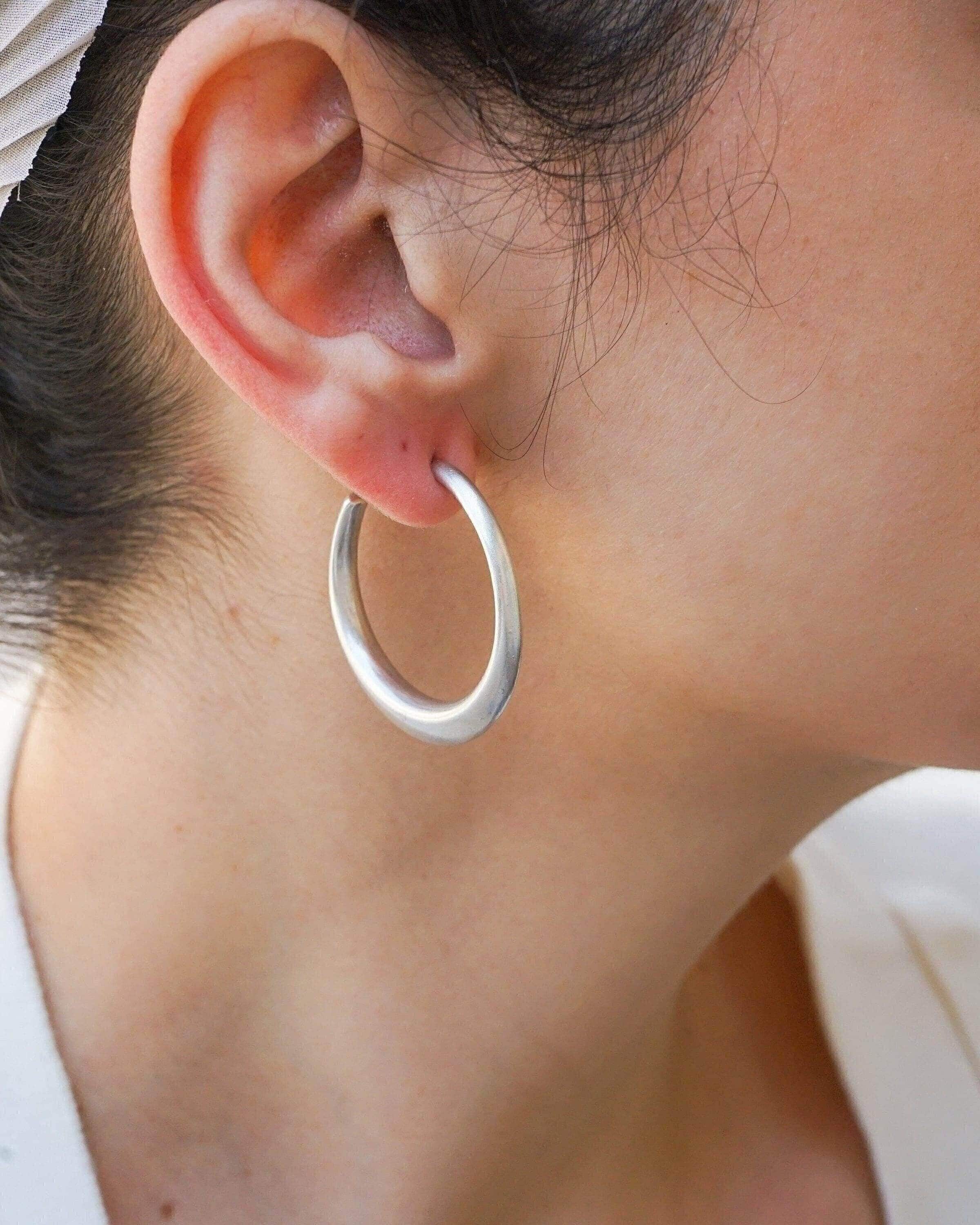 Discover these exquisite chunky silver-plated hoop earrings, designed with an organic, flowing shape that captures a unique yet versatile aesthetic. Effortless to wear, these lightweight earrings provide a comfortable fit without dragging down the earlobe, making them perfect for any occasion.