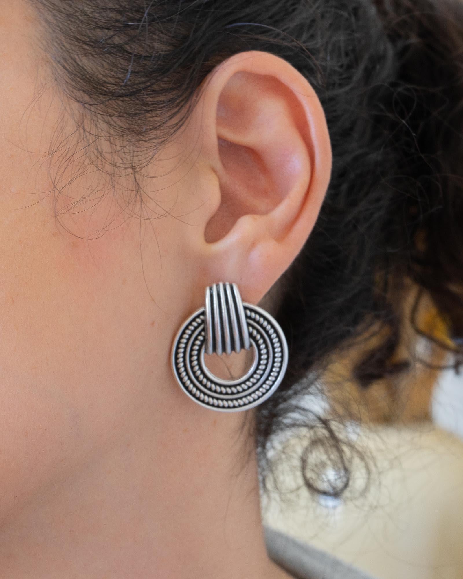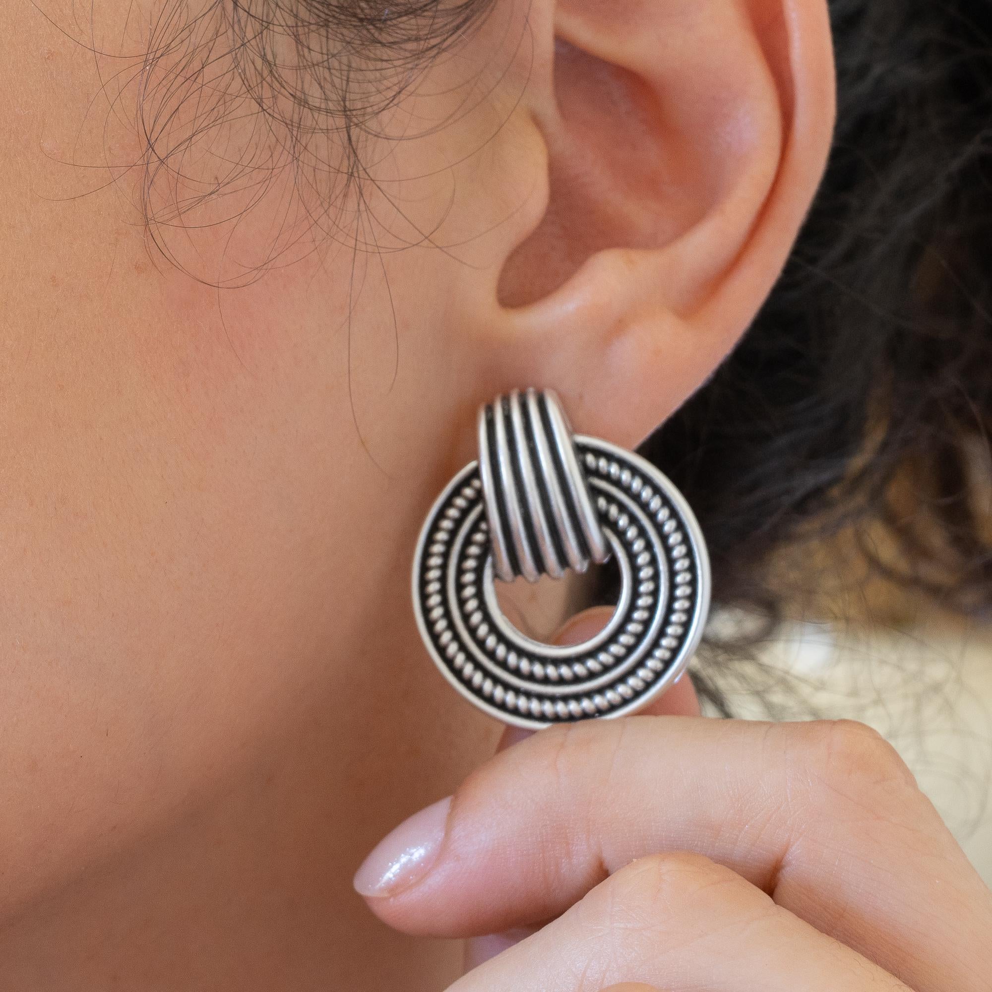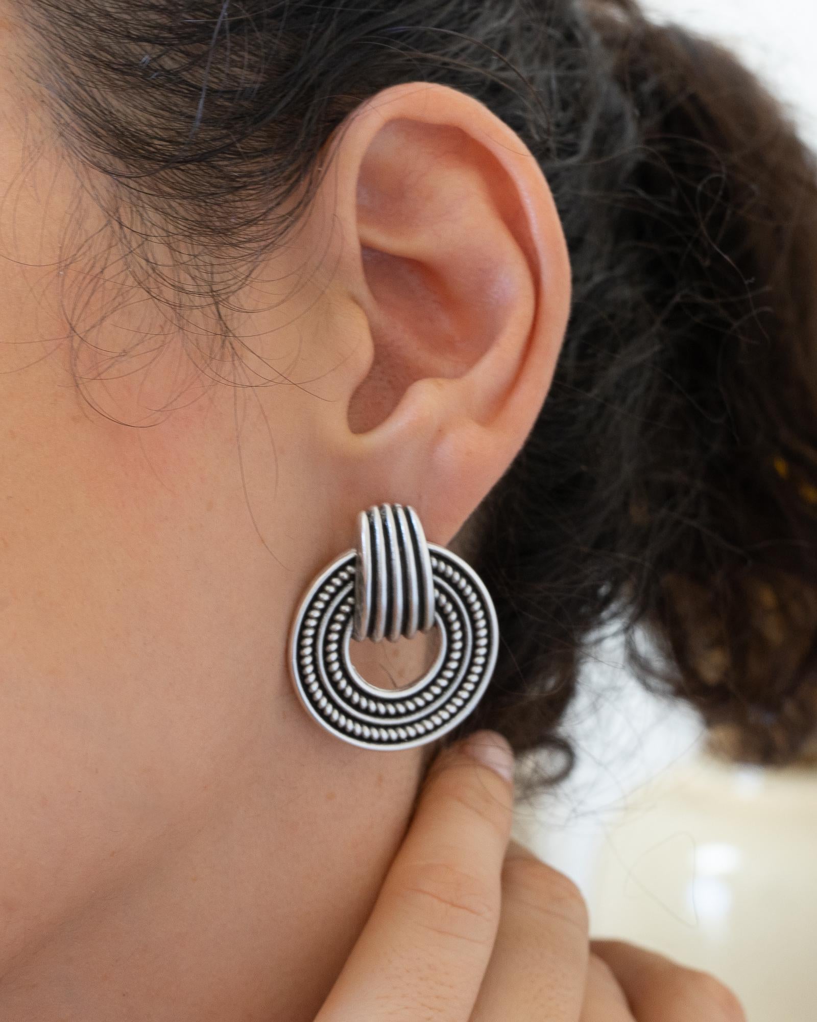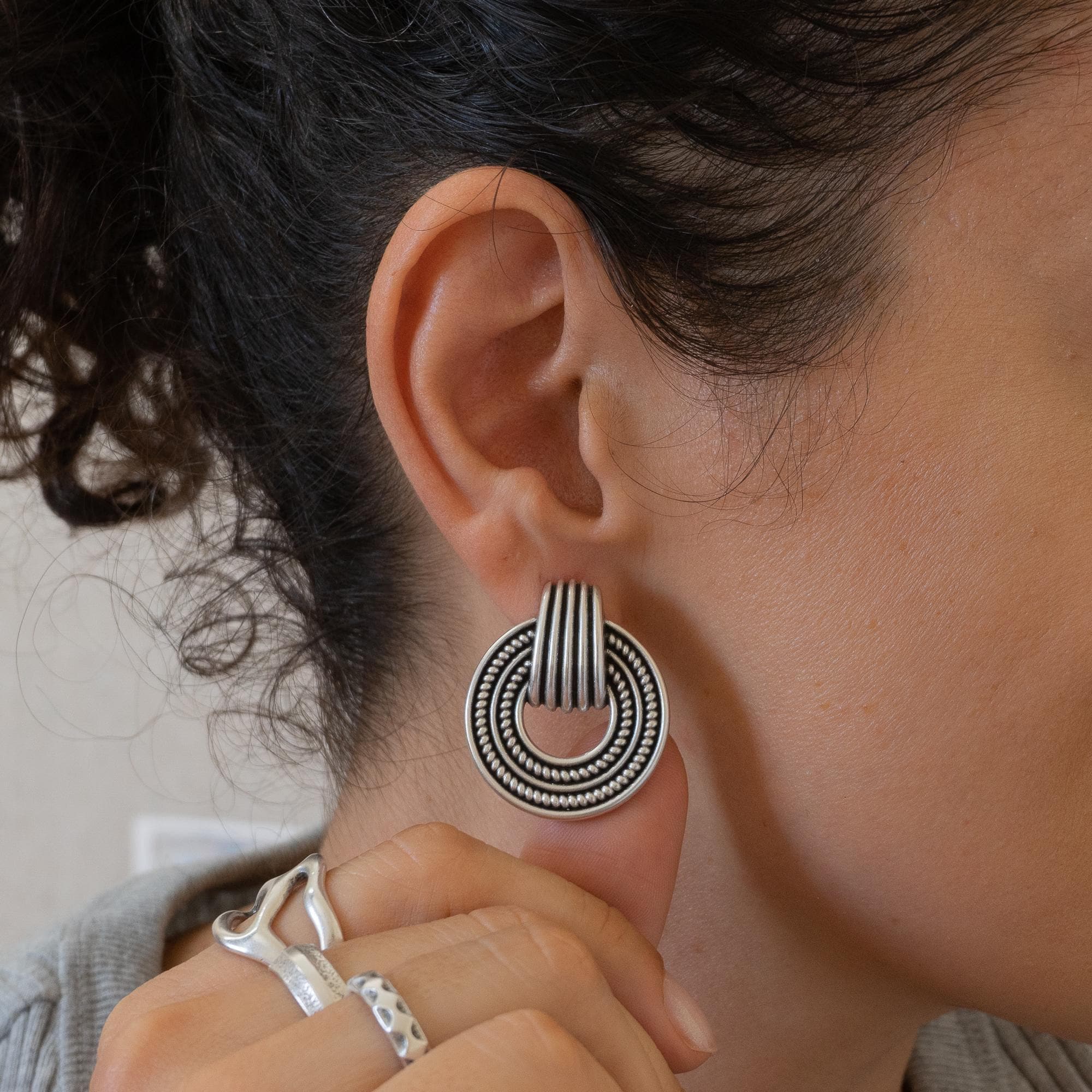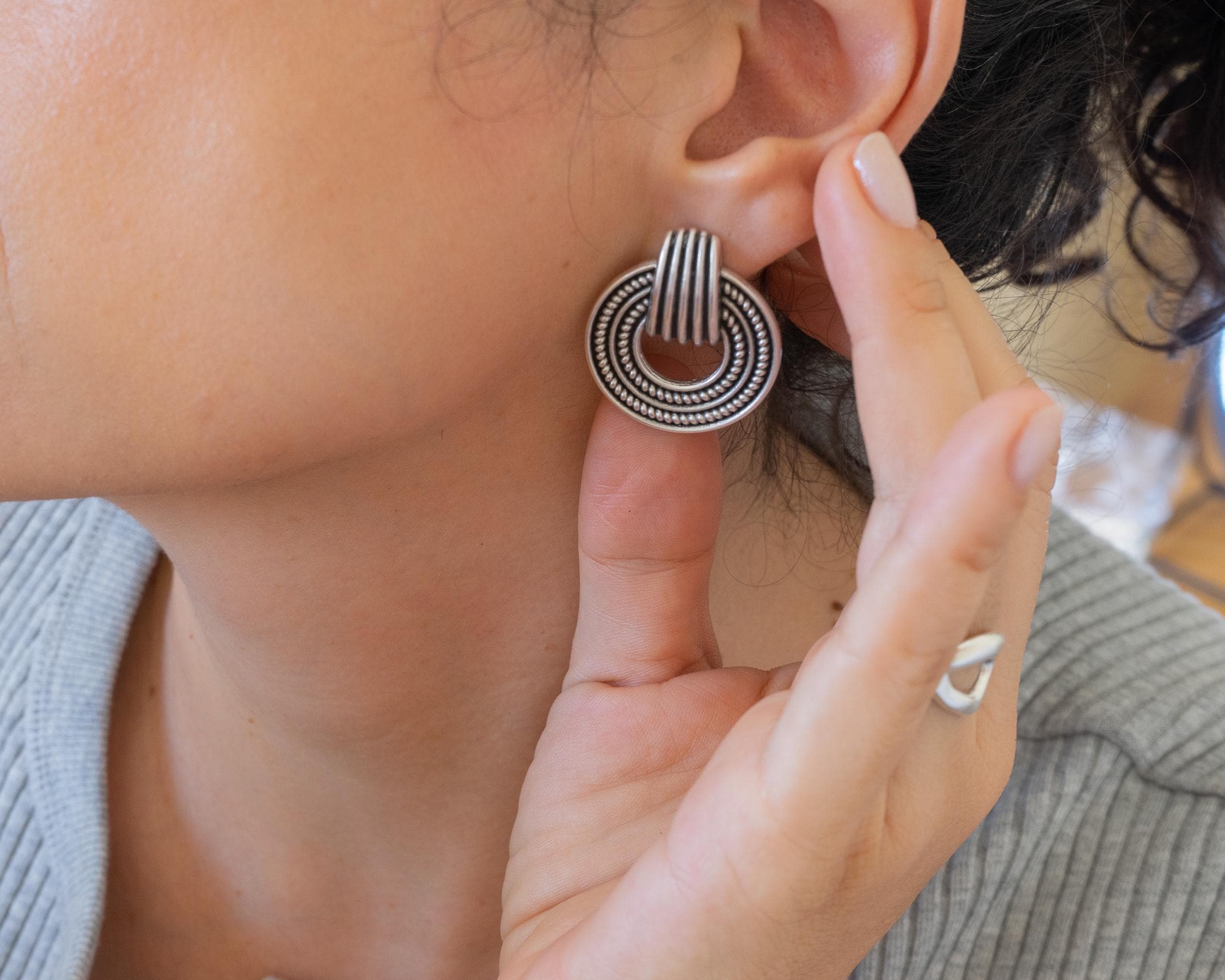 Introducing our exquisite silver-plated stud earrings, featuring a beautifully crafted thick twisted rope pattern. These large statement earrings are designed to elevate your everyday and special occasion outfits, adding a touch of sophistication to your style. Lightweight and comfortable, they won’t drag down your earlobes, making them effortless to wear throughout the day or night. The unique design ensures versatility, allowing you to pair them with a variety of looks.
