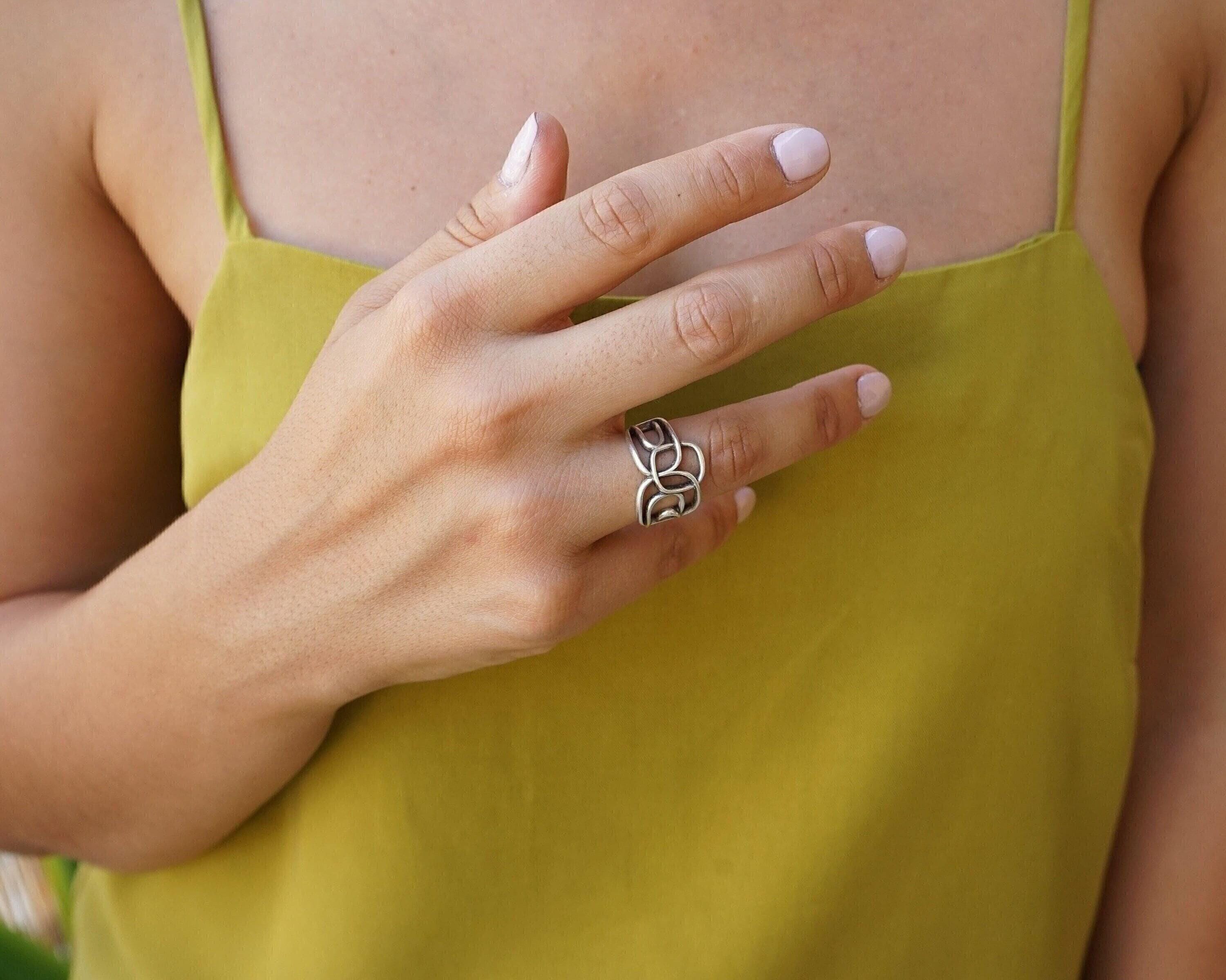 This ring is more than just an accessory; it's a must-have piece that elevates any ensemble. Add this timeless and artistic design to your jewelry collection today.
