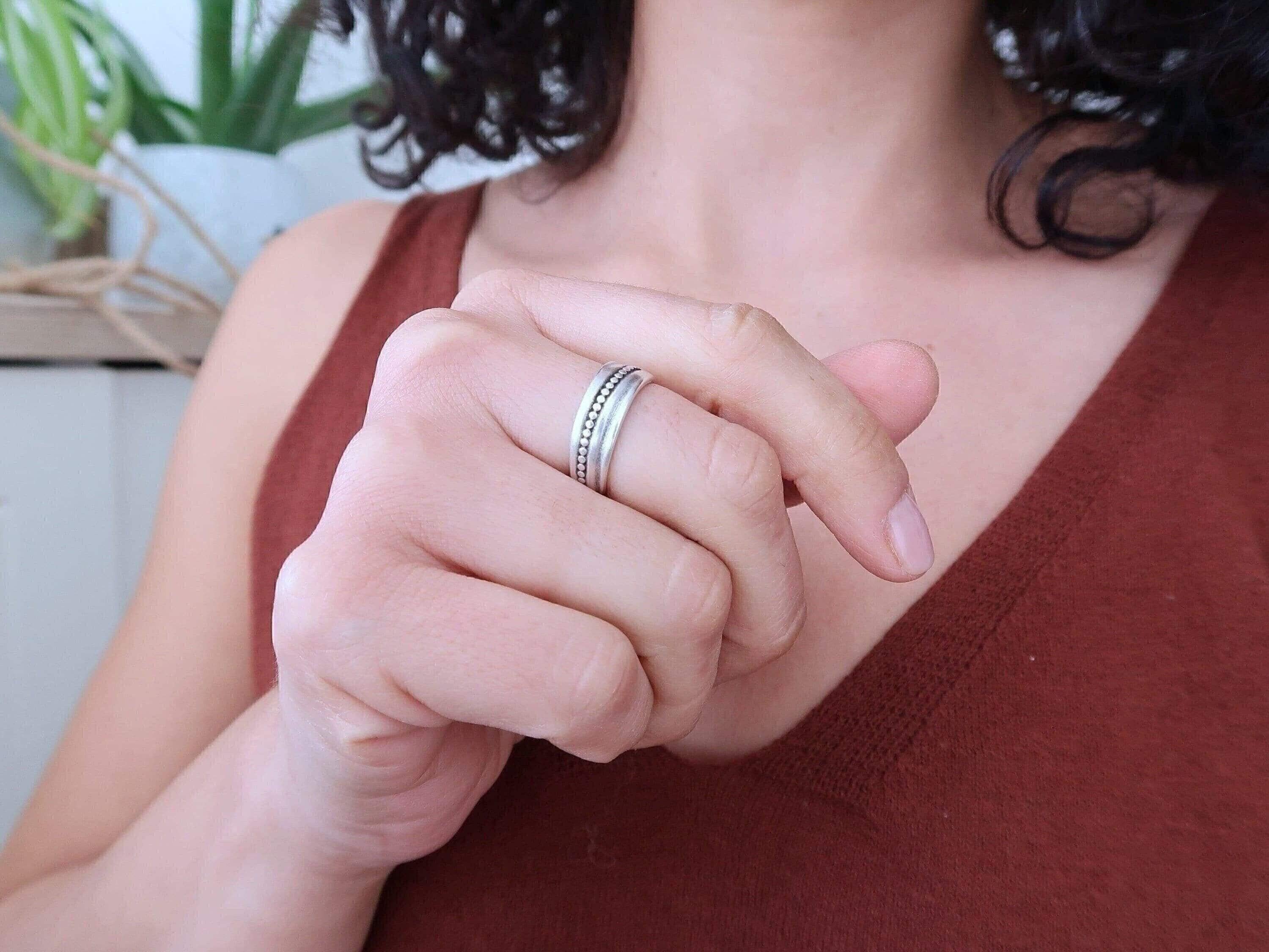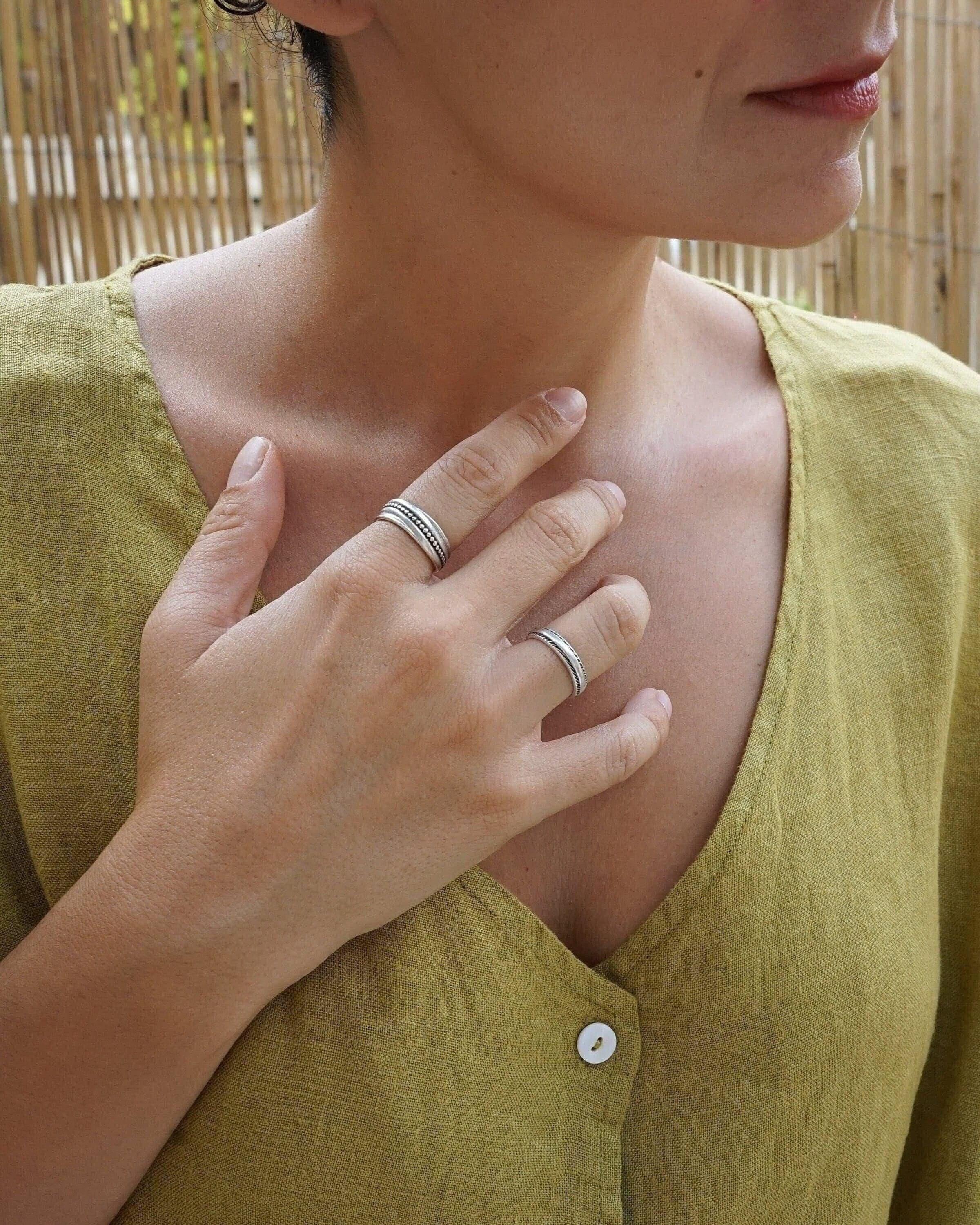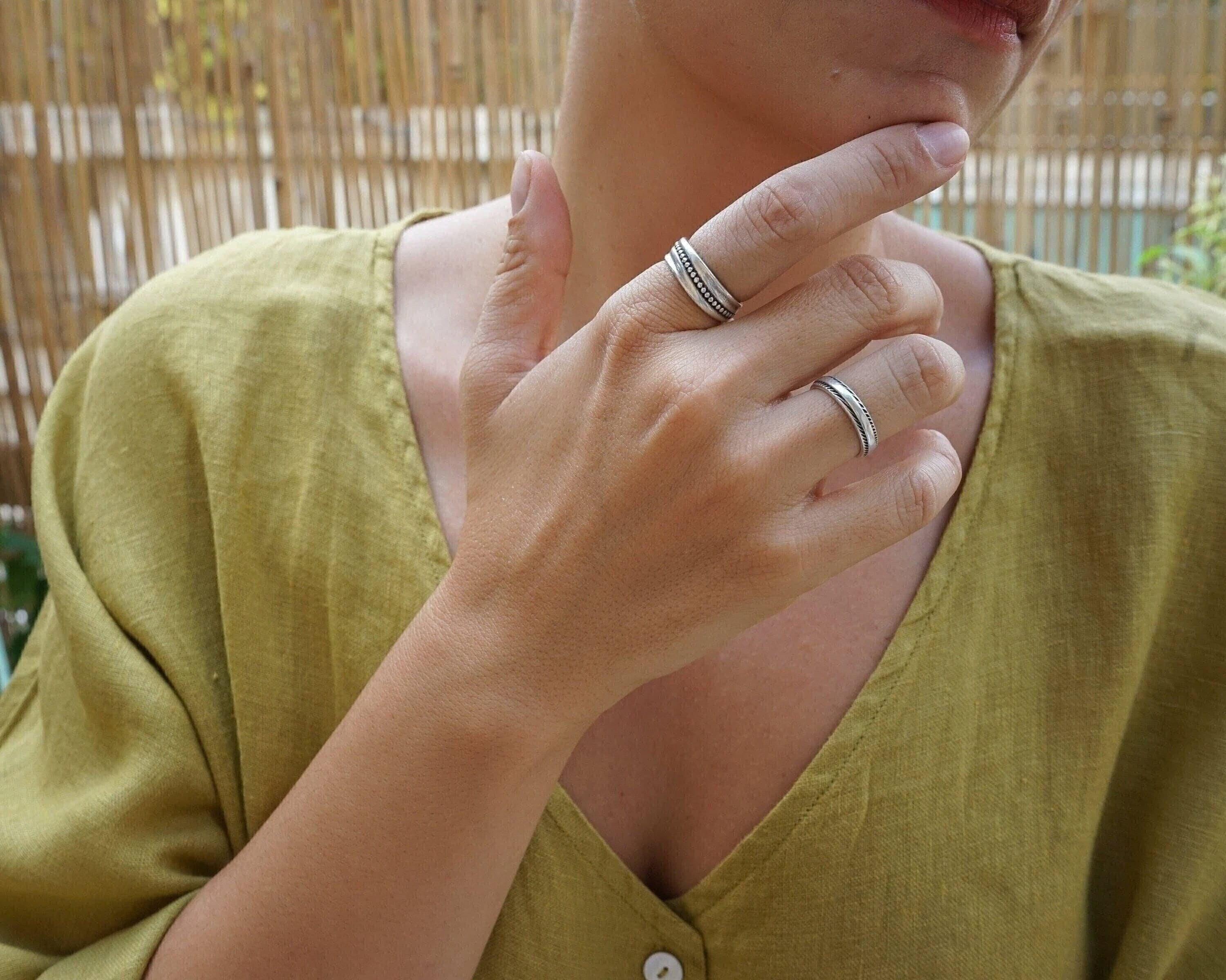 Discover the beauty of this silver-plated band featuring a wavy dotted line design. This versatile ring can be comfortably worn on your index, middle, or ring finger, making it a perfect addition to any jewelry collection.