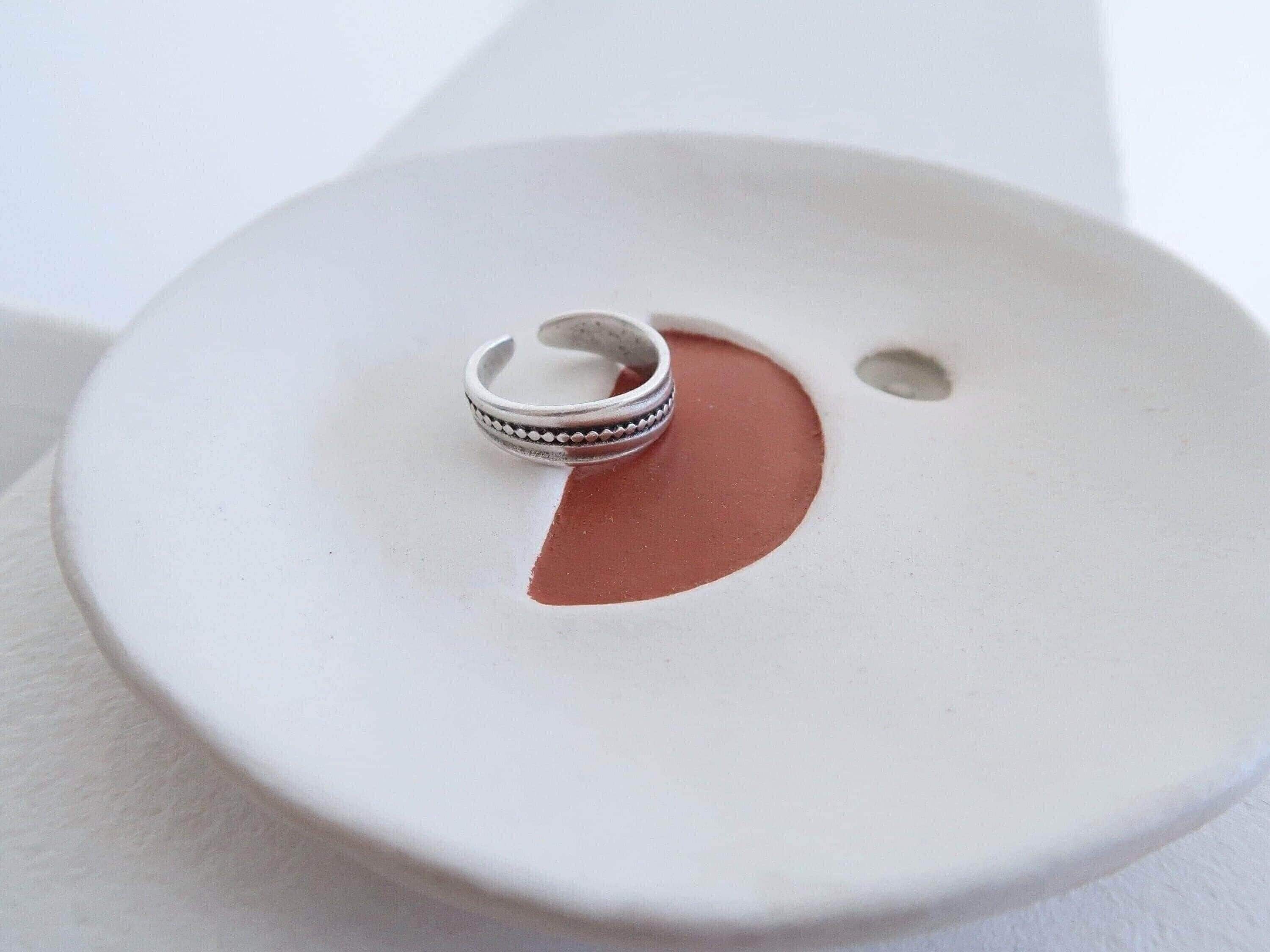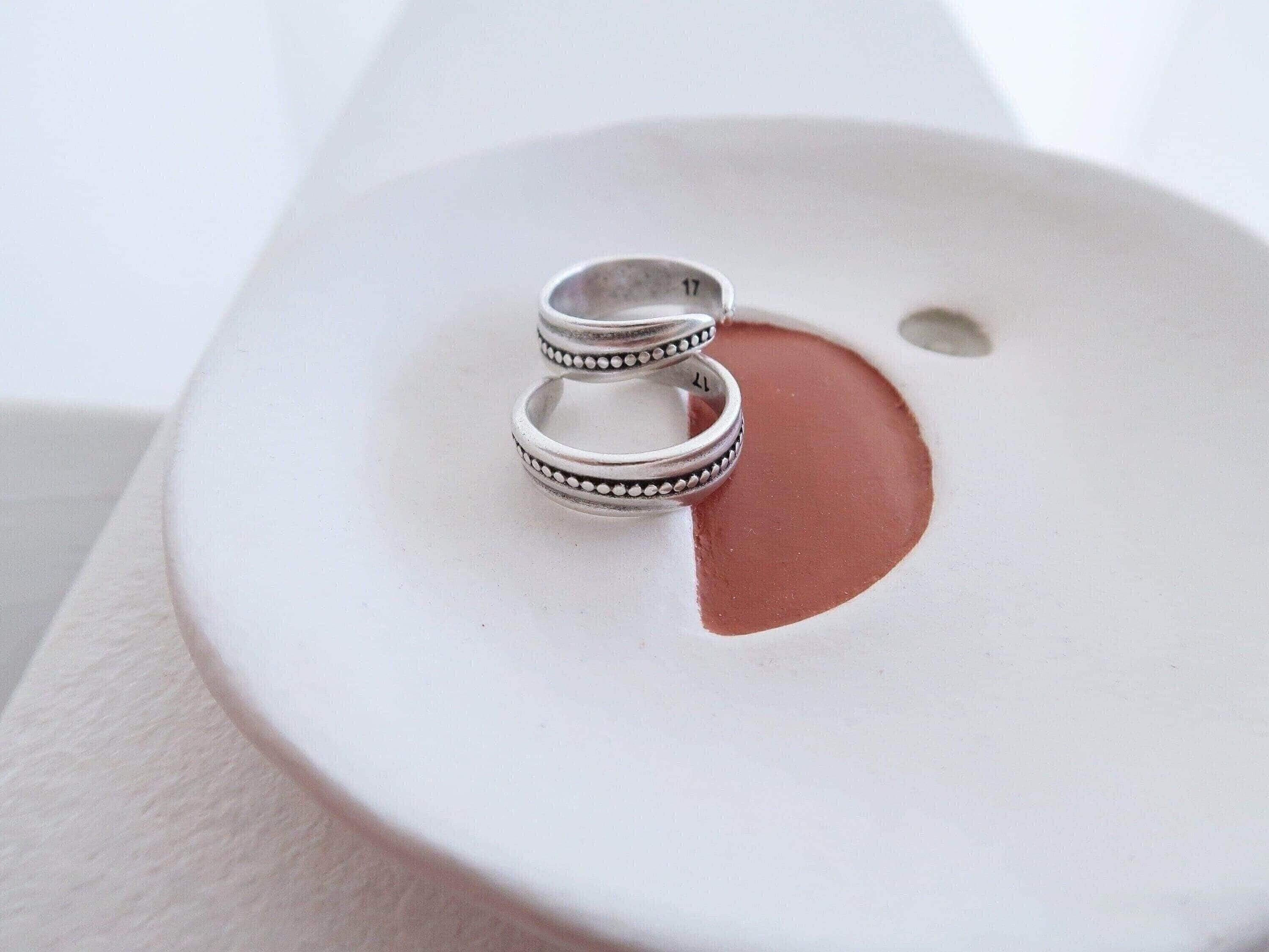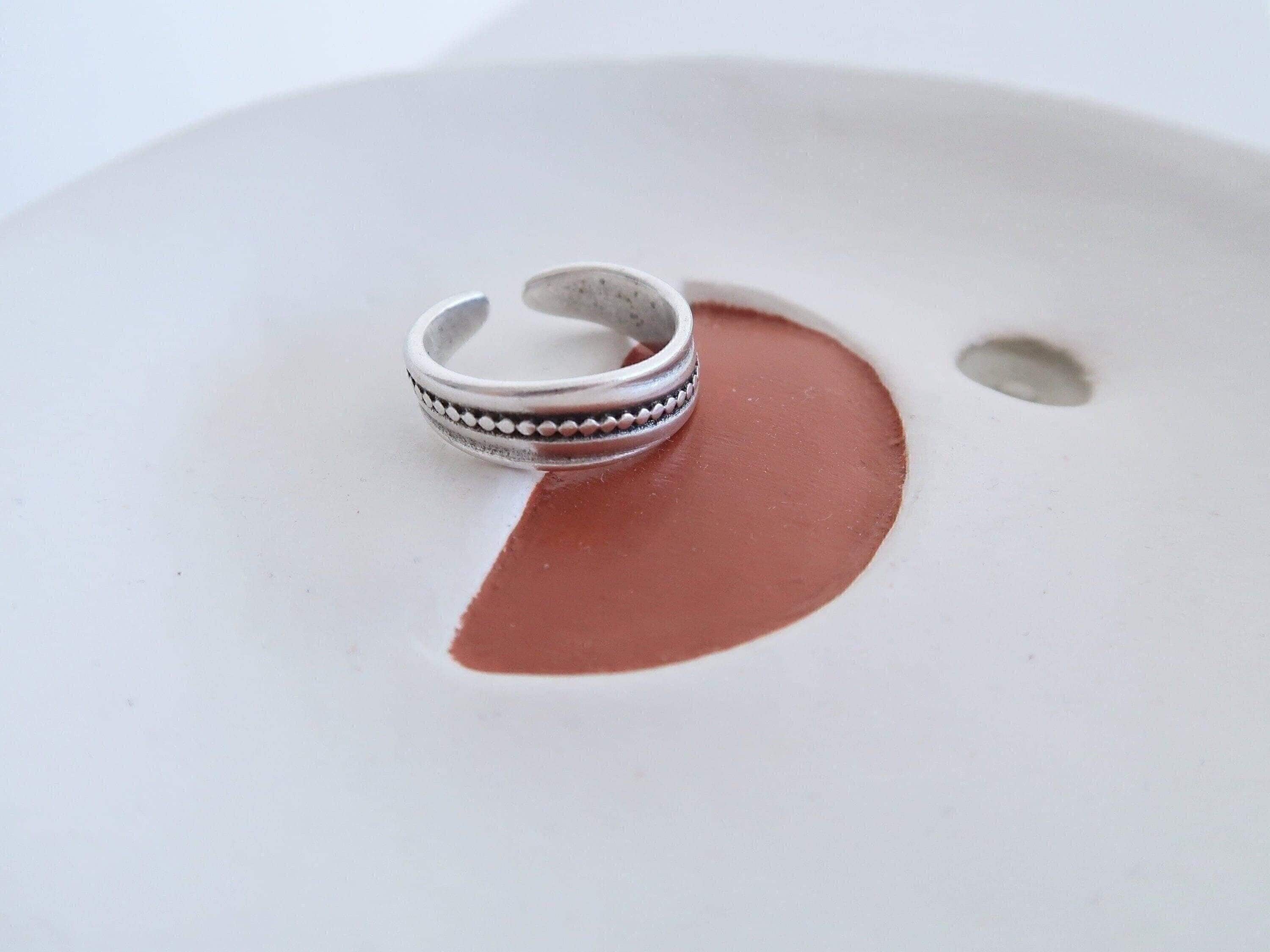 Discover the beauty of this silver-plated band featuring a wavy dotted line design. This versatile ring can be comfortably worn on your index, middle, or ring finger, making it a perfect addition to any jewelry collection.
