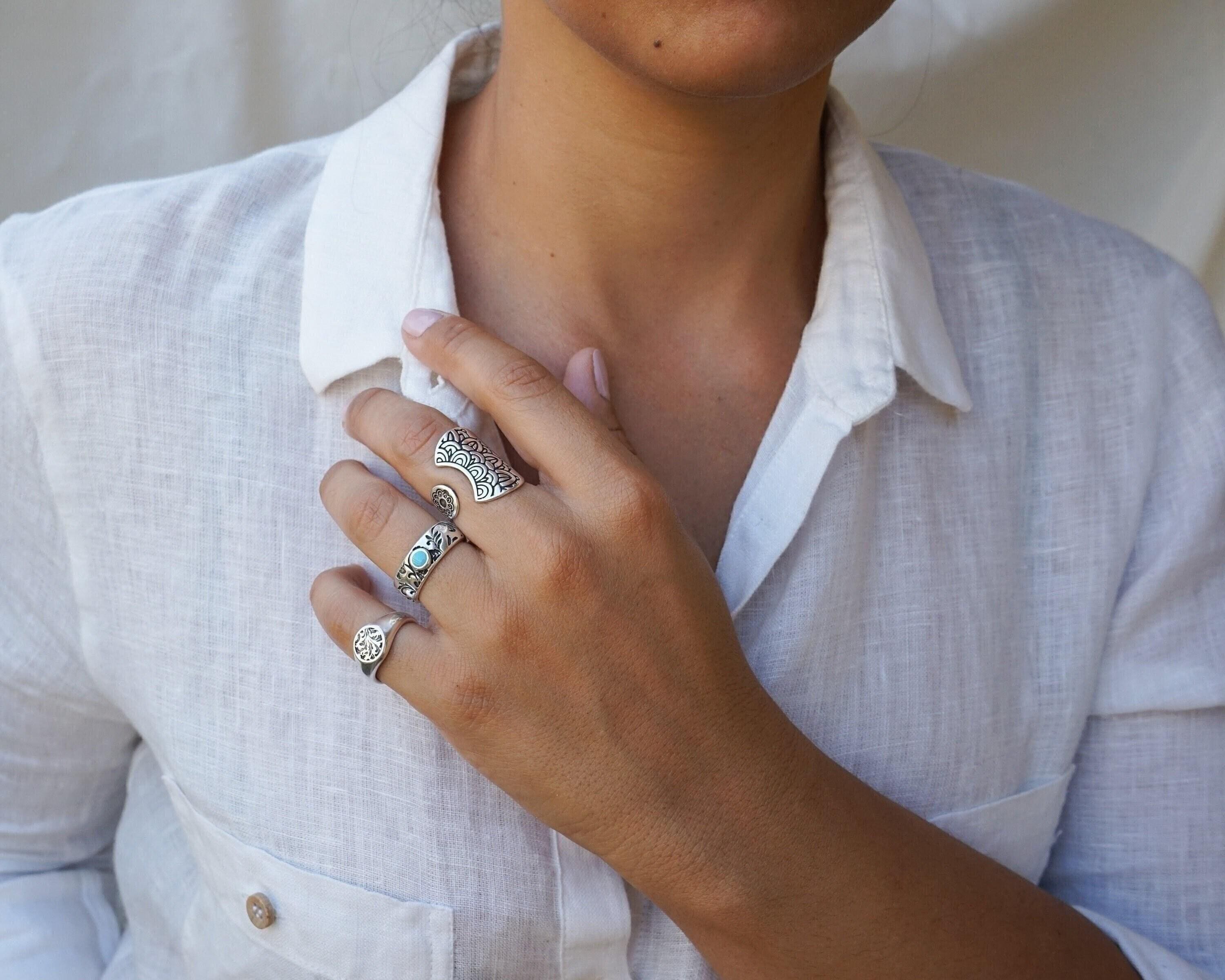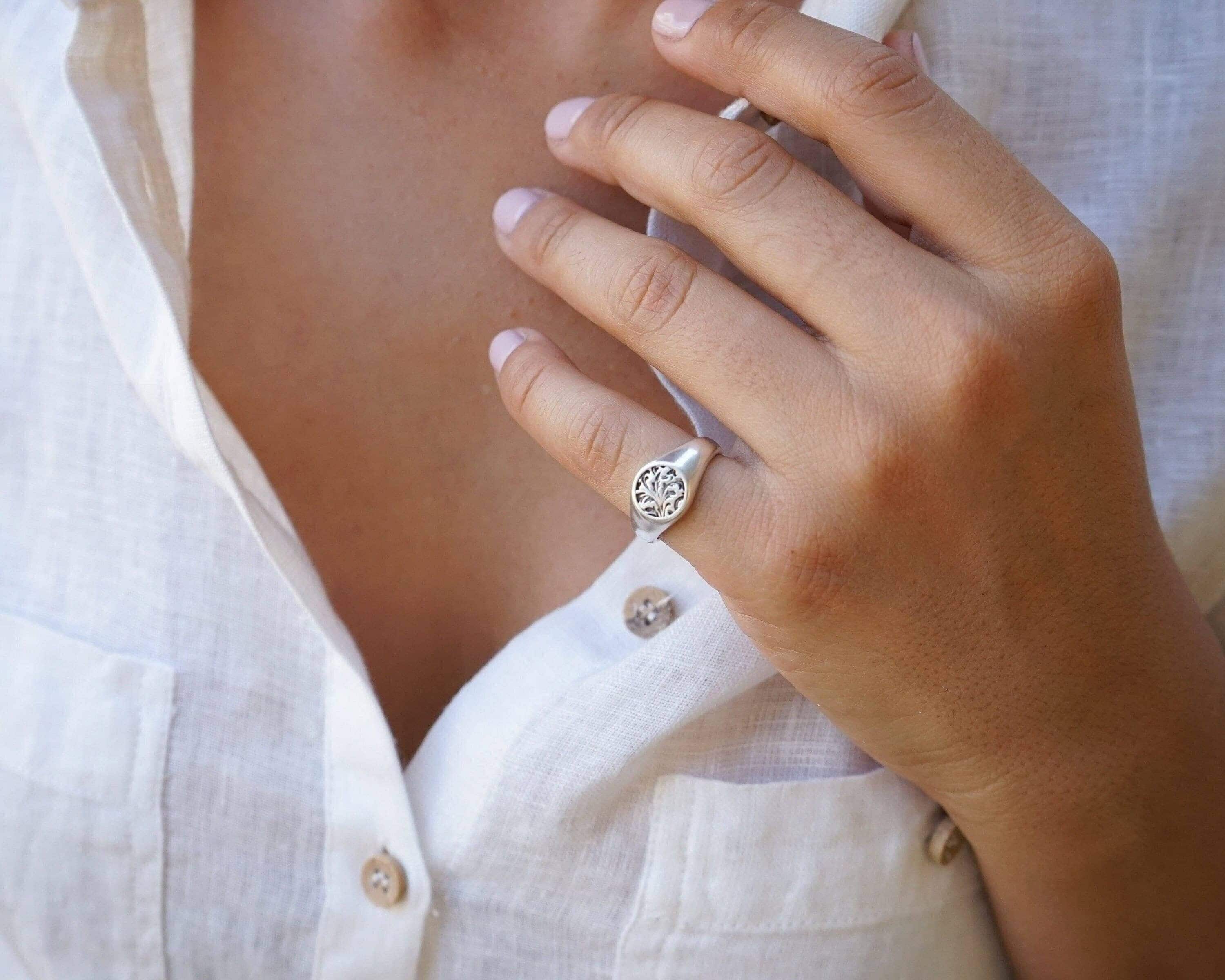 Embrace the natural beauty and unique charm of this floral signet ring, a perfect accessory for enhancing your everyday ensemble.