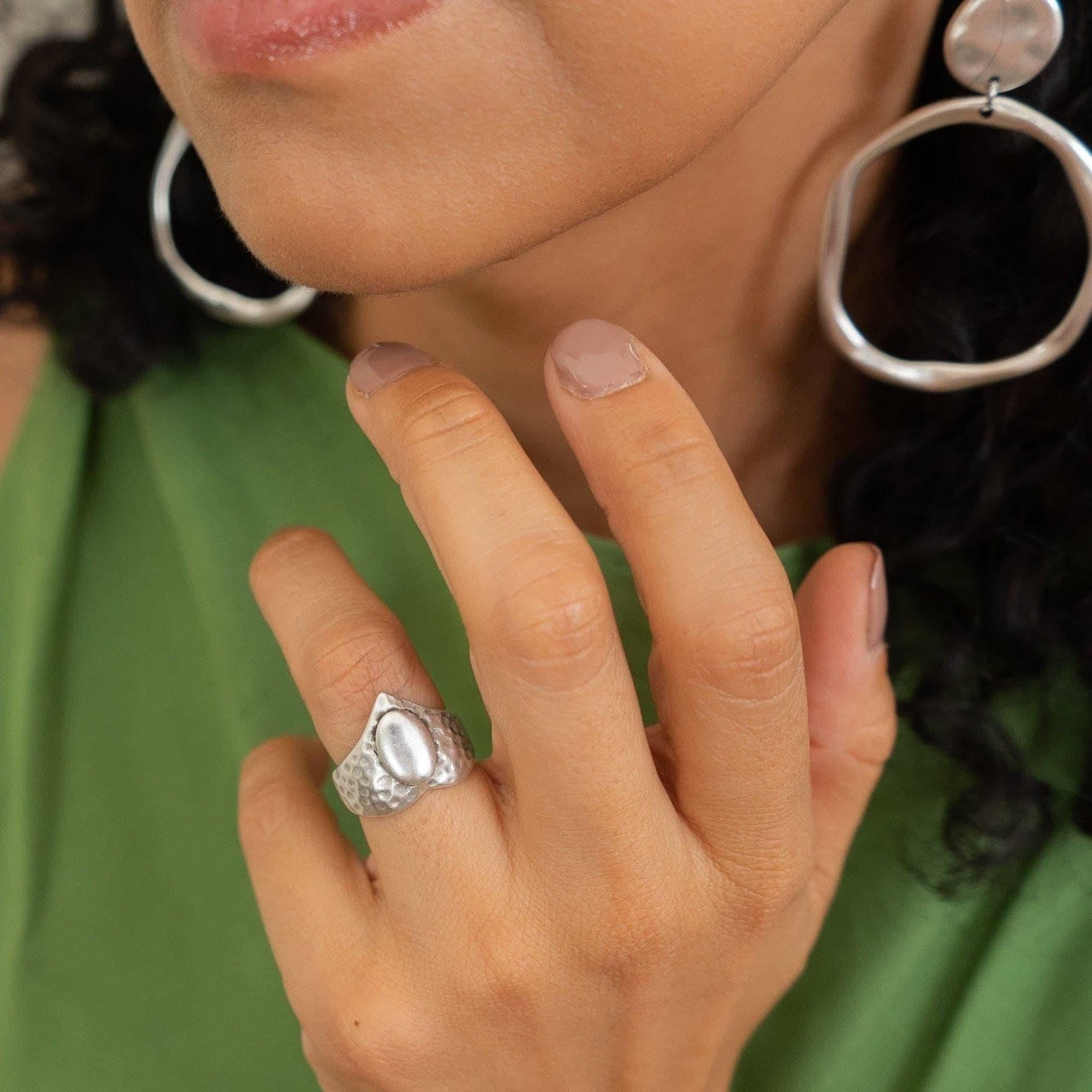Add some vintage flair to your look with this Big Hammered Silver Ethnic Ring! It's got that cool, antique vibe that'll jazz up your outfit, whether you're rocking it on your index, middle, or ring finger. Made from tough silver-plated zamak, this ring is a total must-have for your jewelry collection. It goes great with everything, from laid-back jeans to that fancy dress you love. </p><br><p>Just a heads-up: take care of it and try not to mess with the size too much to keep it in top shape.