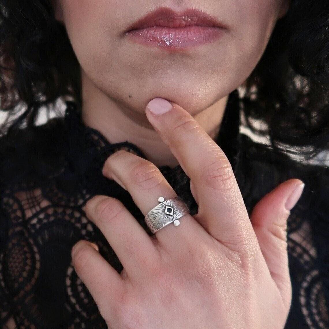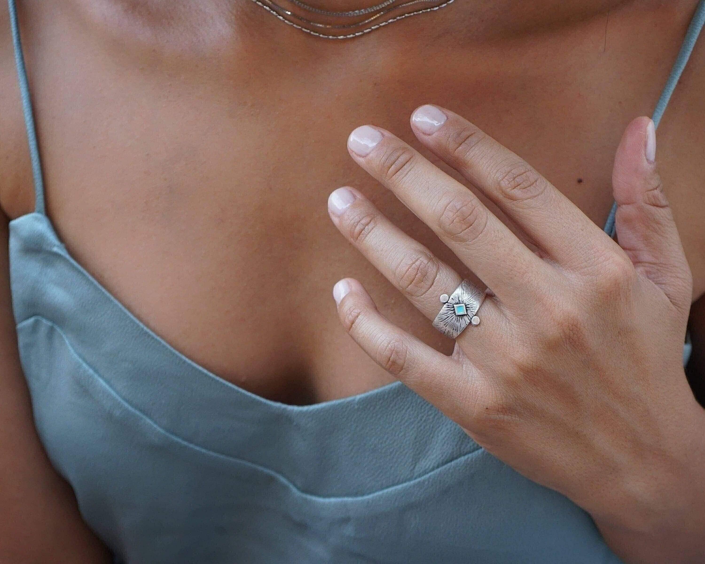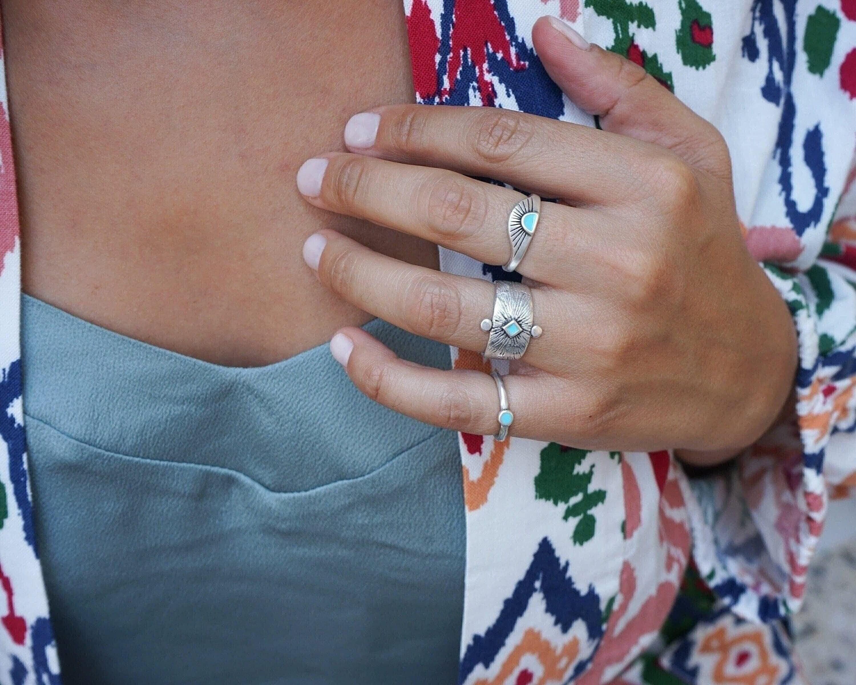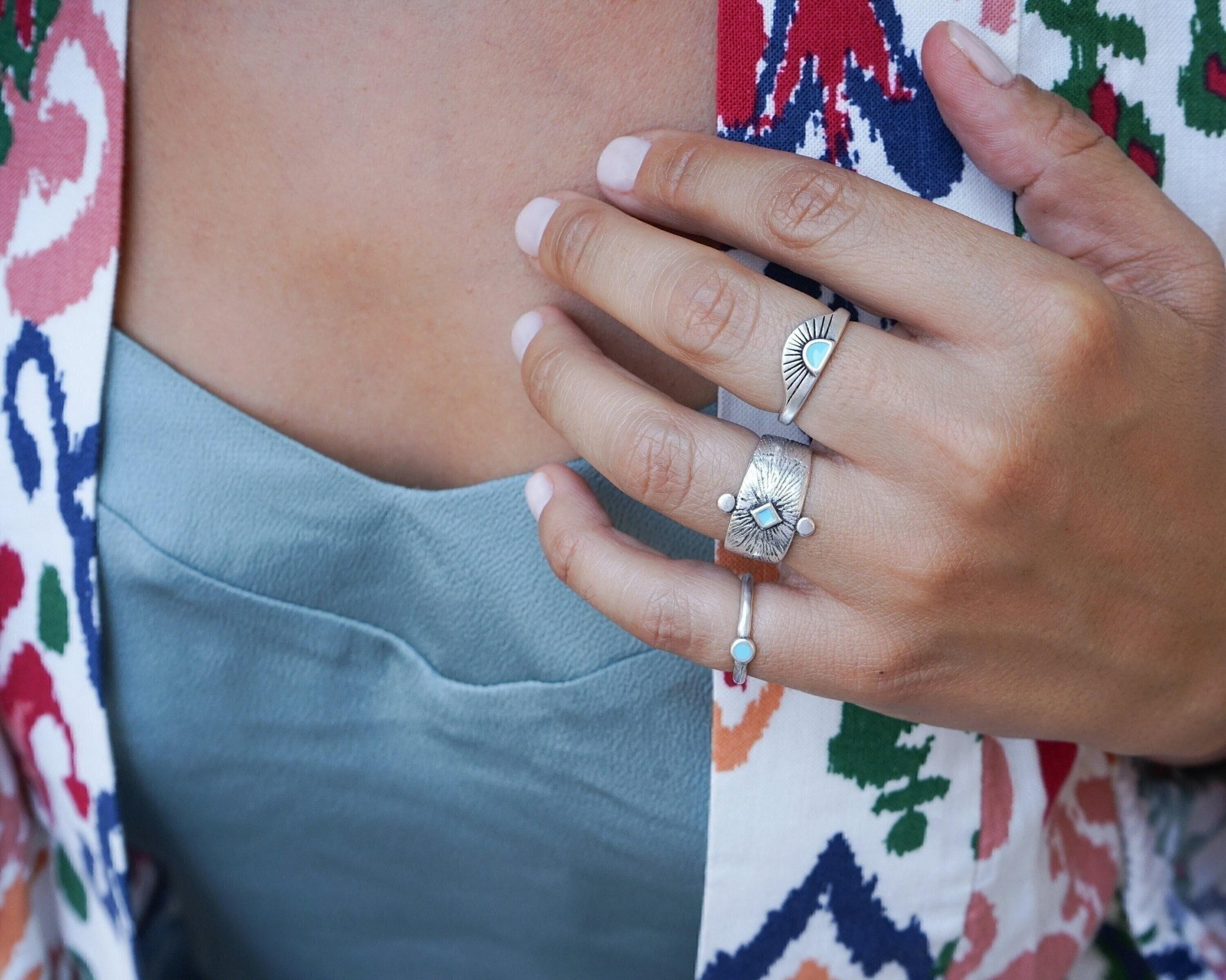 Step up your accessory game with this stunning Silver Ethnic Rhombus Ring! It's the perfect piece to add a touch of ethnic, bohemian flair to any outfit. With its sleek and simple design, this ring makes a bold statement all on its own. What's really fun is how versatile it is; you can wear it on your index, middle, or ring finger, depending on your mood. Love mixing it up? Stack it with your favorite rings for a chic layered look!