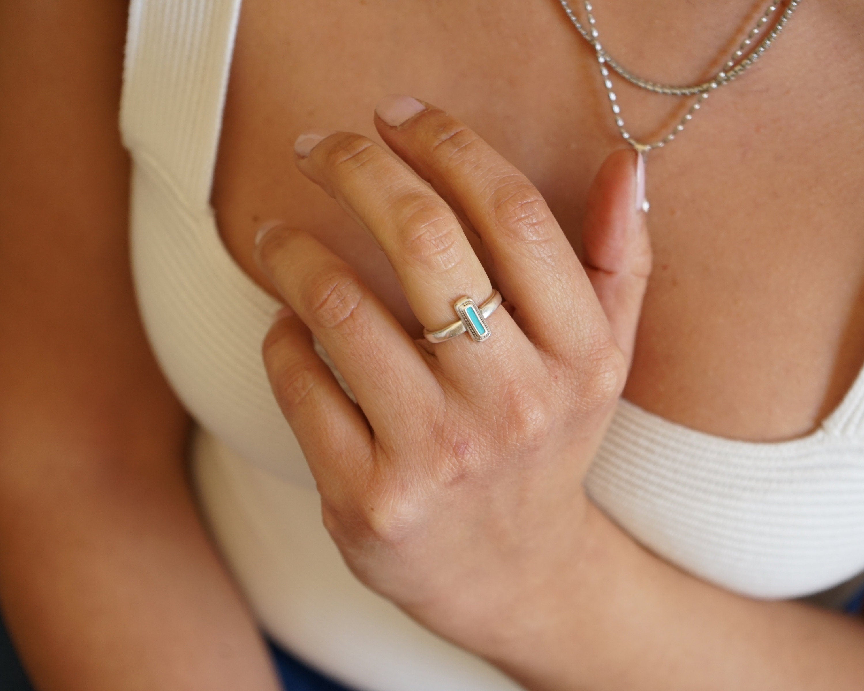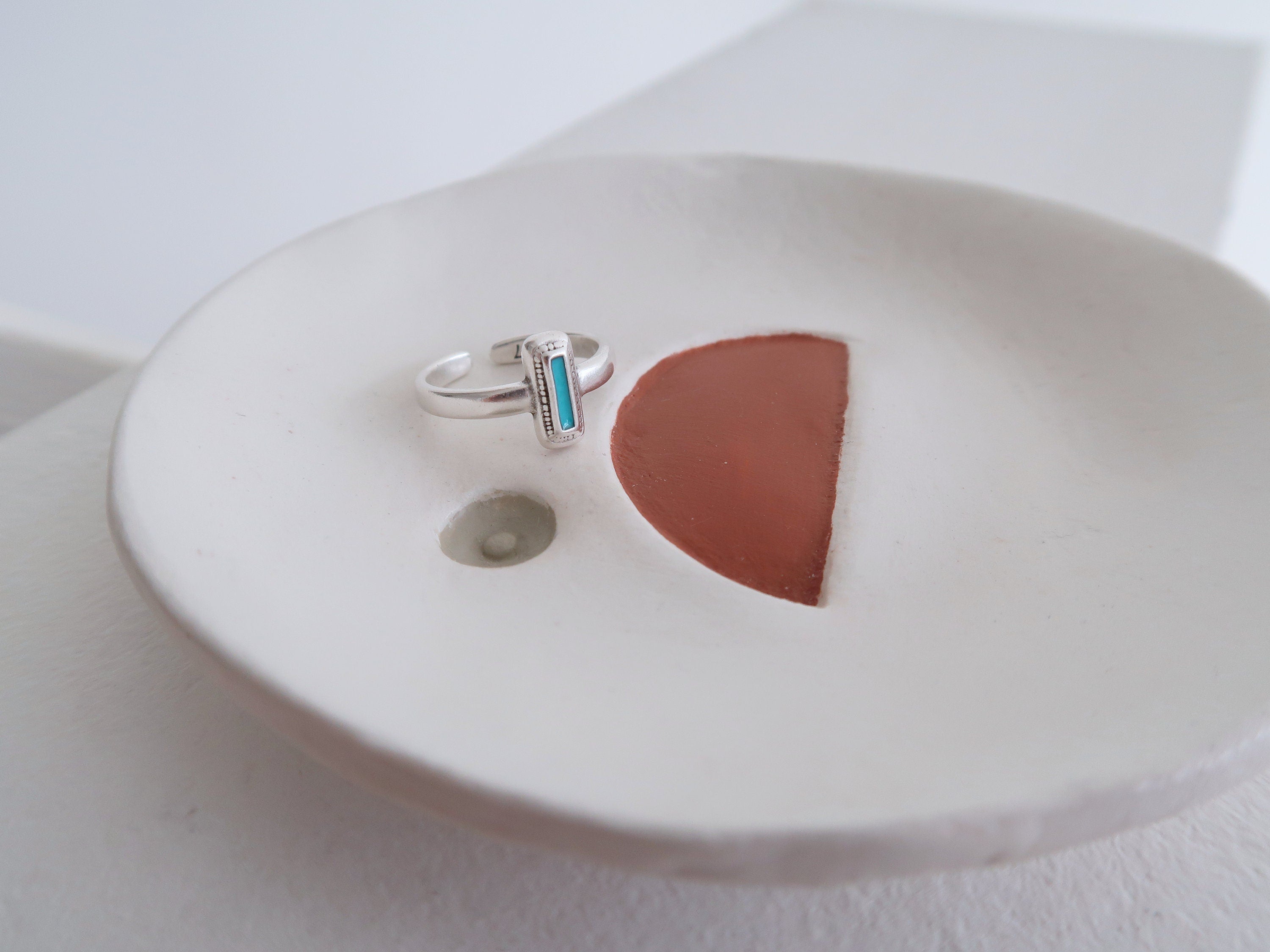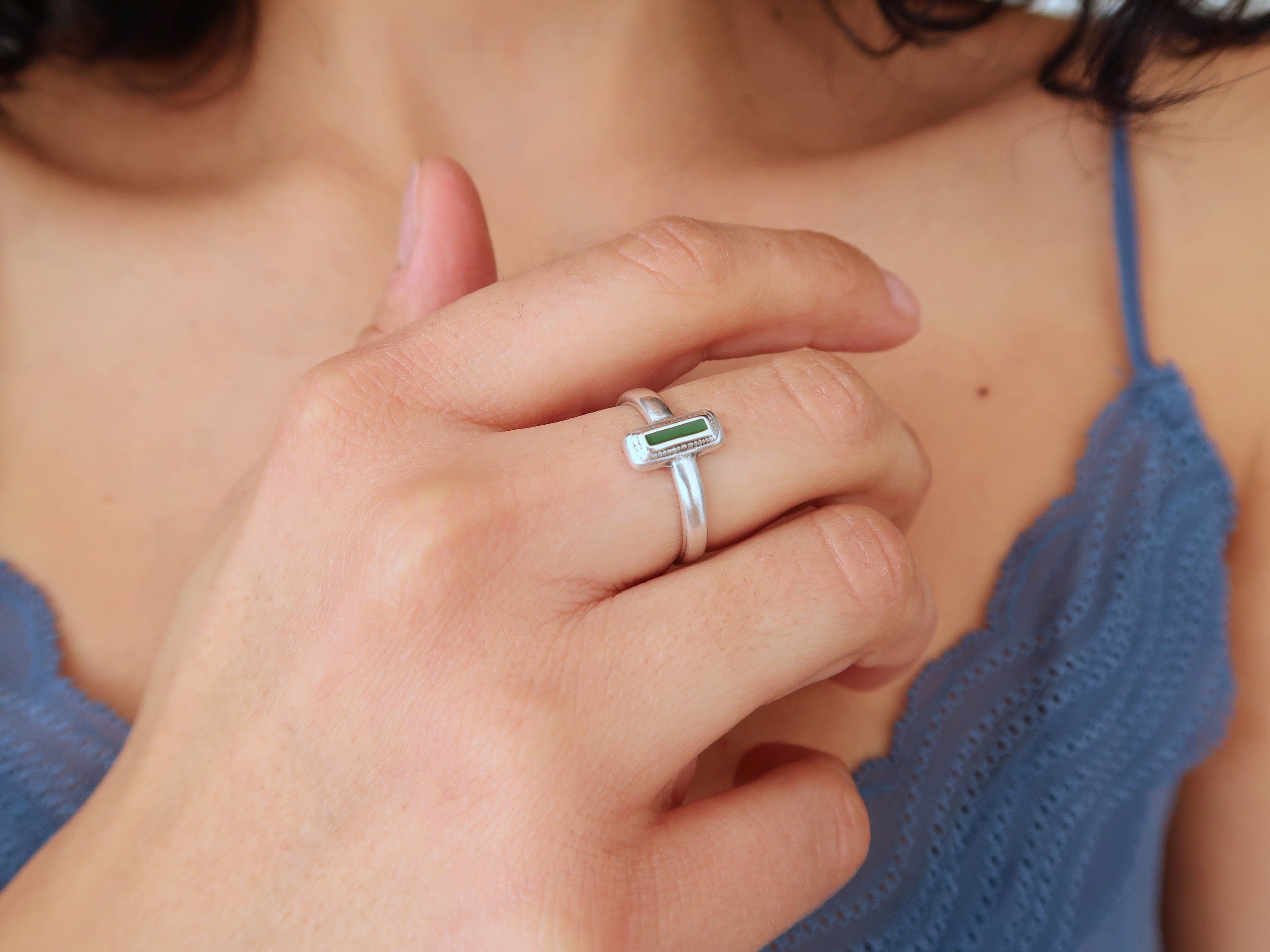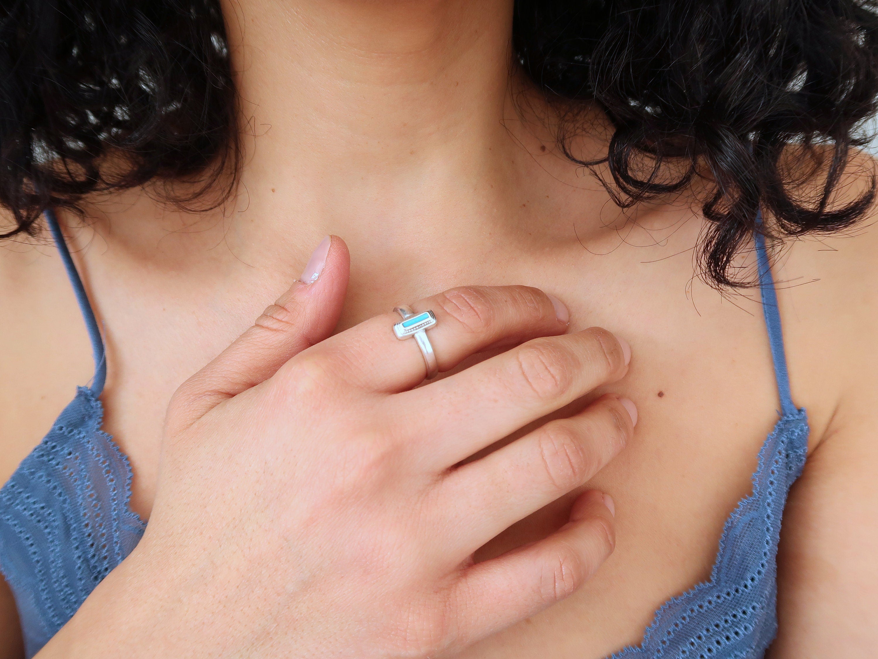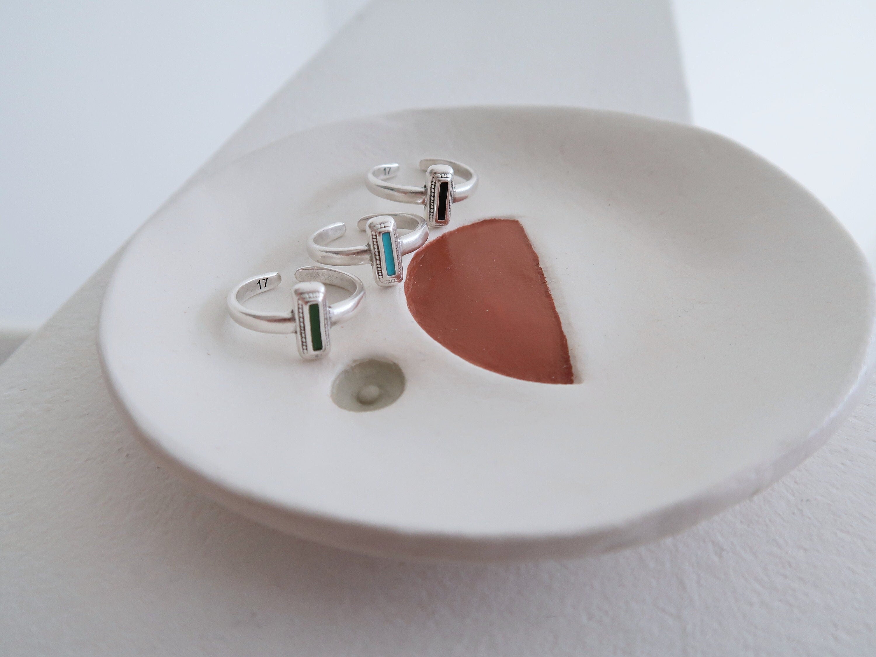 An amazing, simple but chic ring with a rectangle turquoise/black/green colour enamel setting.Add this unique ring to your collection today and complement your outfits.Here you can find its matching earrings:https://www.etsy.com/listing/1190319324/silver-plated-free-form-organic-shape?click_key=f43108f7ec1010d8813c189e56896f9a8a7428f5%3A1190319324&click_sum=ff3f199f&ref=shop_home_active_1&frs=1Here you can find its gold version:https://www.etsy.com/listing/1204211881/gold-rectangle-whiteorangeemerald-enamel?click_key=57cbdb52b2454e3210be26d3e3691ba15642c26a%3A1204211881&click_sum=ba492723&ref=shop_home_active_1&frs=1• Adjustable size, Ring fits US size 6.5-7.5 inches• Internal diameter 17mm / 0.66 in.• Ring measurements 0.8x0.46in. / 20.3 x 11.7 mm• Silver plated zamak ring, Nickel Free, Lead Free--------------------------->>>>>>>>>> PLEASE READ <<<<<<<<<<---------------------------Adjustable rings are thinner so that their size can change and therefore extremely sensitive. You should adjust your adjustable ring ONLY ONCE to perfectly fit your desired finger. If the ring is reshaped and resized multiple times, the band will weaken.GIFTS OF LOVEAll of our jewelry come gift wrapped with love, even if you purchase it for yourself. If this is a gift we can make it even more special. Just let us know with a comment at the checkout or a message. CUSTOMIZE TO YOUR LIKINGMost of our designs can be customized to your preference in size, color or even style. If you desire any alteration feel free to contact us. If you require a major alteration you must contact before placing an order. MADE WITH LOVEOur metal components are made from silver/gold/rose gold plated zamak unless stated otherwise. All our metals are lead free and nickel free. Zamak is a high quality alloy with a base metal of zinc and alloying elements of aluminium, magnesium, and copper. It is a hypoallergenic material that gets dipped in silver and gold. We use the finest quality of leather, faux leather, silk, cotton elastic string and crystals to make high quality, safe and durable jewelry. Please note that color and size of products may vary slightly as we use semi precious stones and metal casting products which are not all exactly the same. Many of the semi precious stones and the gemstones are being coated to improve their natural color and luster. This is a common practice in the cutting and treatment of the gemstones and it doesn’t lower their quality. Avoiding contact with any chemicals, strong perfumes or water will help you preserve their beauty. All natural stones are subject to natural inclusions and vary slightly in colour and cut.CARE INSTRUCTIONSAll metal tarnish over time, even pure silver. Gold/silver plated findings (charms, pendants, clasps, beads, chains, jump rings etc) may tarnish if they are exposed to humidity for an extended time, or if they get in contact with alcohol, which is found in perfumes. To preserve longevity, store your jewelry in a dry place and avoid spraying perfume or alcohol based body lotion near them.SHIPPINGAll orders are shipped from Athens, Greece via ELTA postal service, packed in protective bubble mailers. We use International and Domestic Priority Mail. International Priority mail is normally delivered to European Union countries in three working days following the day of their posting, and to the rest of the World in 3-5 days.Delivery times depend on delivery times within the destination country, as determined by the Postal Service of each country.For more information on our shipping and policies please click hereREFUNDS, EXCHANGES AND CANCELATIONS:A mistake on our part will be refunded 100% along with all shipping costs. If for any reason you are not happy with your purchase, we will gladly accept returns or exchanges. If you want to return any item, please contact us before posting it. Buyers are responsible for the shipping costs of the returned item. Please note that shipping costs are not refundable.GET TO KNOW US Lets connect on your favourite social platform:- Instagram: @houseofasterodea, http://bit.ly/2JAKASW- Facebook: fb.me/HouseOfAsterodea- Pinterest: www.pinterest.com/ houseofasterodea