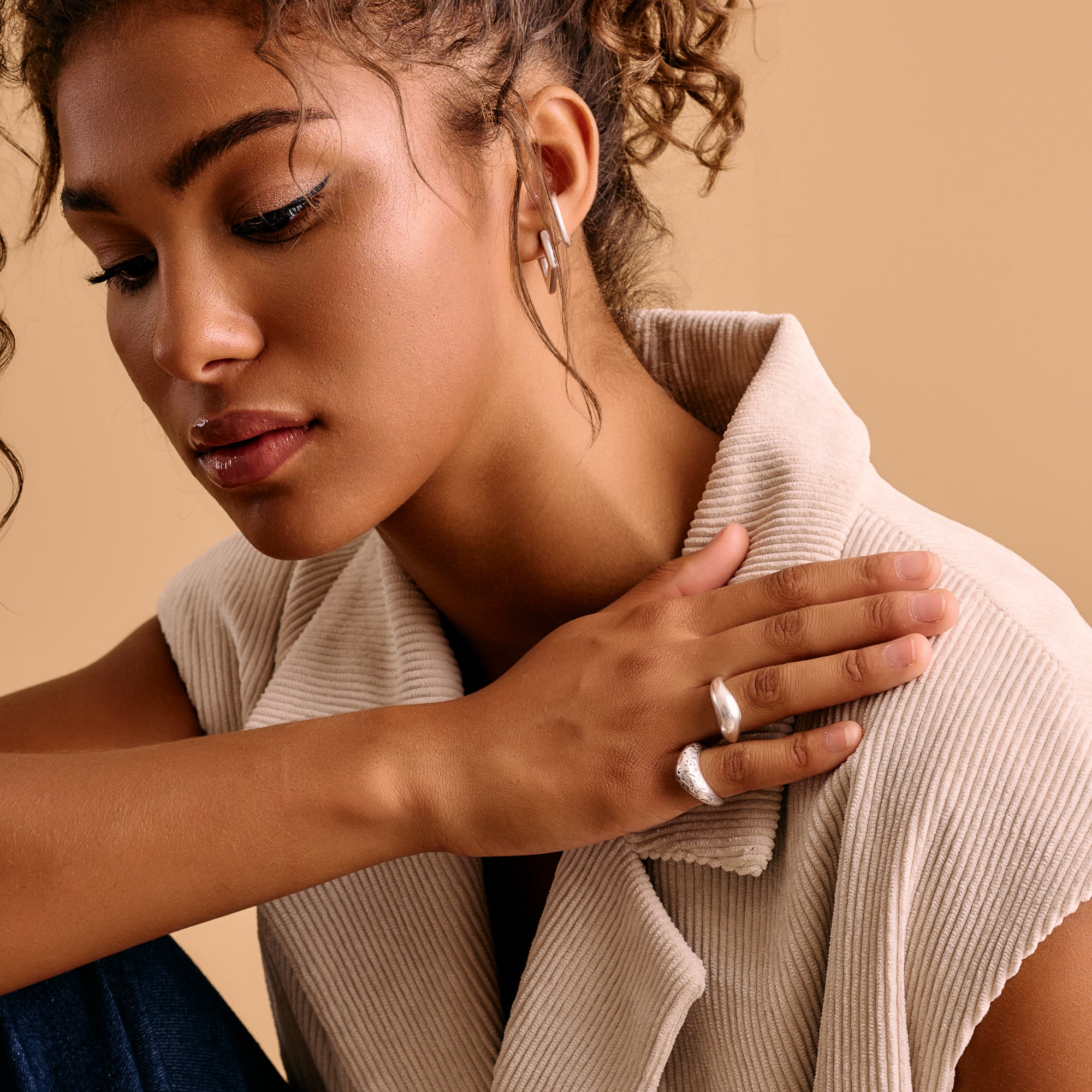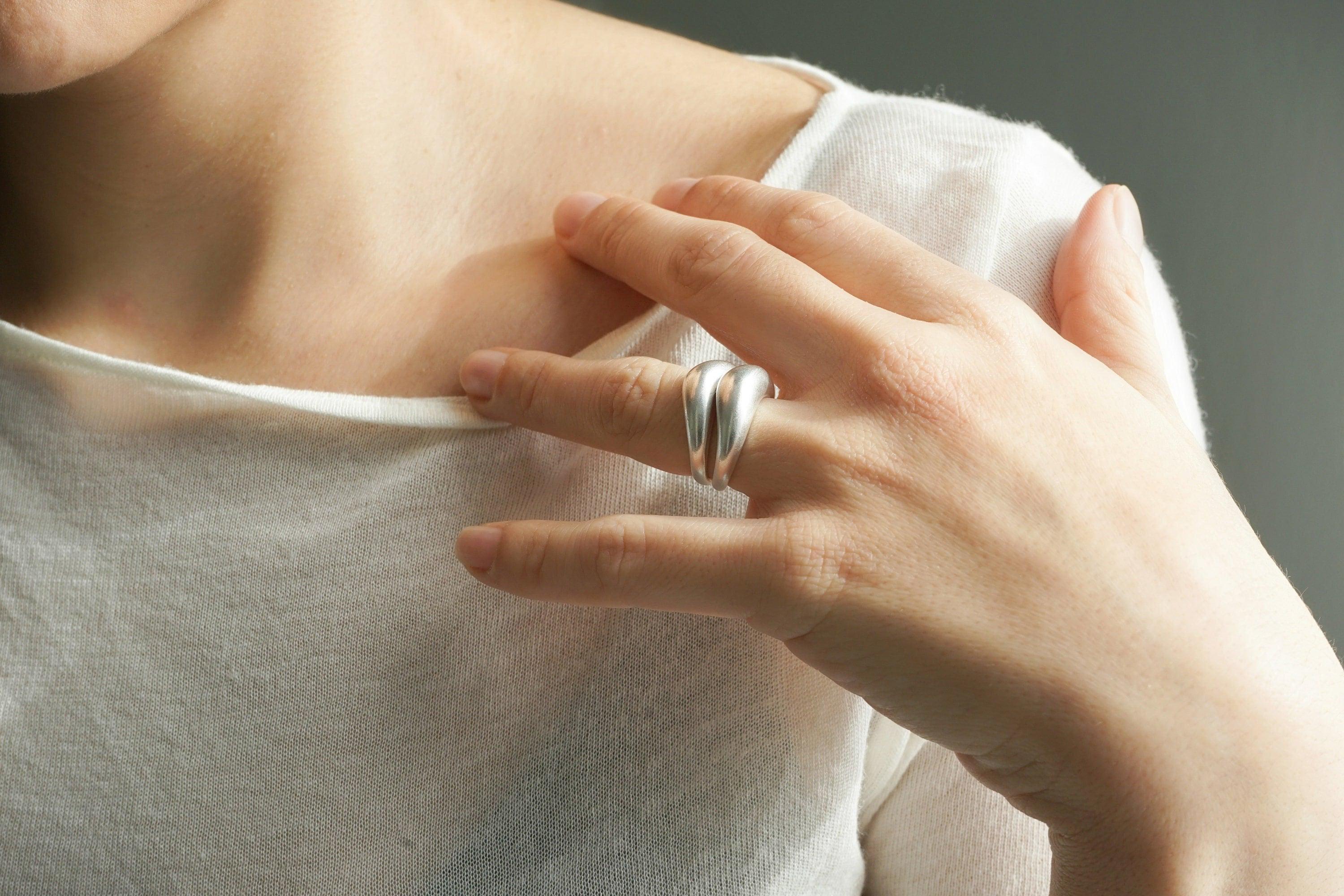 Crafted with an unusual, irregular shape, this ring serves as a statement piece that you’ll cherish for years to come. Its minimalistic, flowing curves draw inspiration from the beauty of nature and the human form, creating an organic silhouette that fits seamlessly into any style.