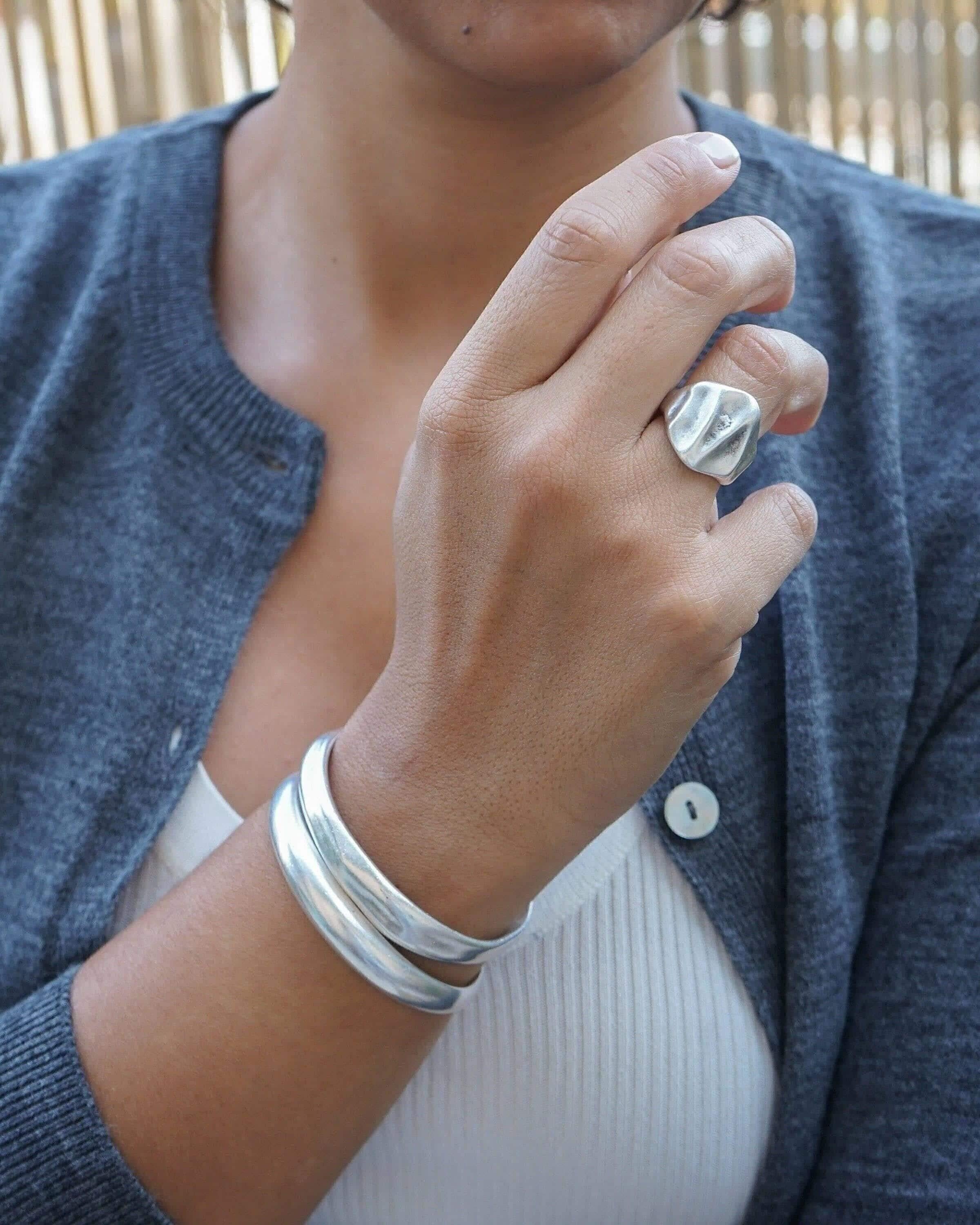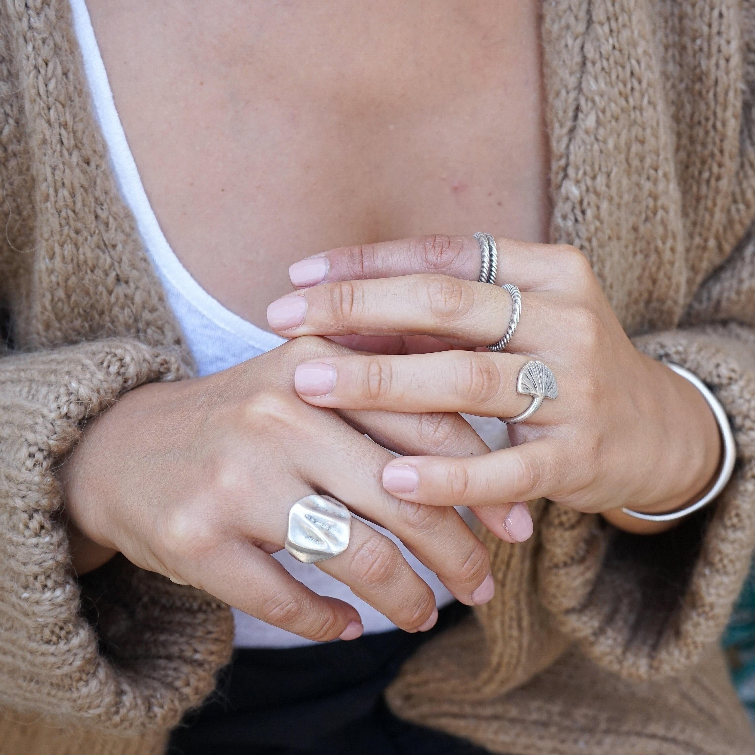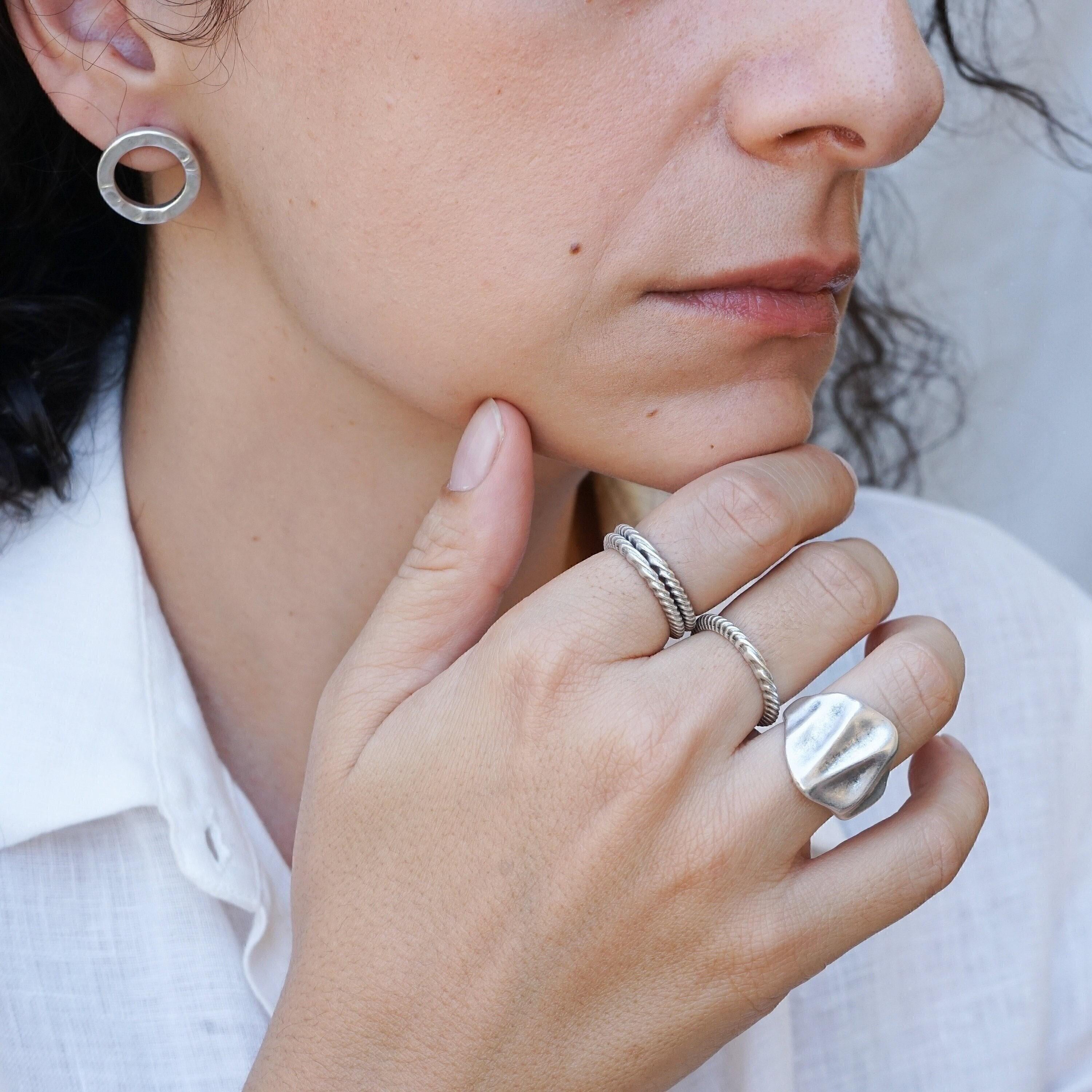 Versatile in style, this unique silver ring can be worn on your index, middle, or ring finger, whether worn alone or stacked with other rings for a personalized touch. It effortlessly enhances your everyday outfits, adding a touch of elegance to a simple shirt and jeans or any casual ensemble.