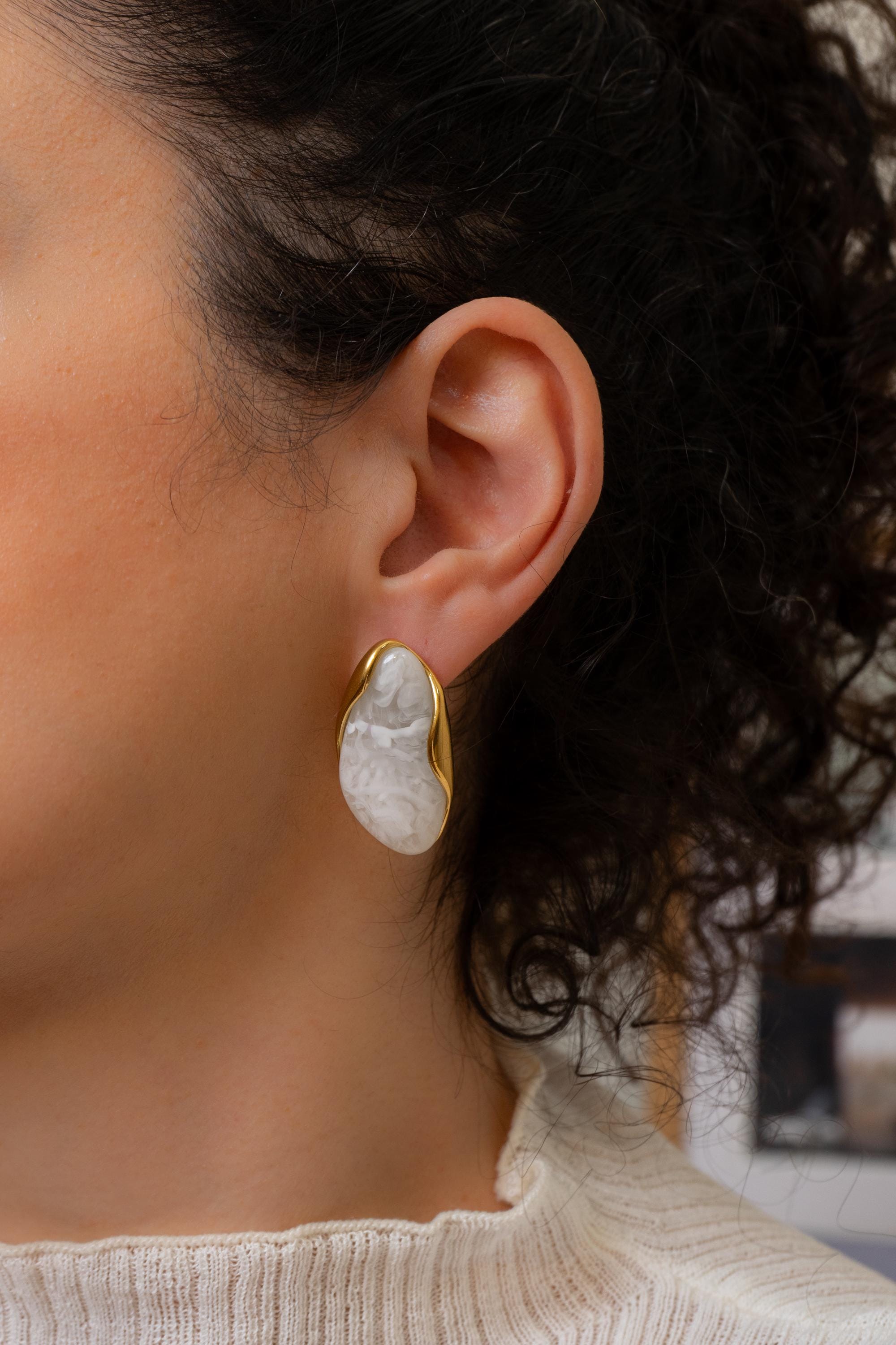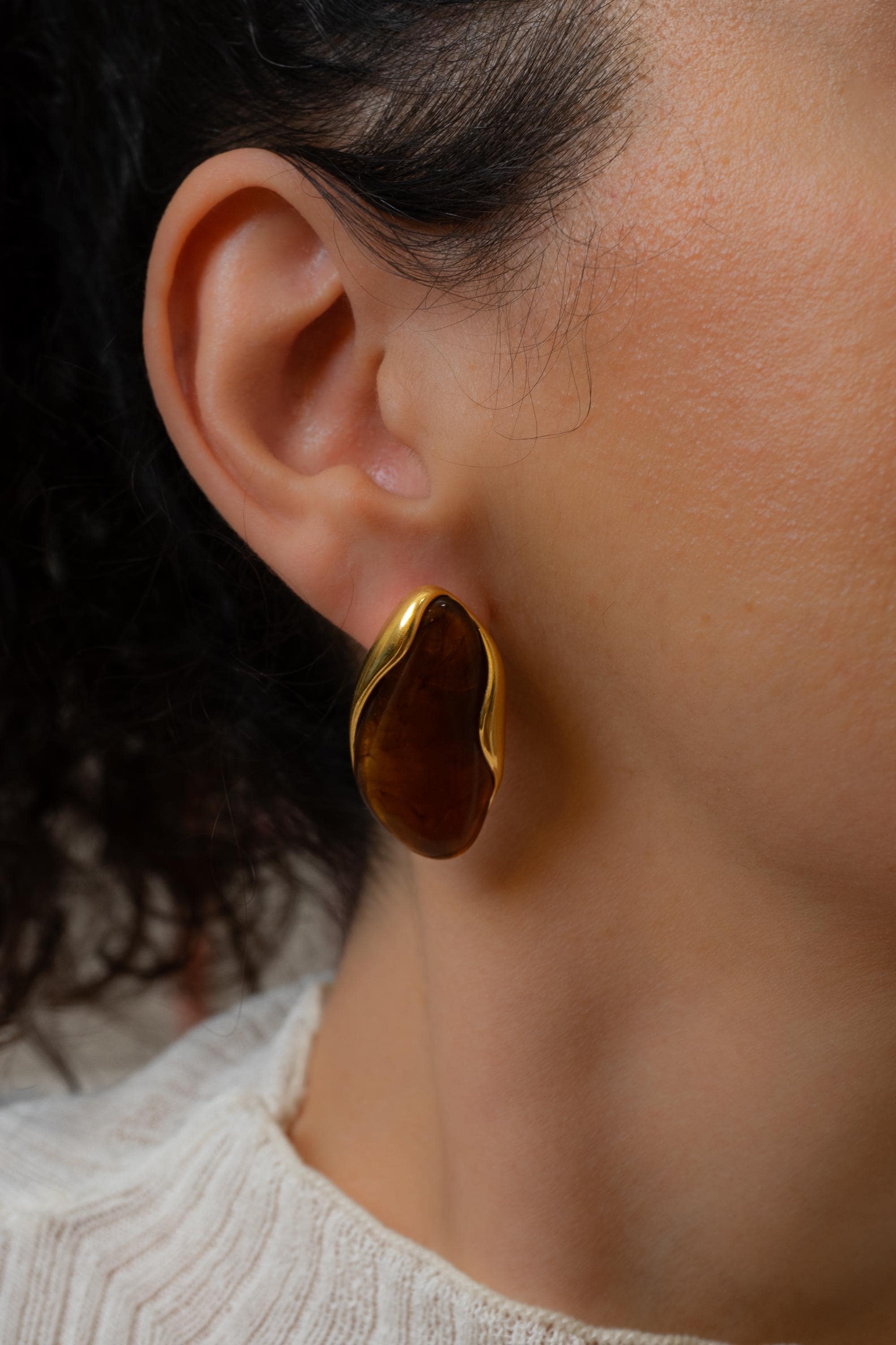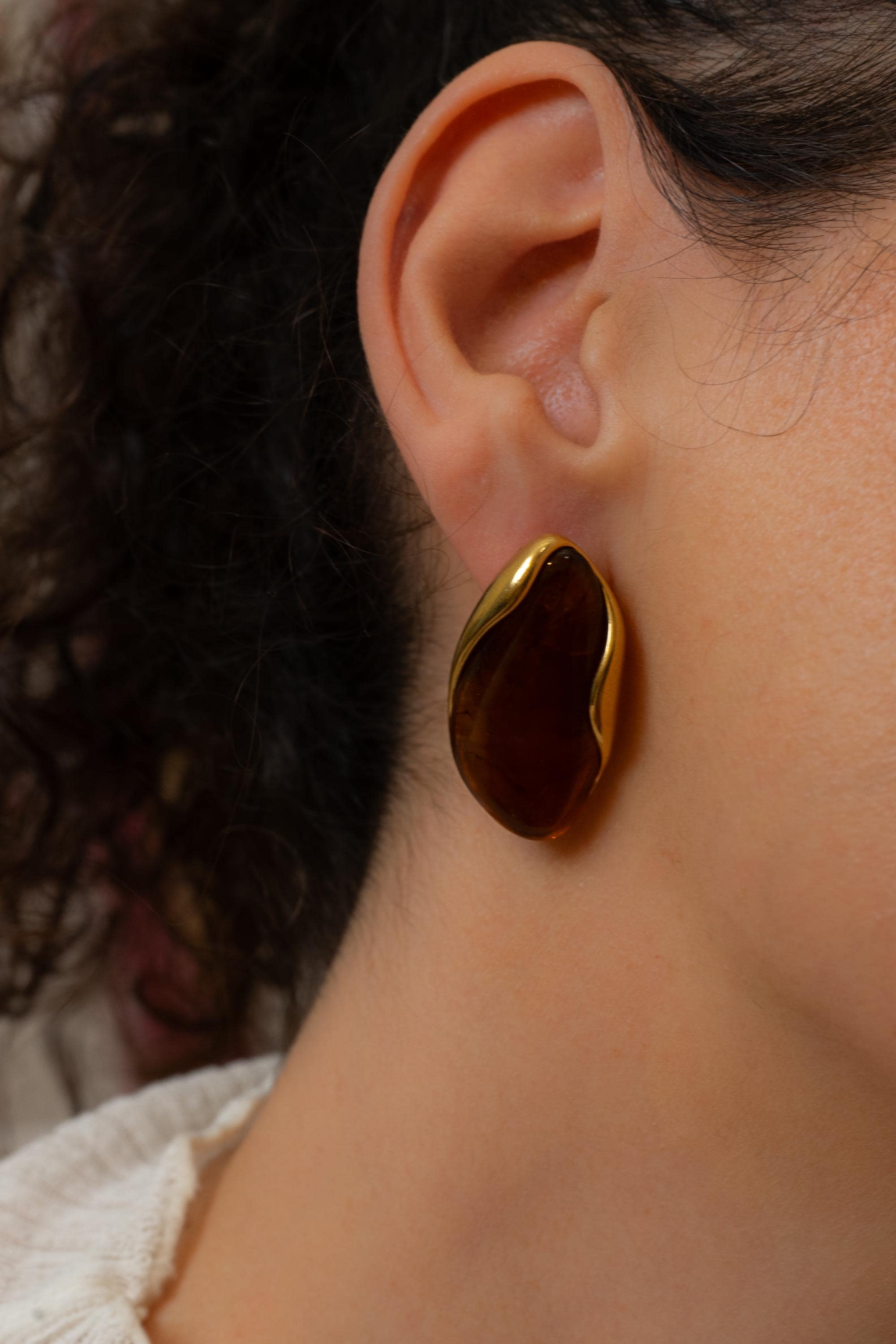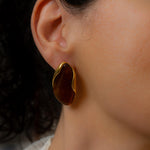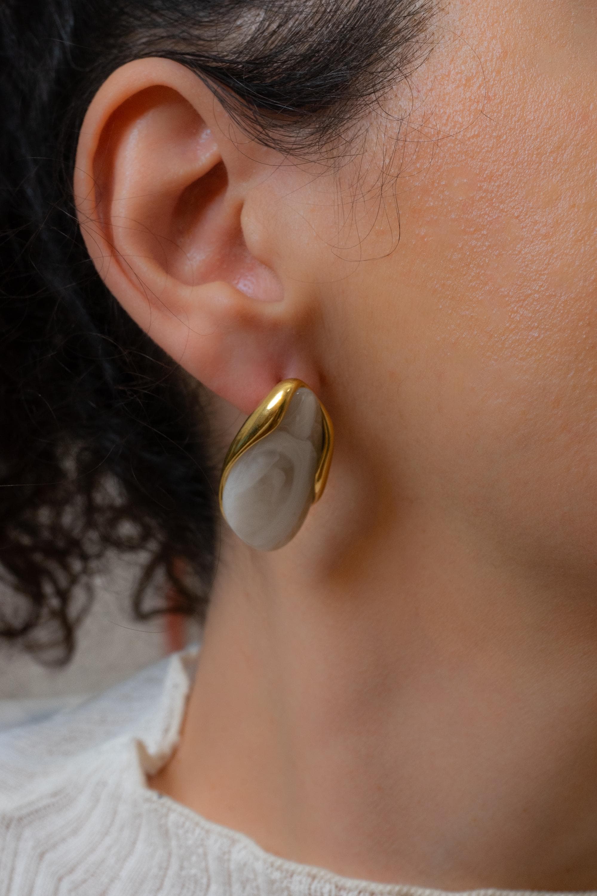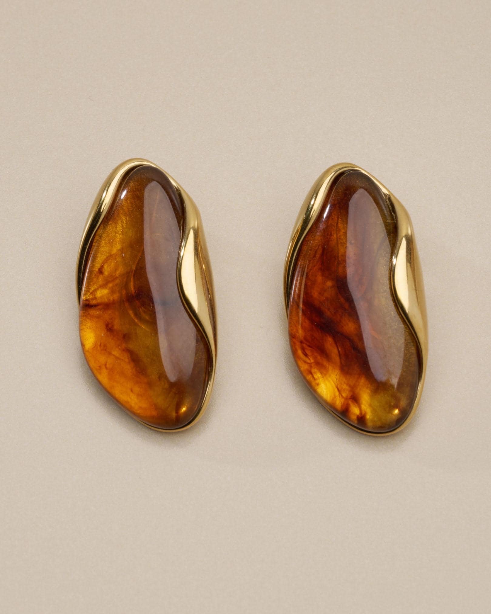 These oval stud earrings feature a smooth acrylic stone framed in gold-tone stainless steel for a clean, sculptural finish. Designed with balance in mind, they offer a statement shape without excess weight.