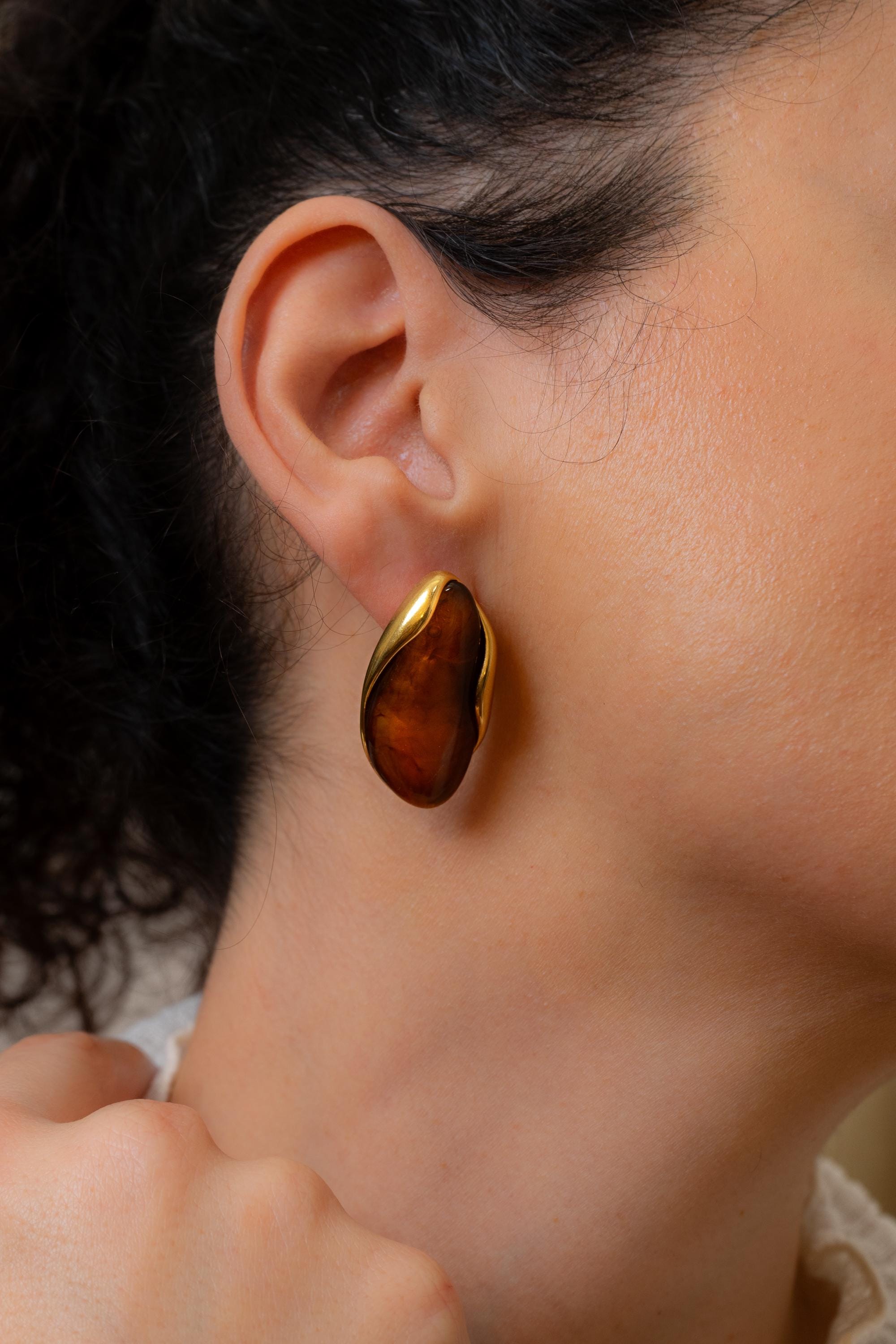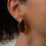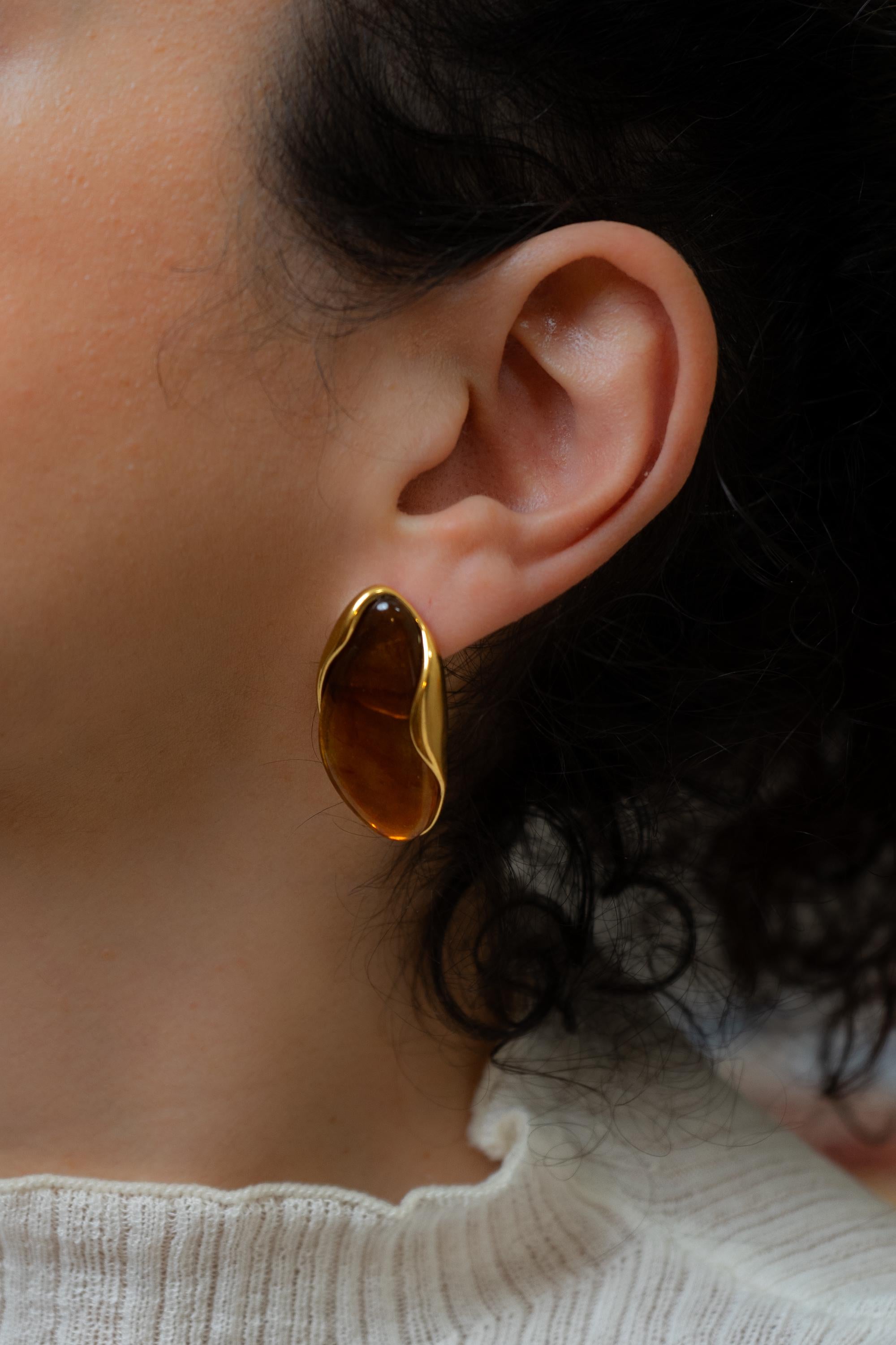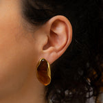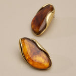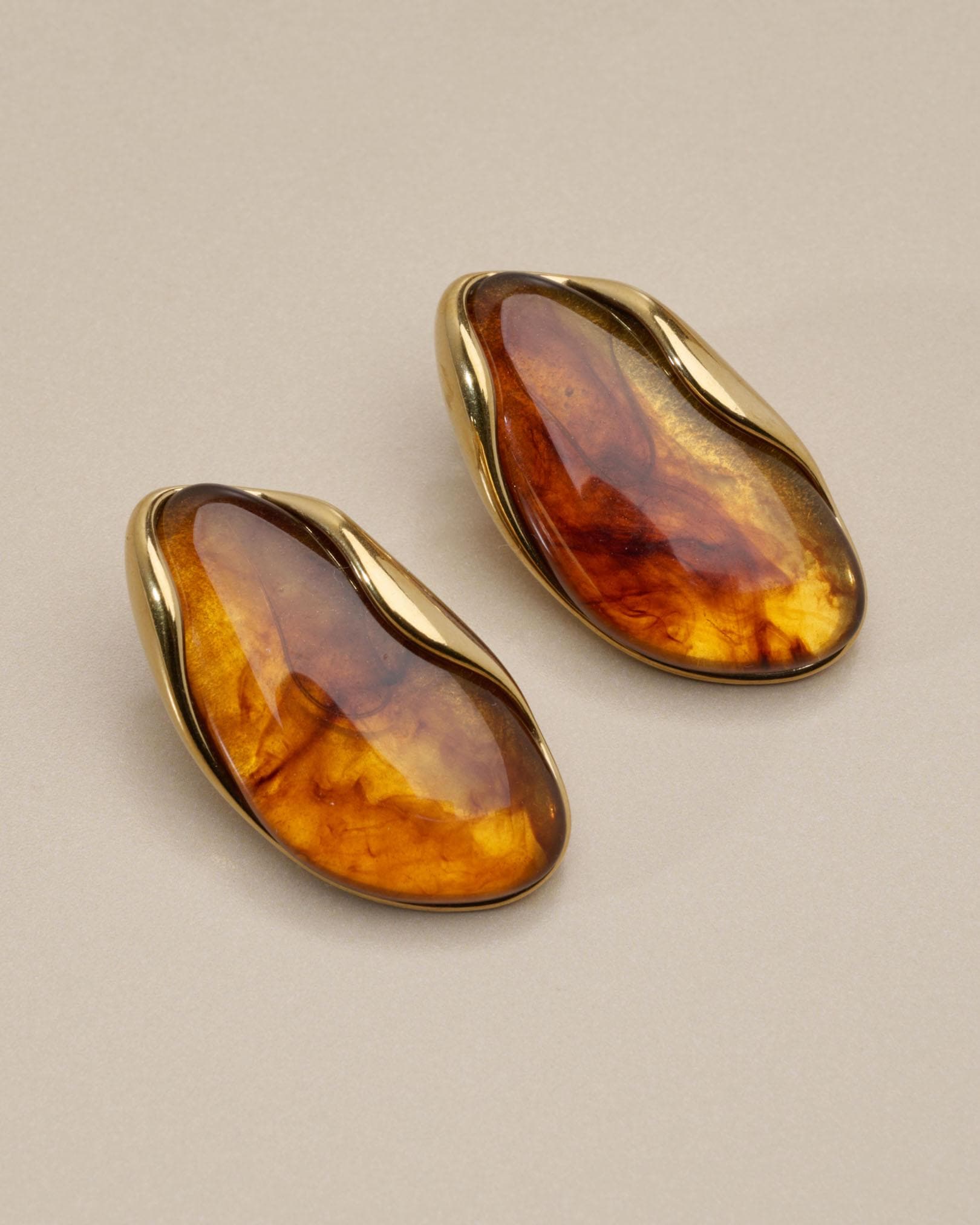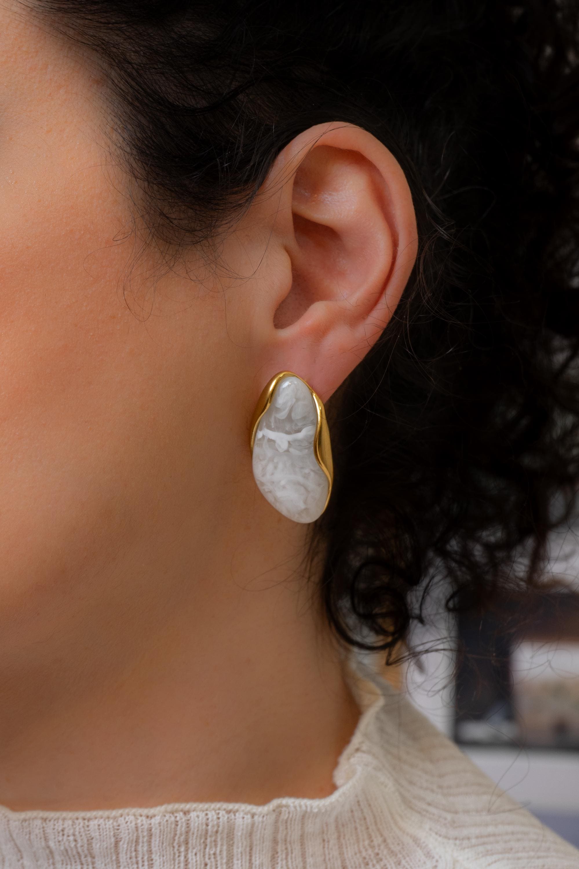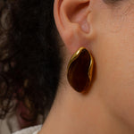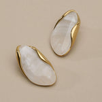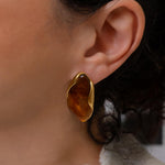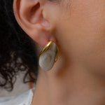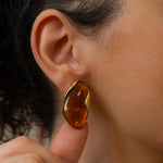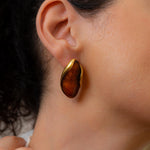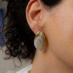 These oval stud earrings feature a smooth acrylic stone framed in gold-tone stainless steel for a clean, sculptural finish. Designed with balance in mind, they offer a statement shape without excess weight.