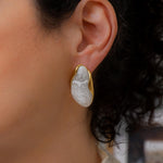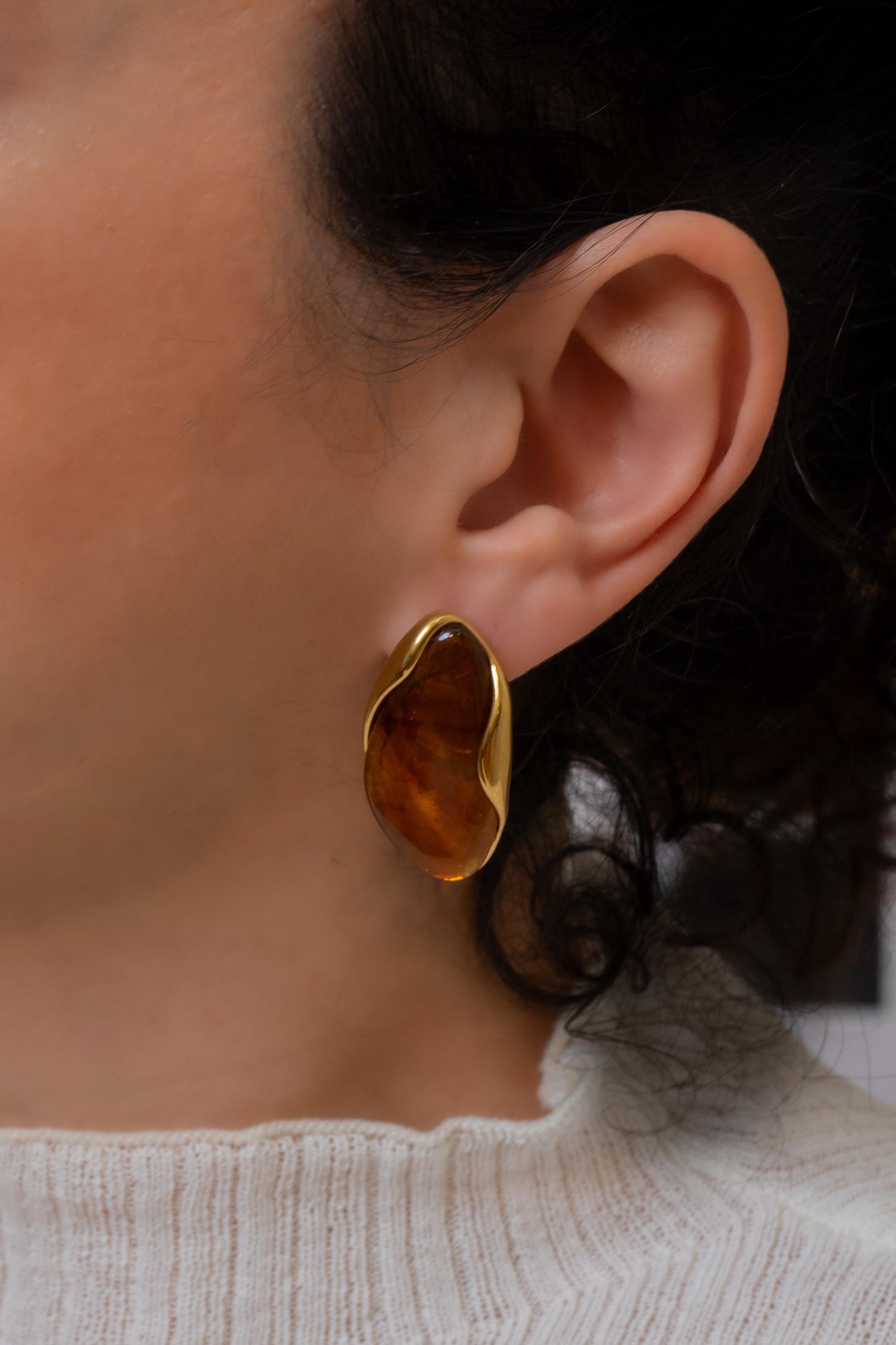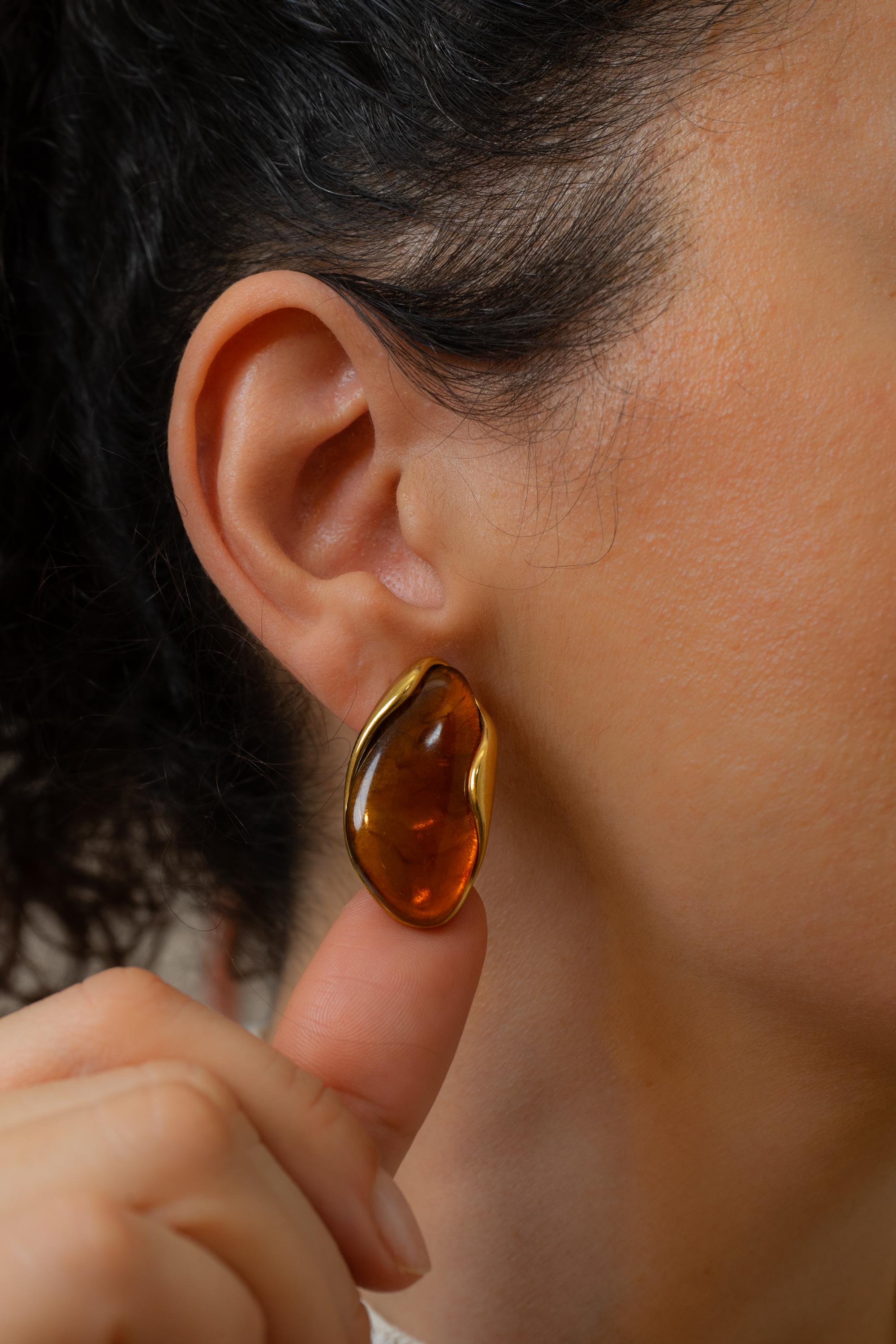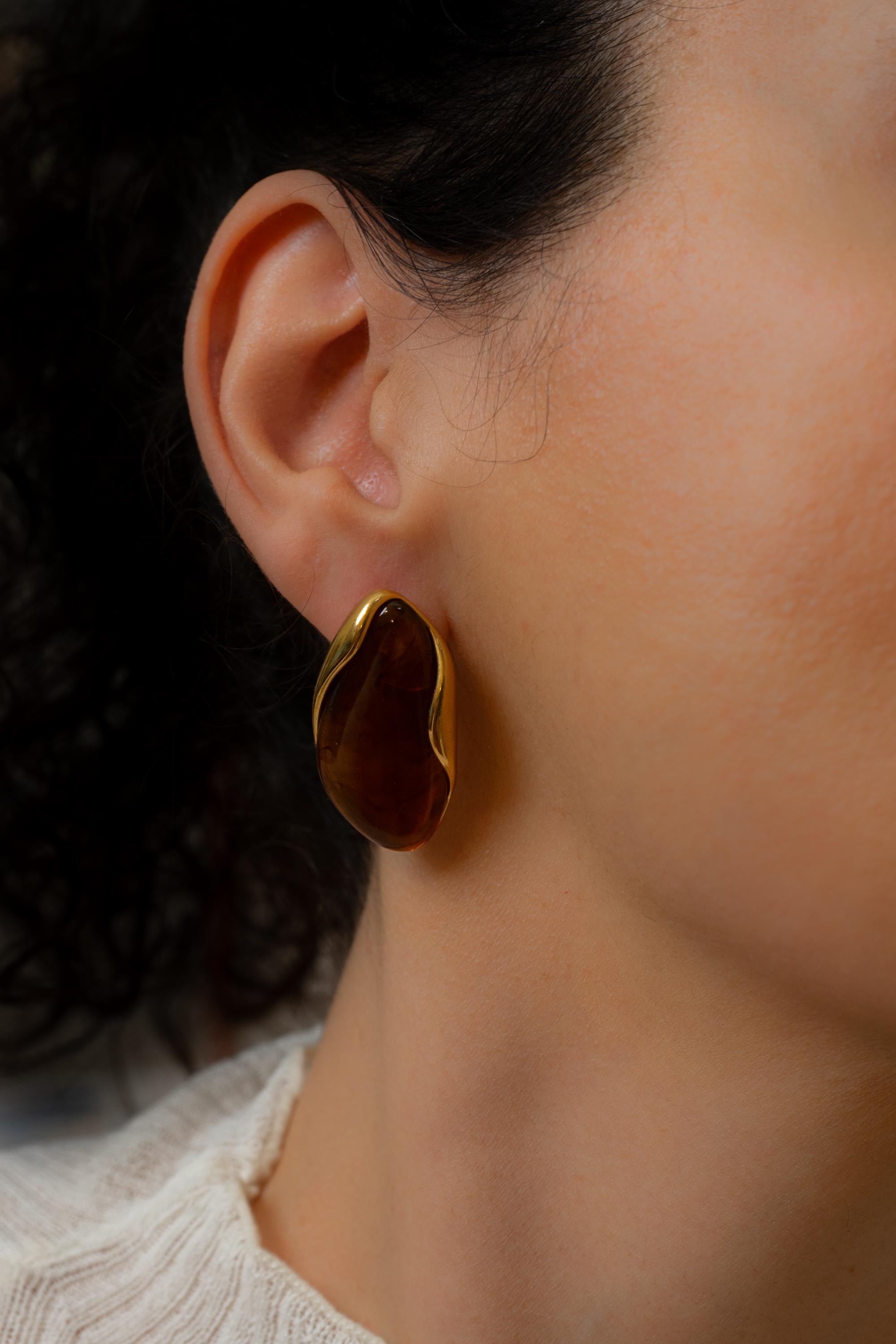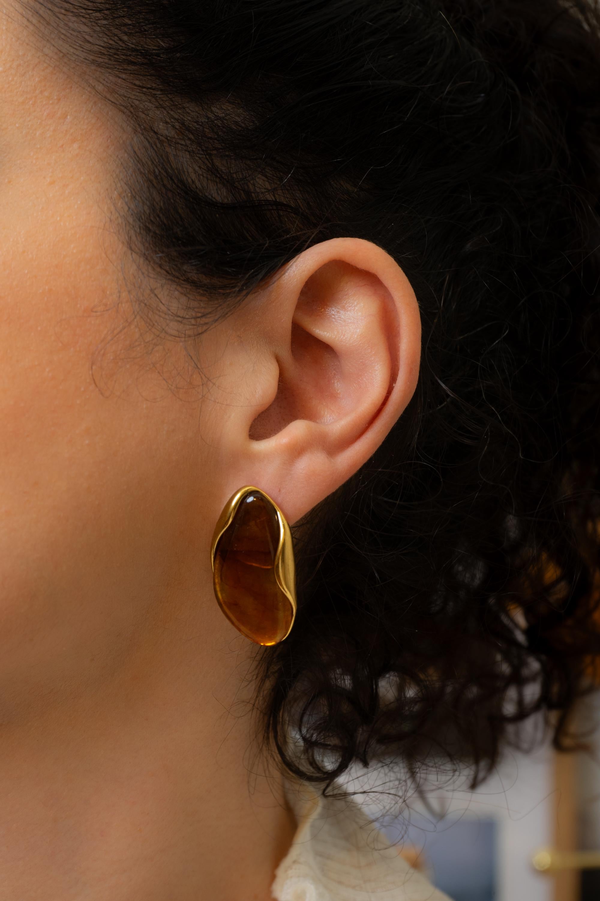 These oval stud earrings feature a smooth acrylic stone framed in gold-tone stainless steel for a clean, sculptural finish. Designed with balance in mind, they offer a statement shape without excess weight.