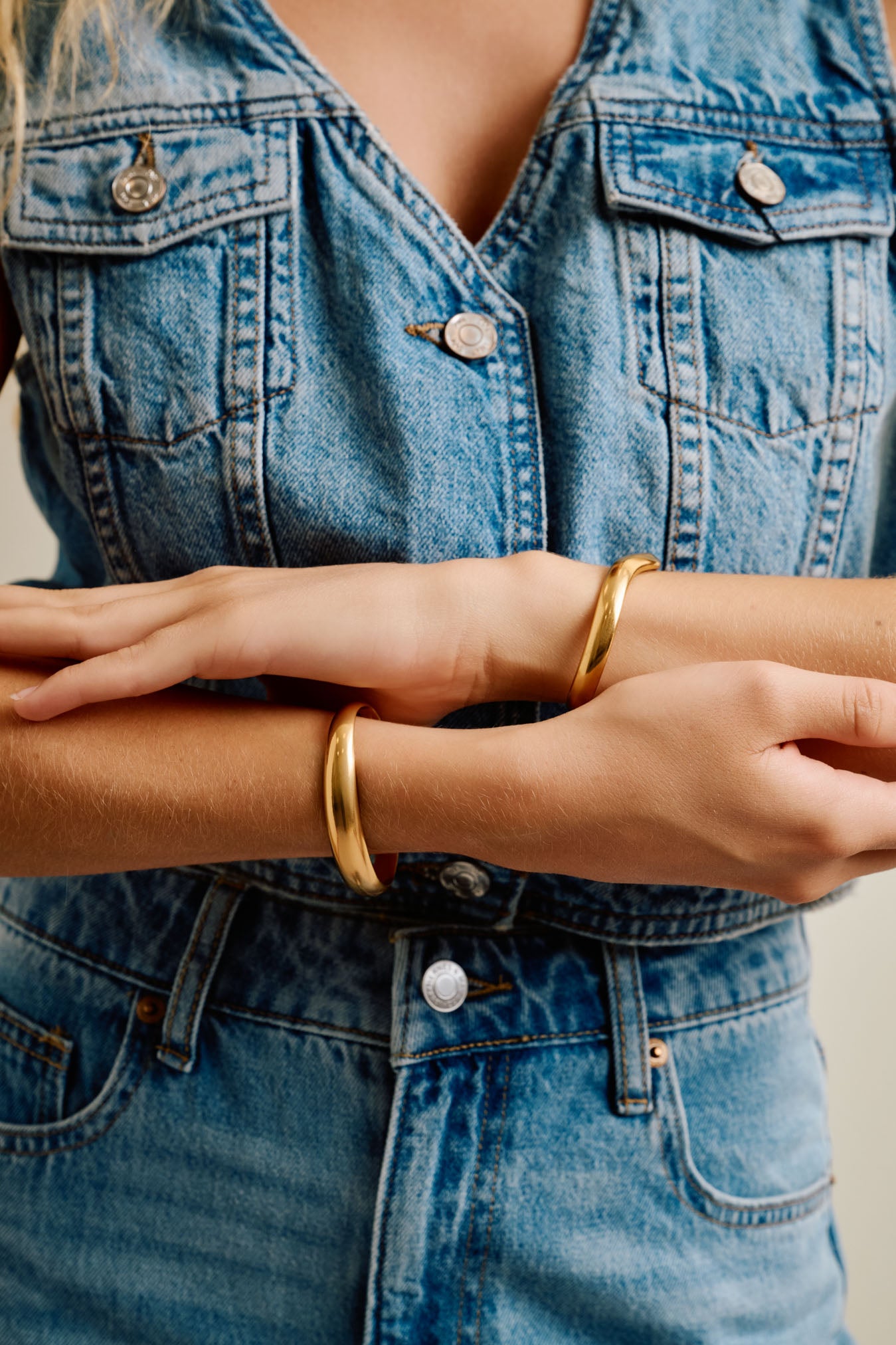 Crafted from durable gold-plated zamak, this cuff pairs beautifully with other bangles and bracelets, allowing you to create versatile and stylish combinations. Whether worn solo or layered, it’s a must-have piece that elevates any outfit effortlessly. Perfect for both casual and formal occasions, this cuff is a timeless addition to your collection, combining bold design with everyday versatility.