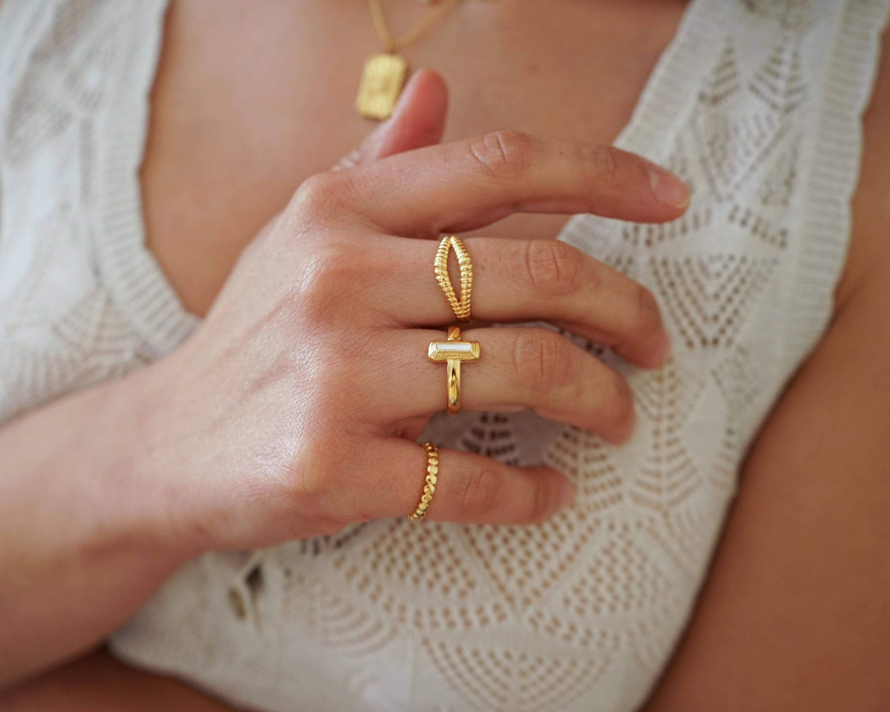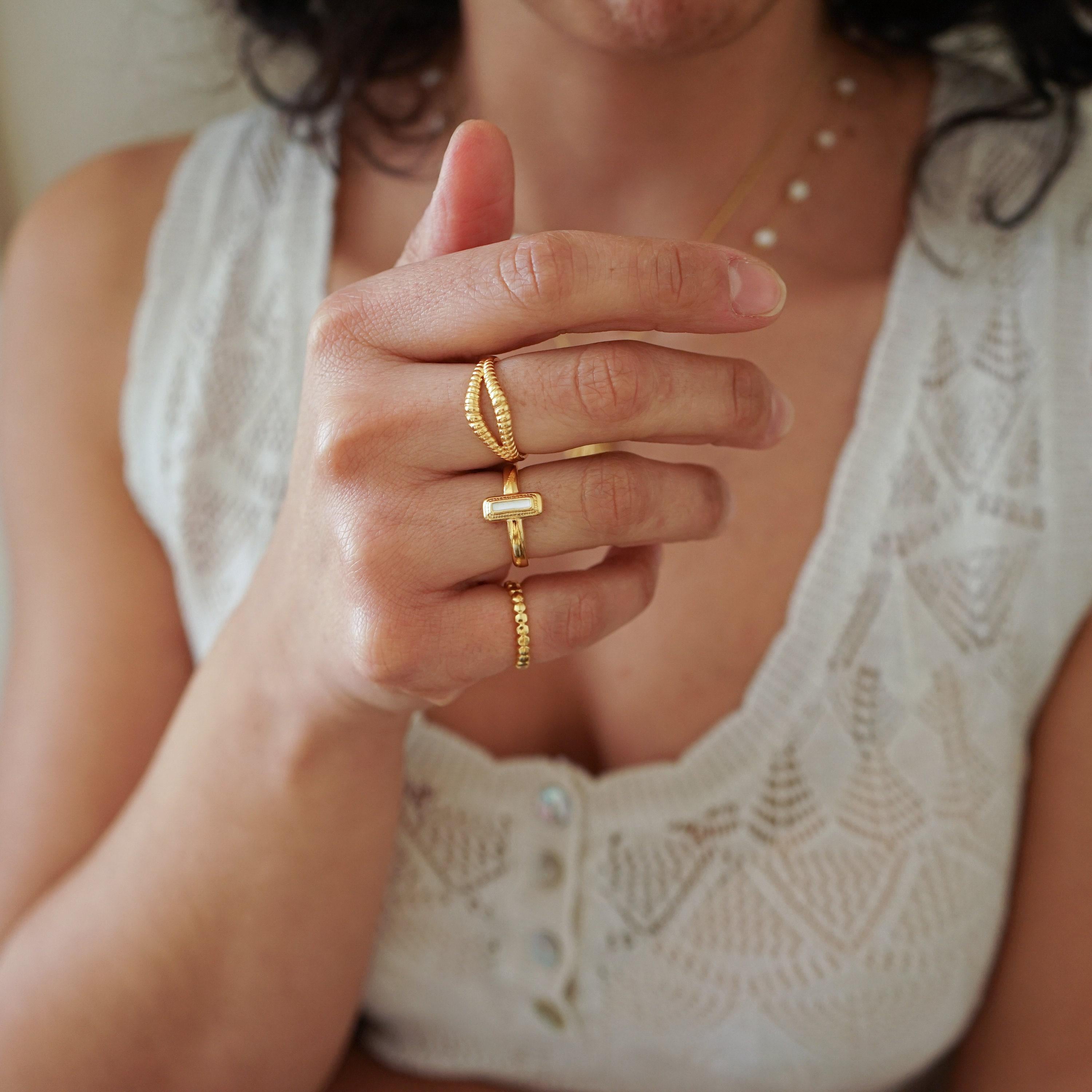 Gold Rectangle White/Orange/Emerald Enamel Ring