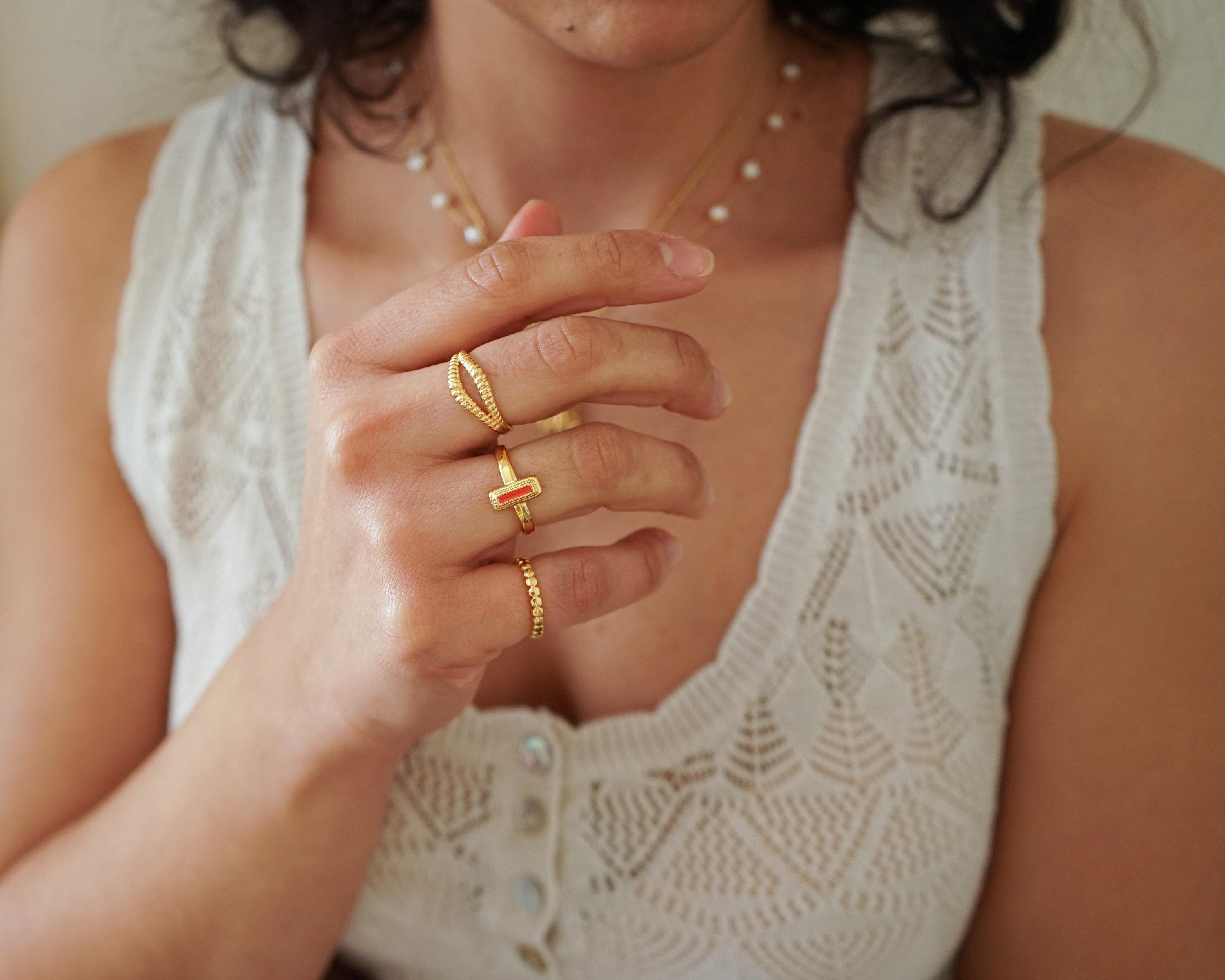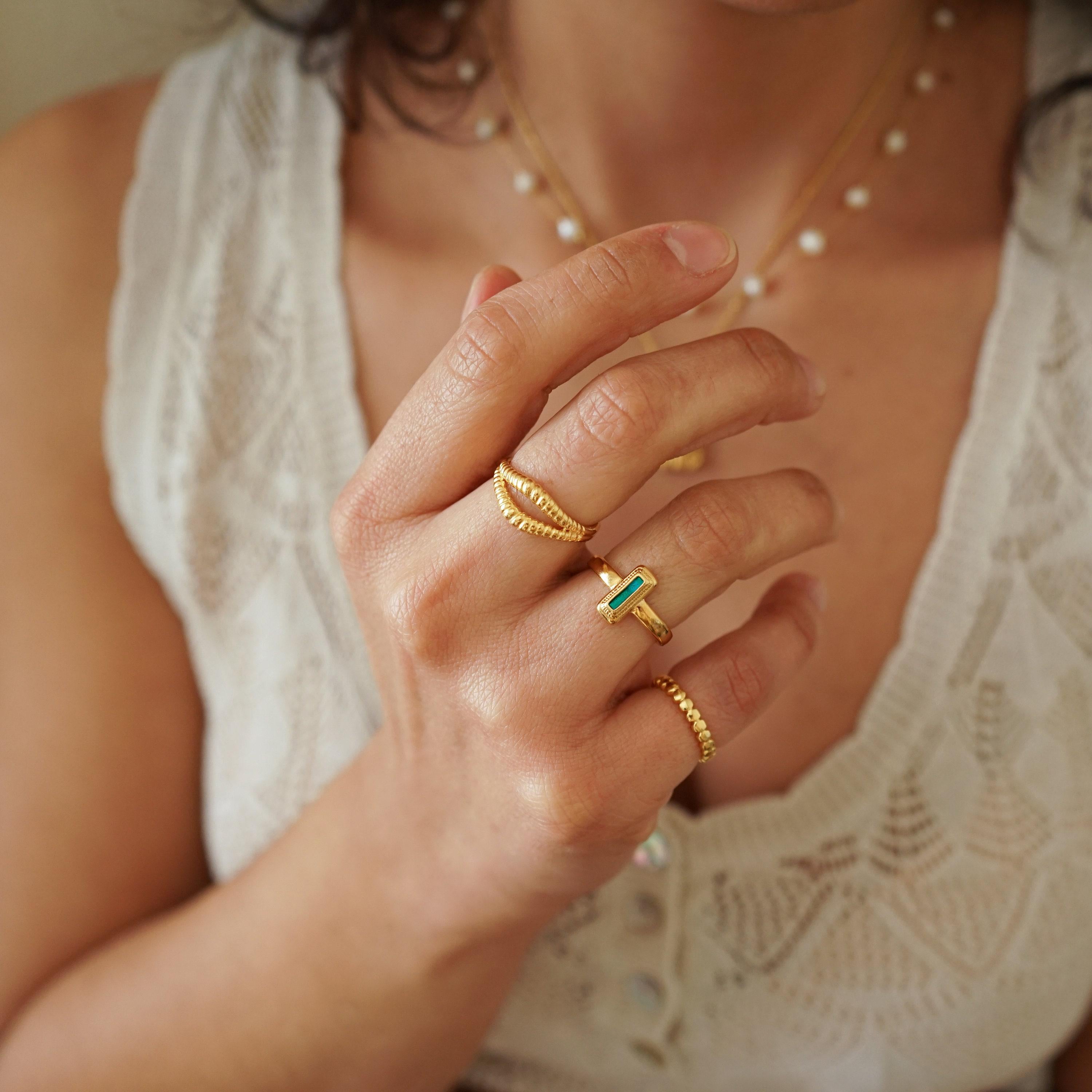 This impeccable ring features a rectangular enamel setting in white, orange, and emerald colors, creating a chic and stylish look. A must-have addition to any collection, it effortlessly accents your wardrobe with its distinctive design.