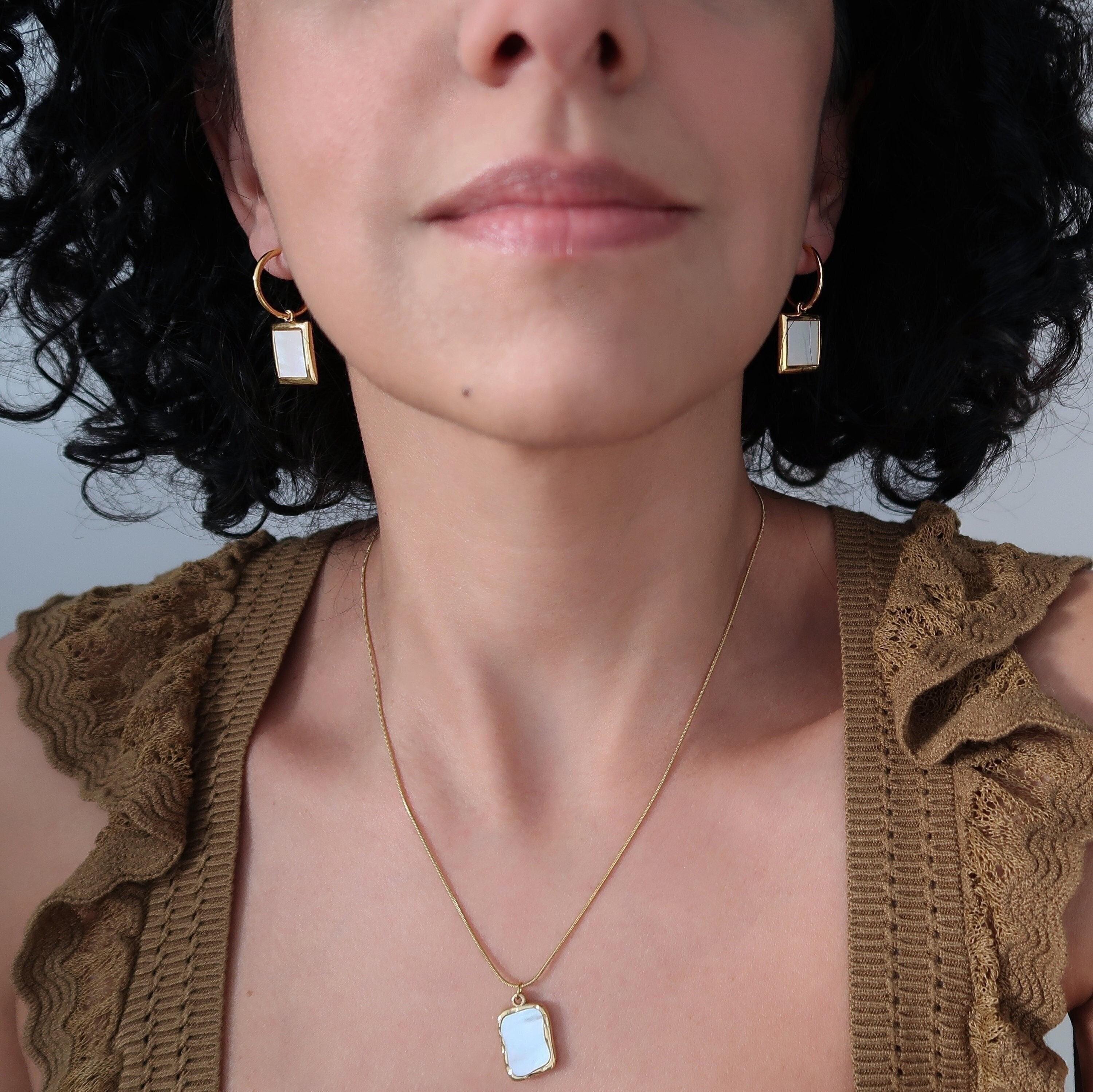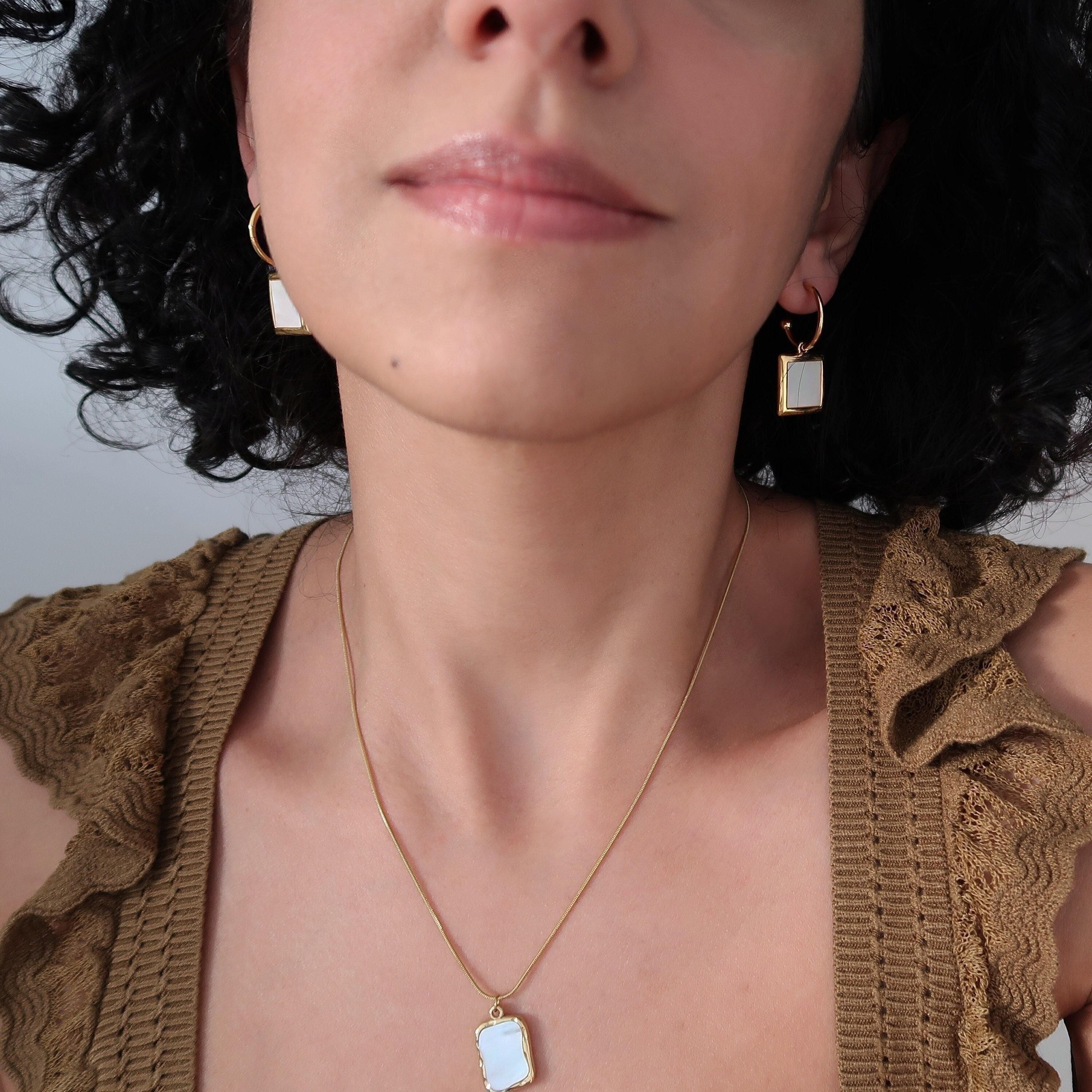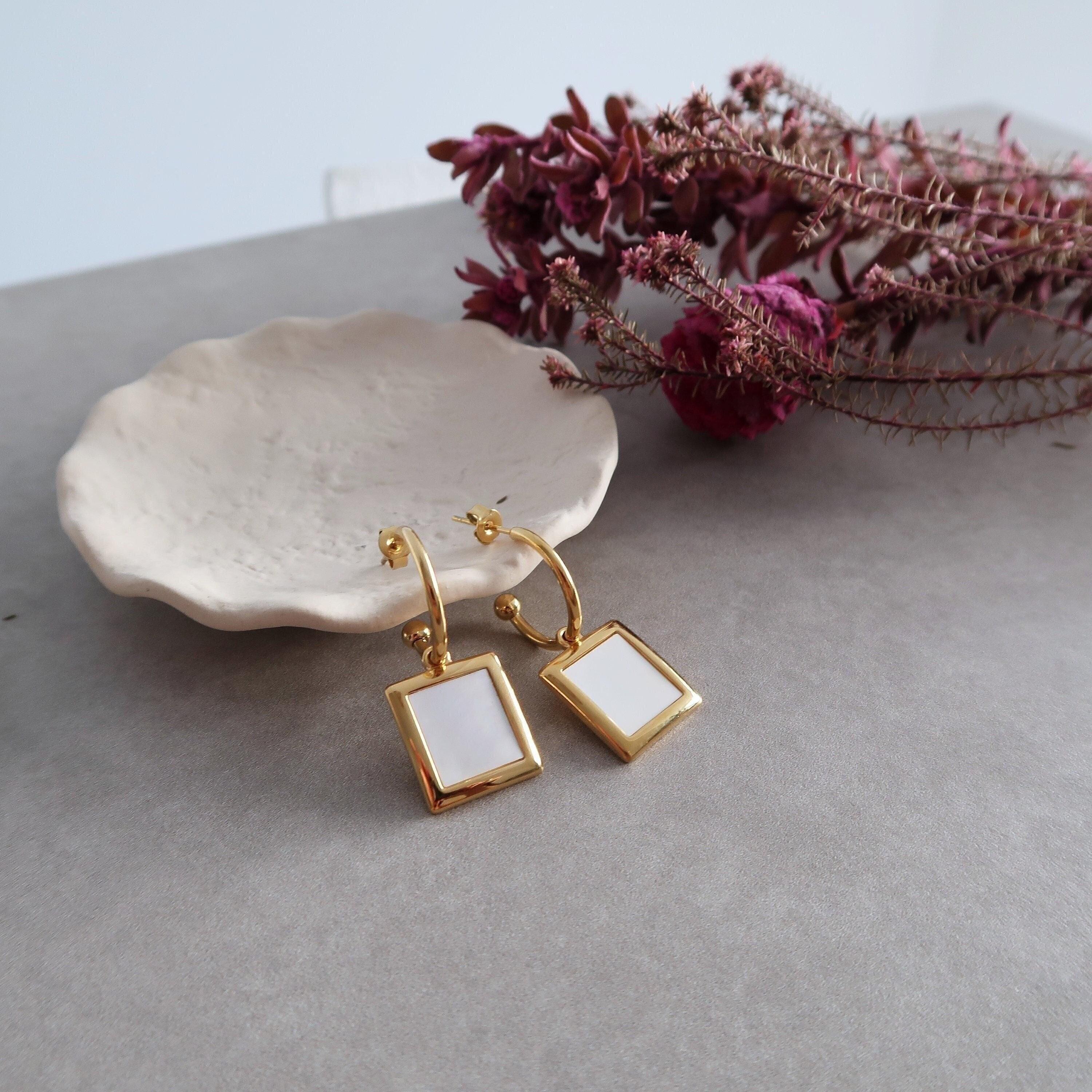 Elevate your look with these exquisite gold and white enamel square hoop earrings. Whether worn alone for elegance or stacked with multiple piercings for a modern touch, these medium-sized earrings are effortless and comfortable to wear. They pair perfectly with our matching ring and necklace in our exclusive collection.