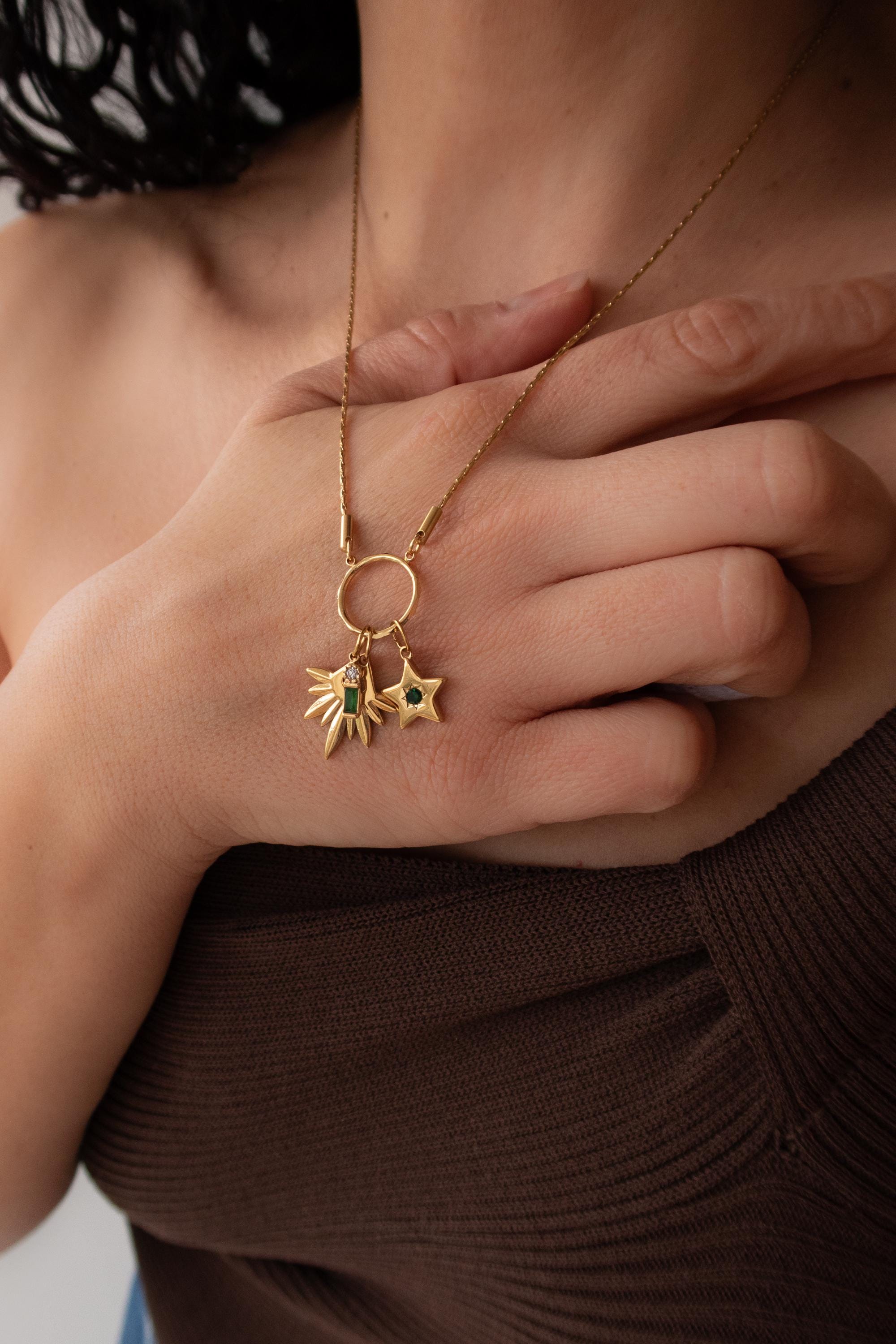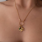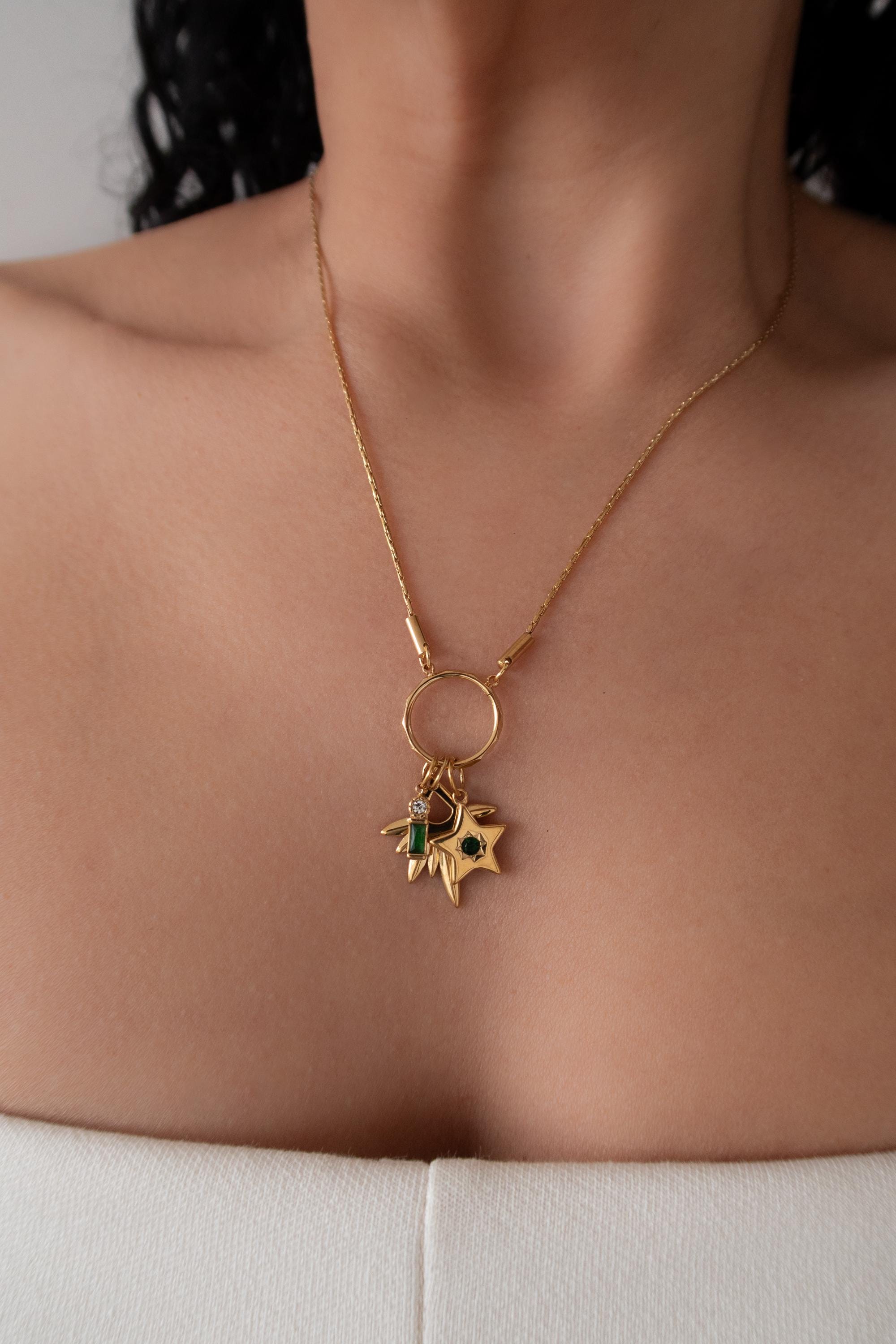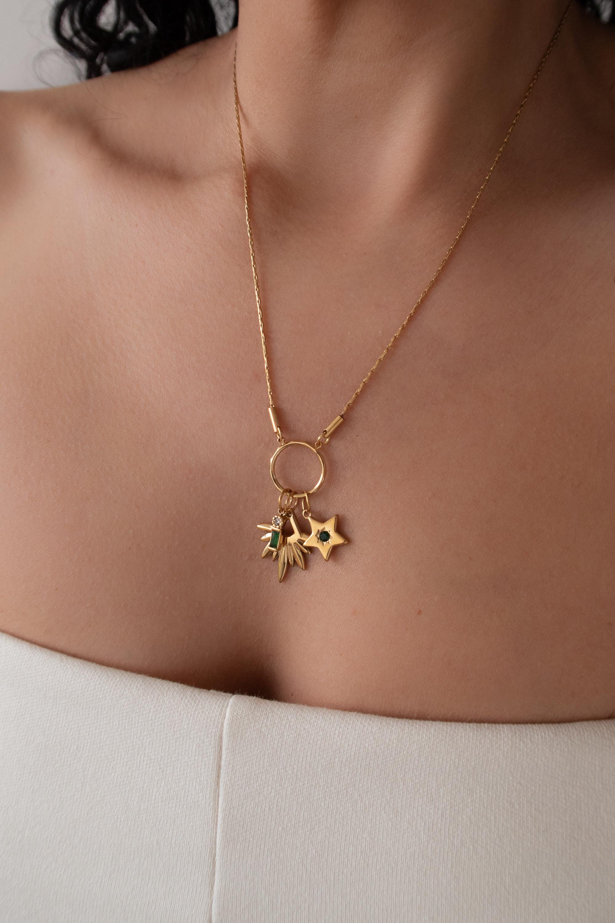 This elegant multi-pendant necklace features a beautifully Rays pendant, designed to reflect light with every movement. The star inspired texture creates depth and brilliance, while the enamel stone add softness.