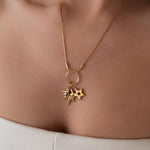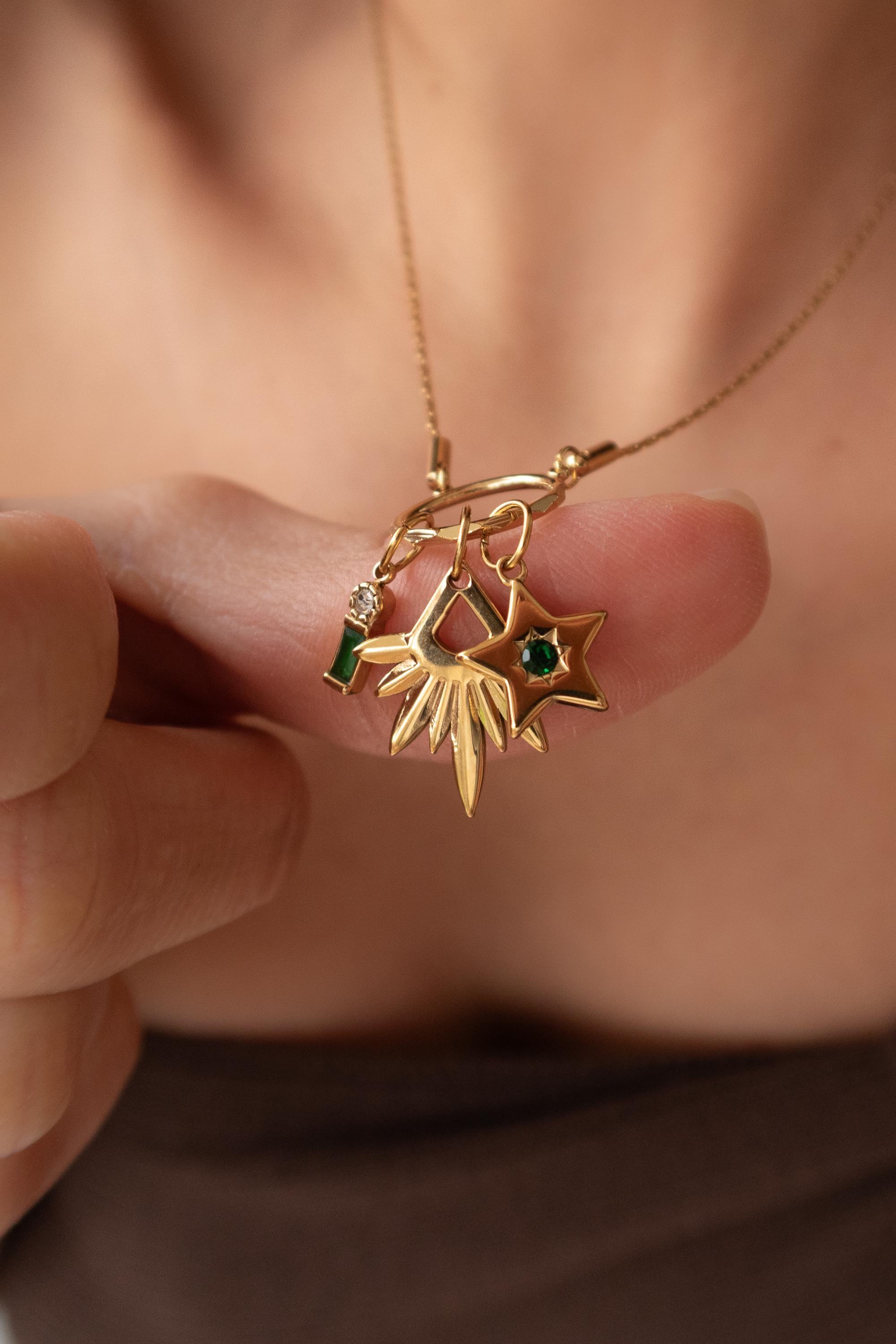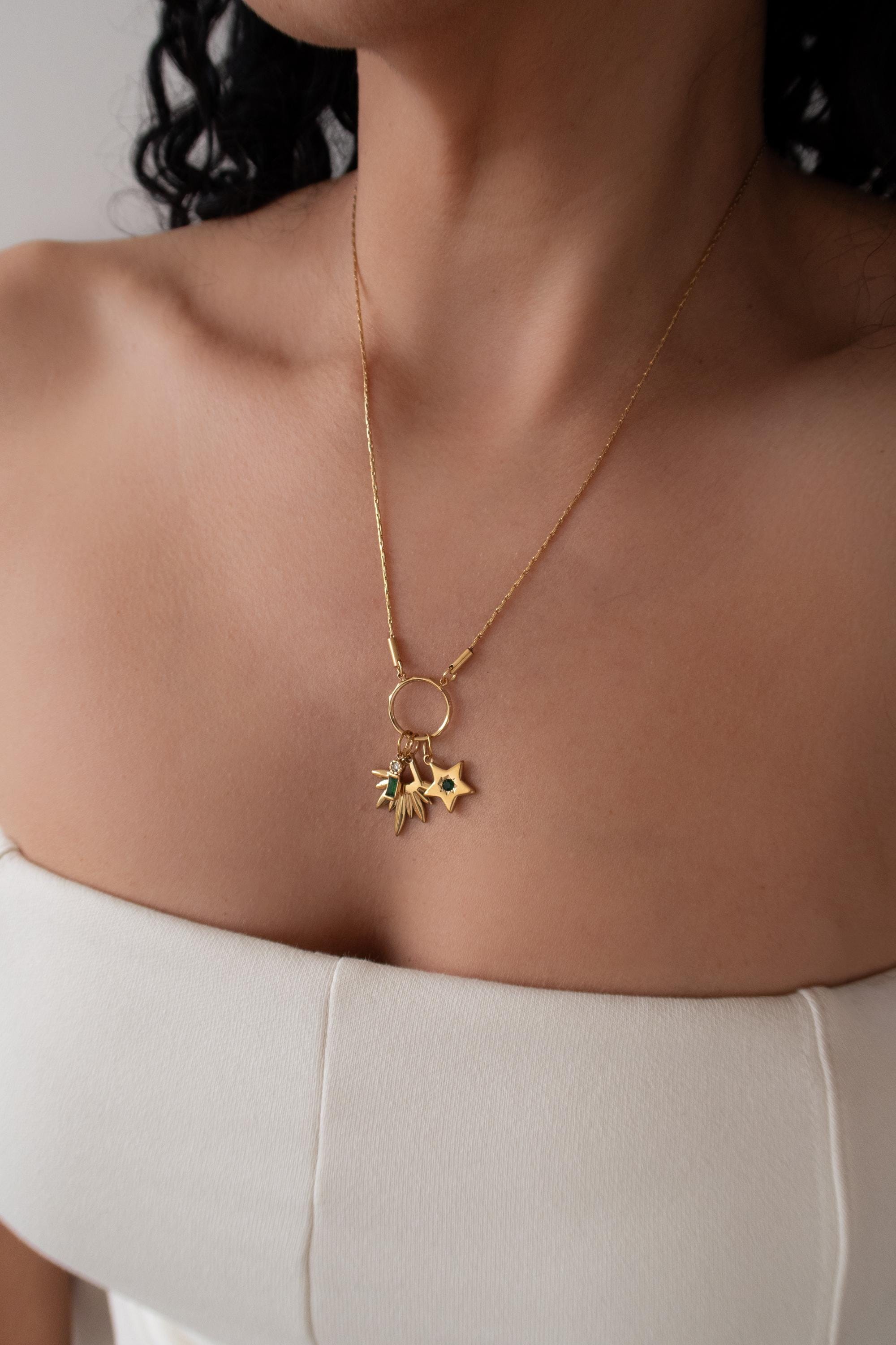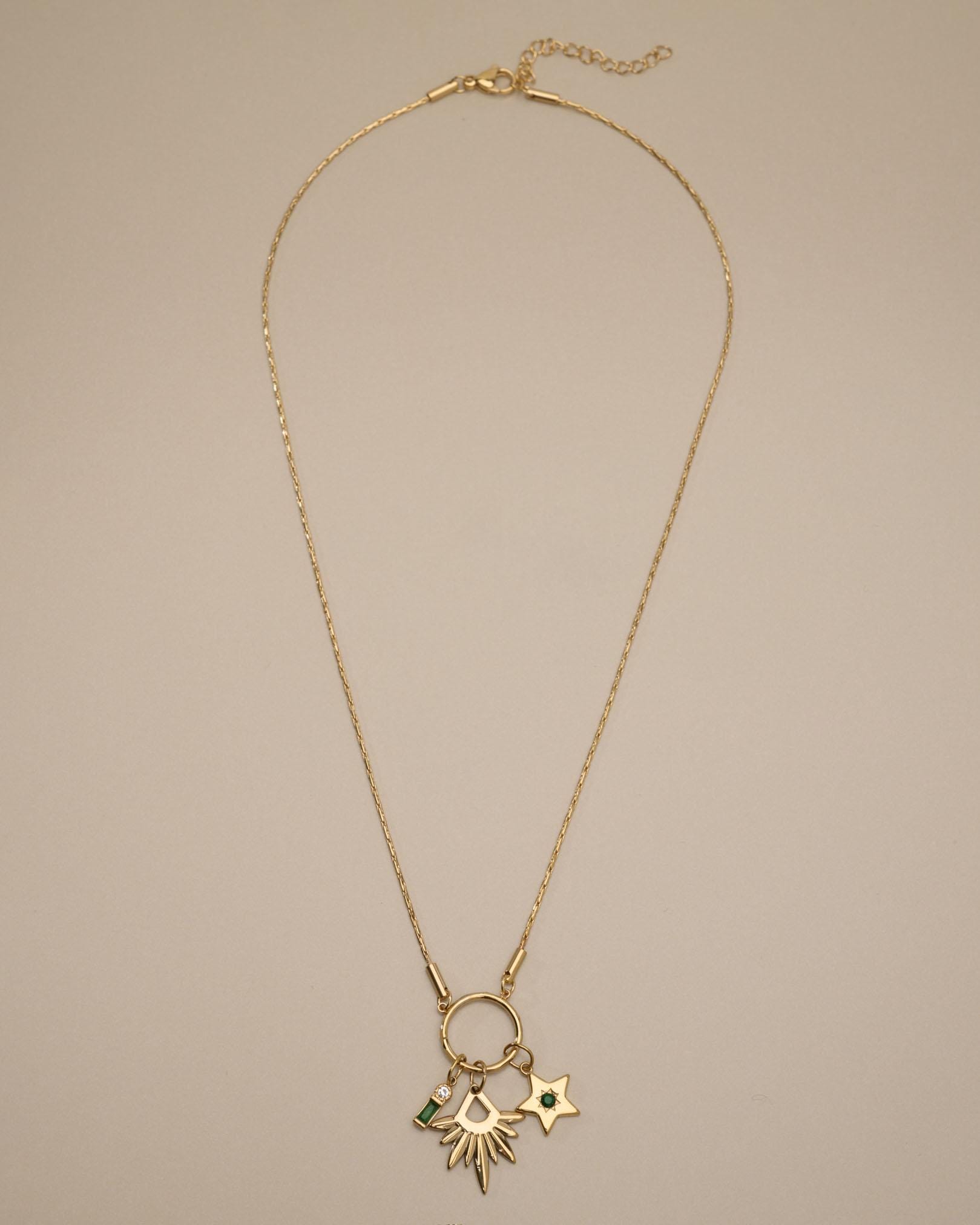 This elegant multi-pendant necklace features a beautifully Rays pendant, designed to reflect light with every movement. The star inspired texture creates depth and brilliance, while the enamel stone add softness.