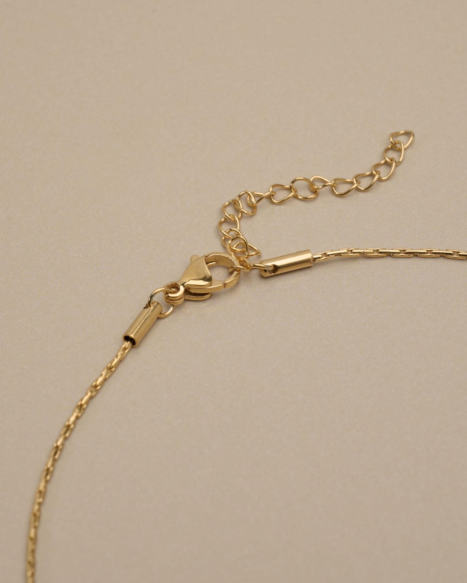 MATERIALS • Stainless steel chain (PVD gold plated) • Glass-look acrylic pendant • Closure: Stainless steel Lobster clasp + Interchangeable clasp