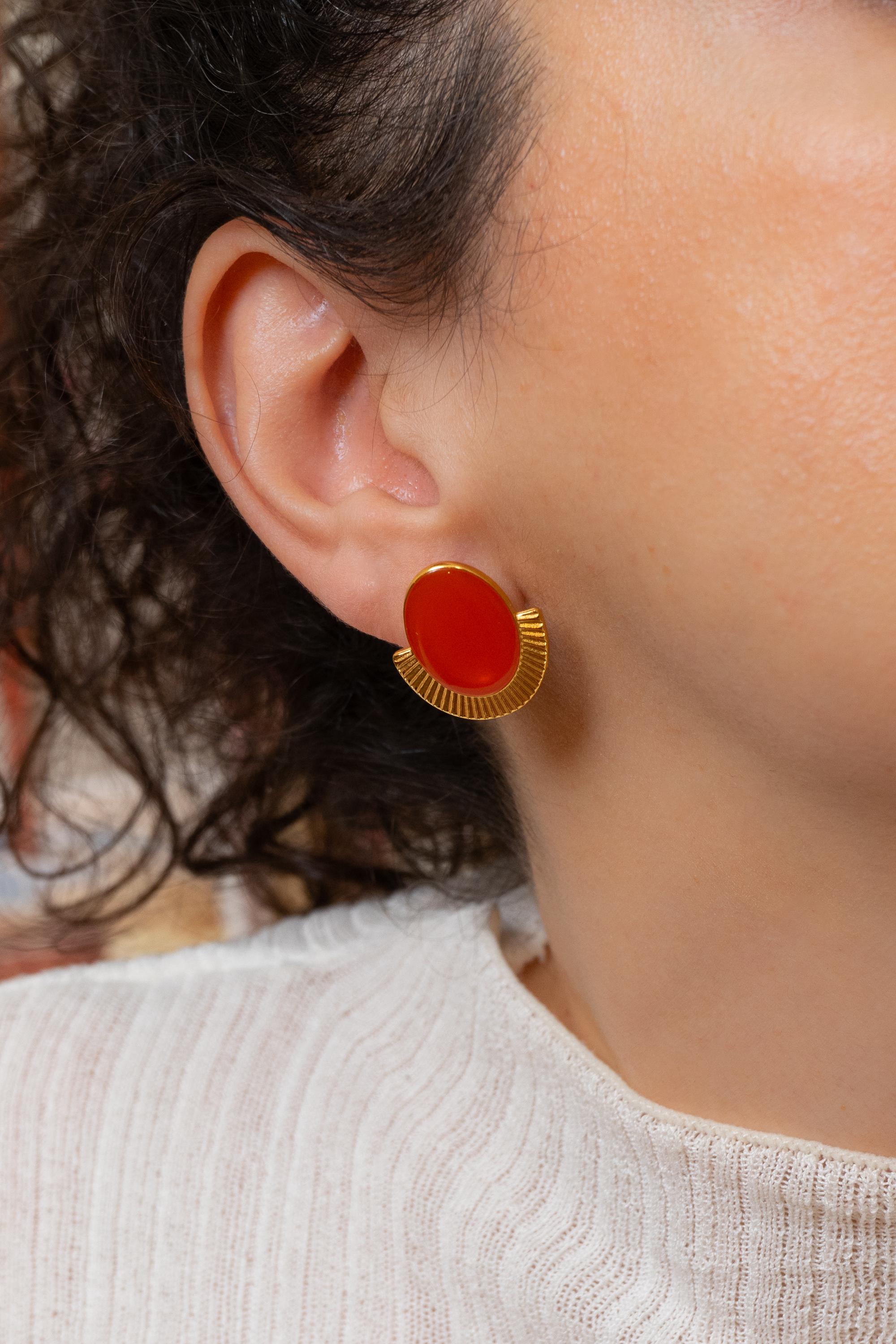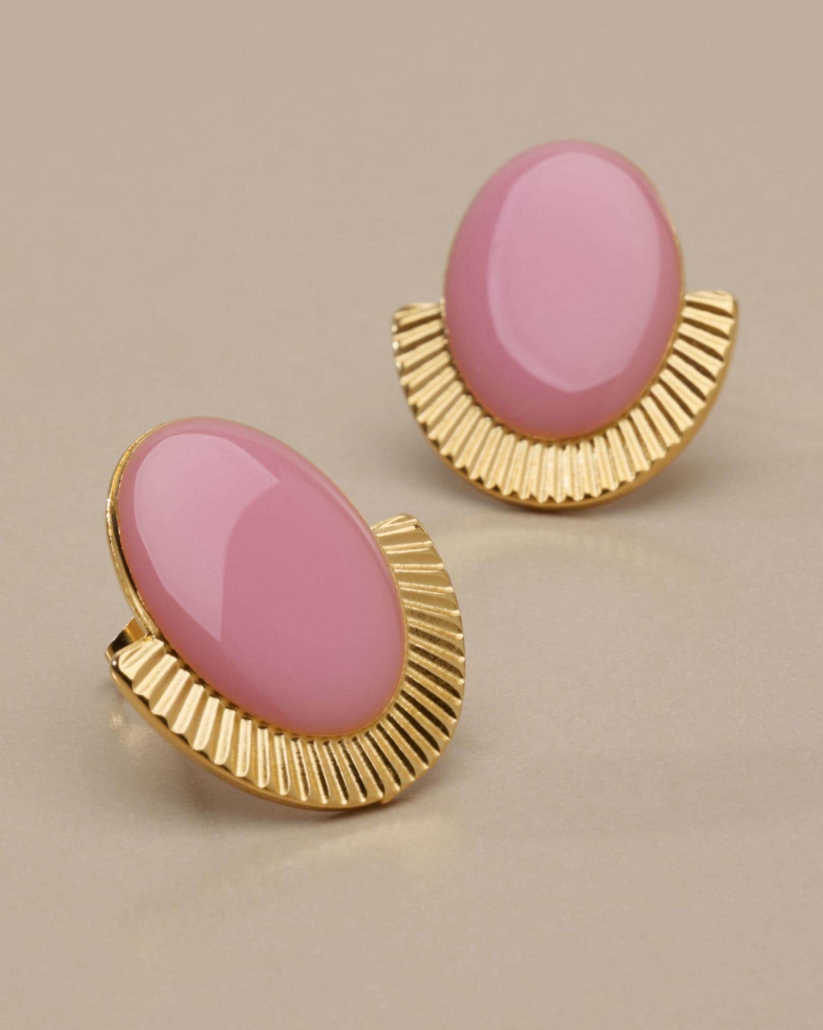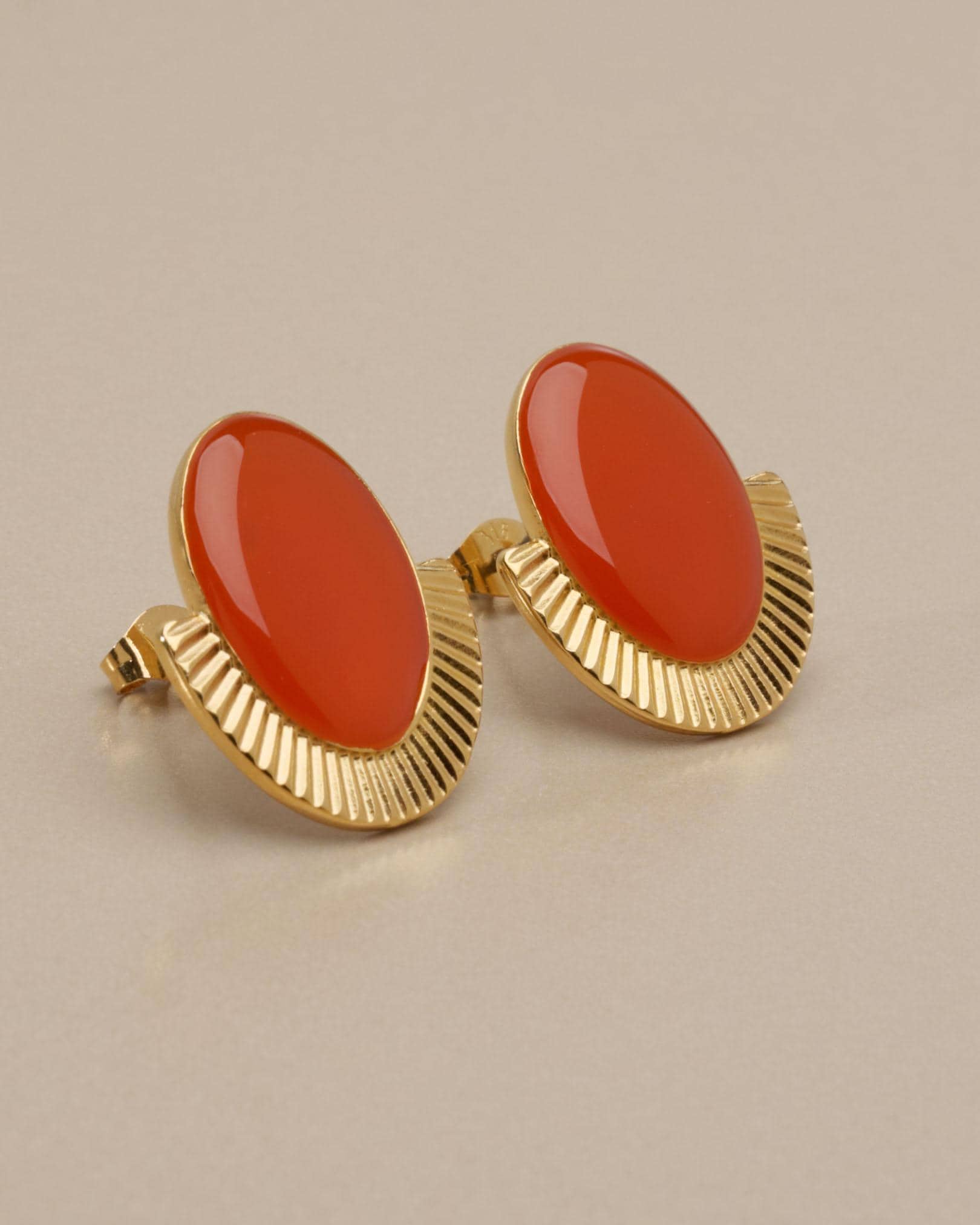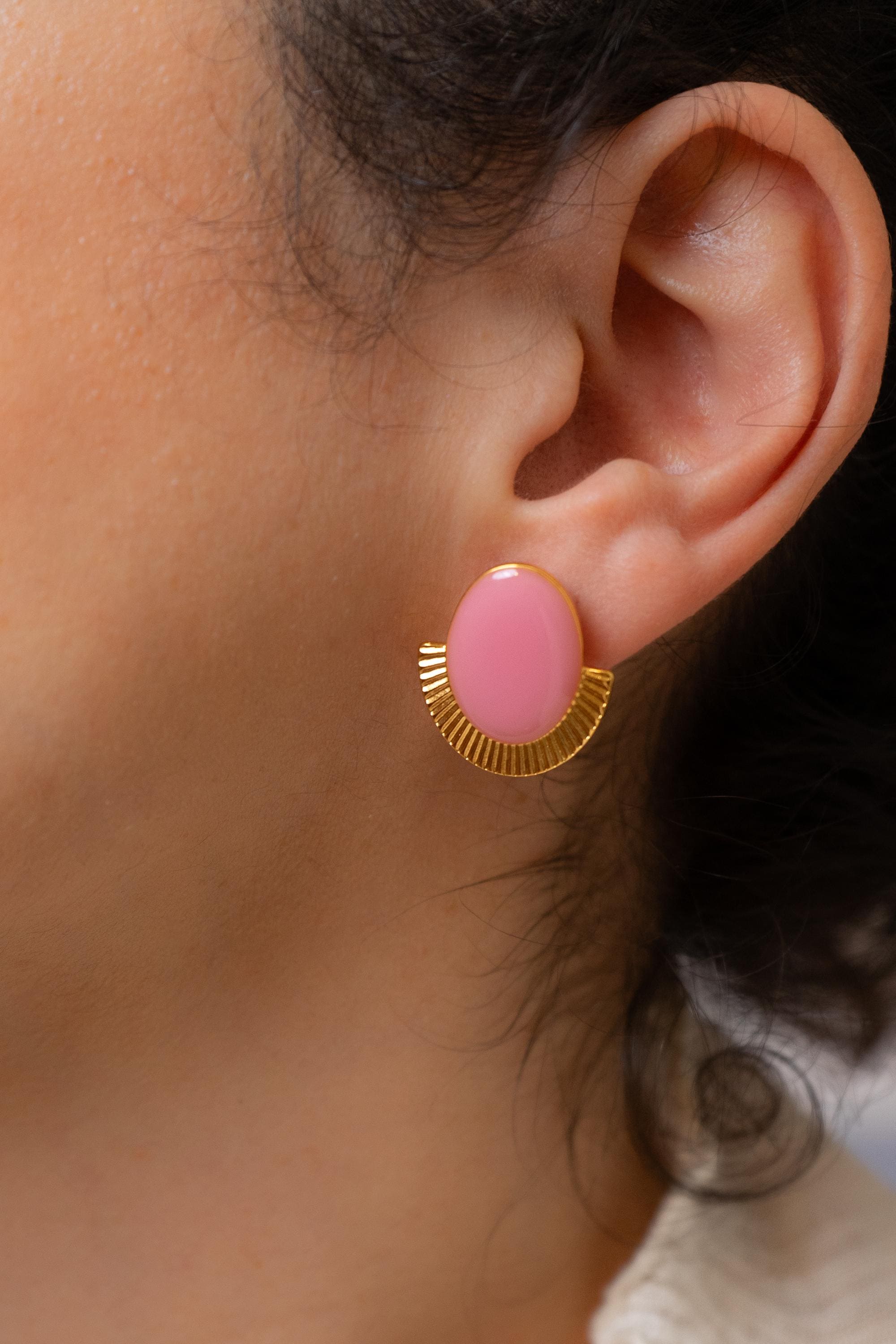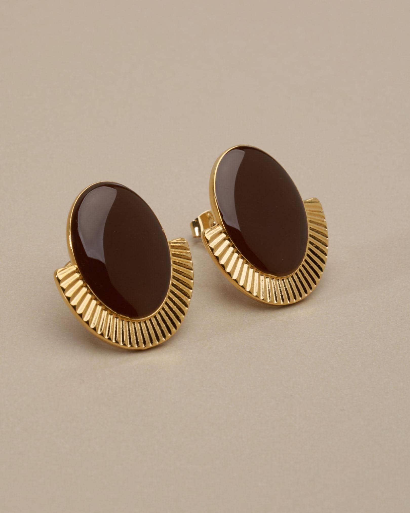 These oval stud earrings combine strong shape with a polished enamel finish.