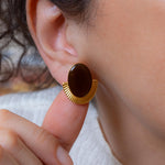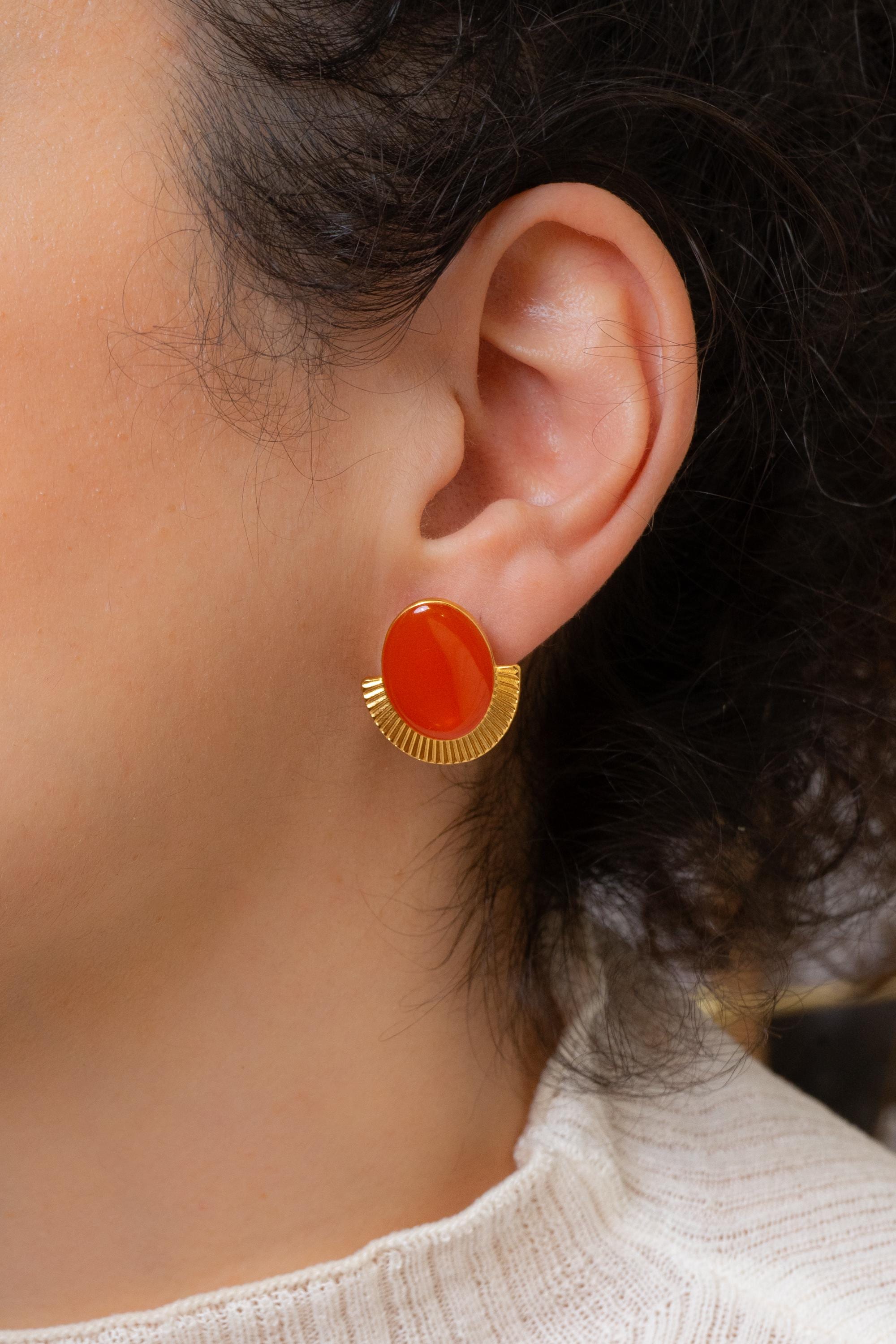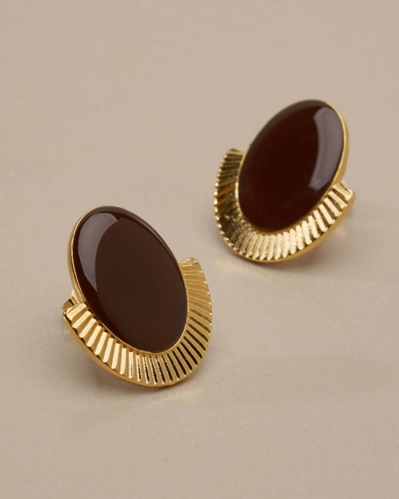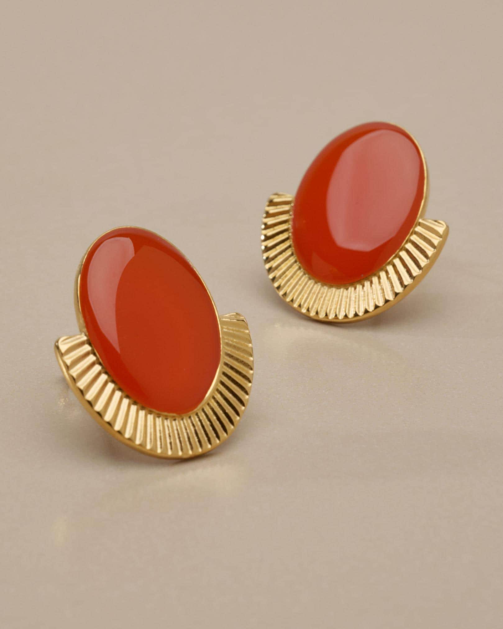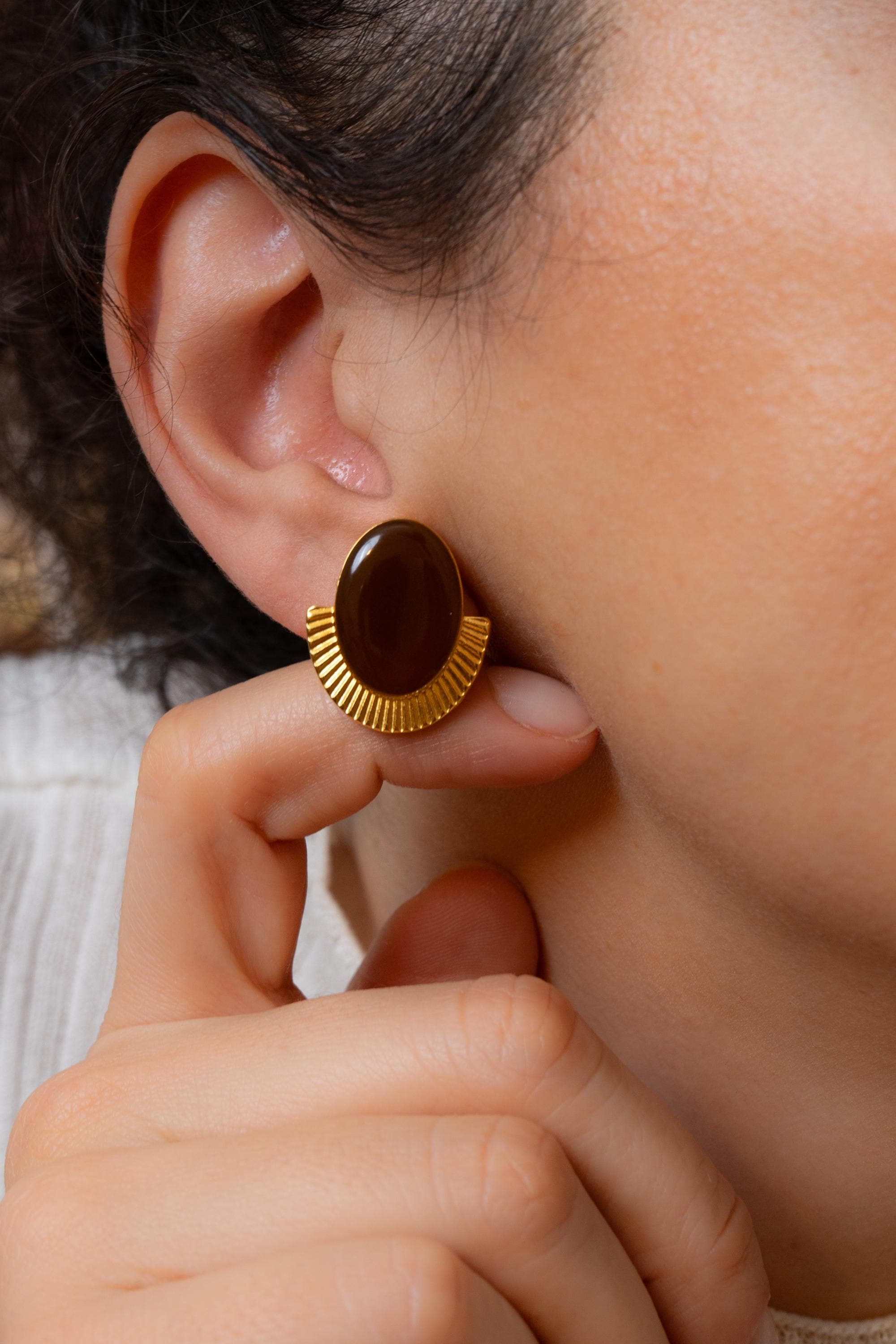 These oval stud earrings combine strong shape with a polished enamel finish.