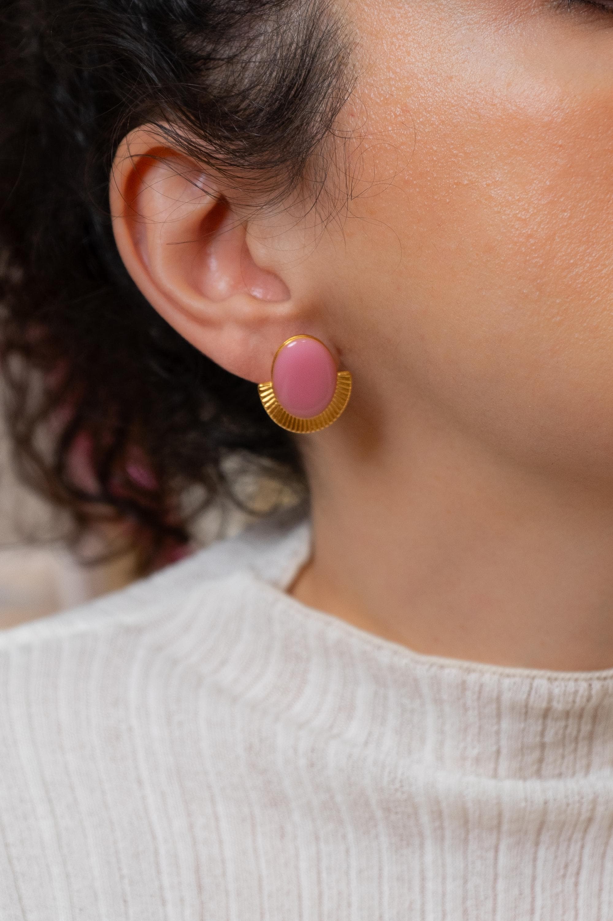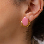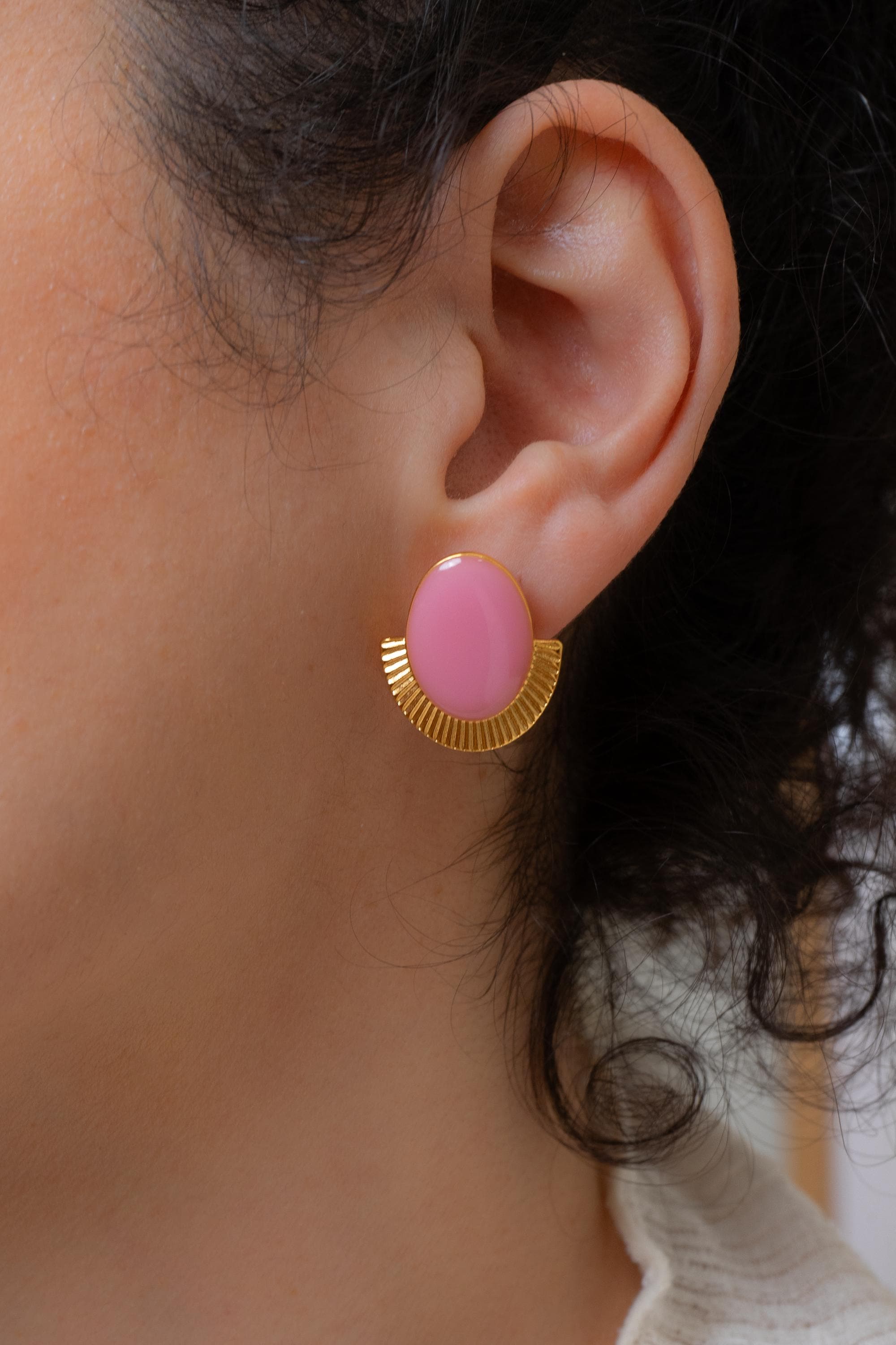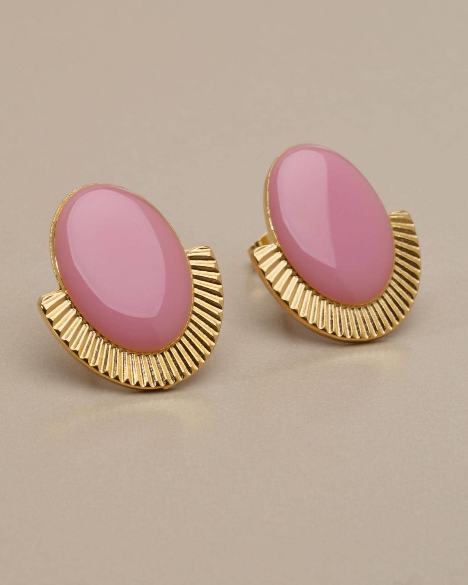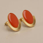 Gold Oval Enamel Stud Earrings