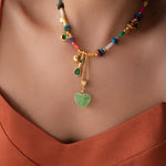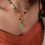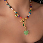• Bright, feel-good colour palette inspired by summer • Natural shell textures mixed with a bold heart pendant • Lightweight and comfortable for everyday wear • Perfect statement piece for warm-weather outfits • Ideal gift for lovers of colourful, boho jewellery