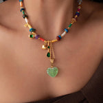 Shell Beaded Necklace with Green Heart Resin Pendant